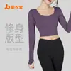 Juyitang Yoga Suit Mulheres de mangas compridas Quick-Dry Navel curto apertado esportes Top Fitness Suit com almofada peito