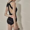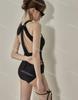 Traje de baño de una pieza conservador de aguas termales para mujer, estilo Ins, sexy, con escote pequeño, espalda descubierta, lazo que cubre el vientre, adelgazante, 2024