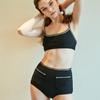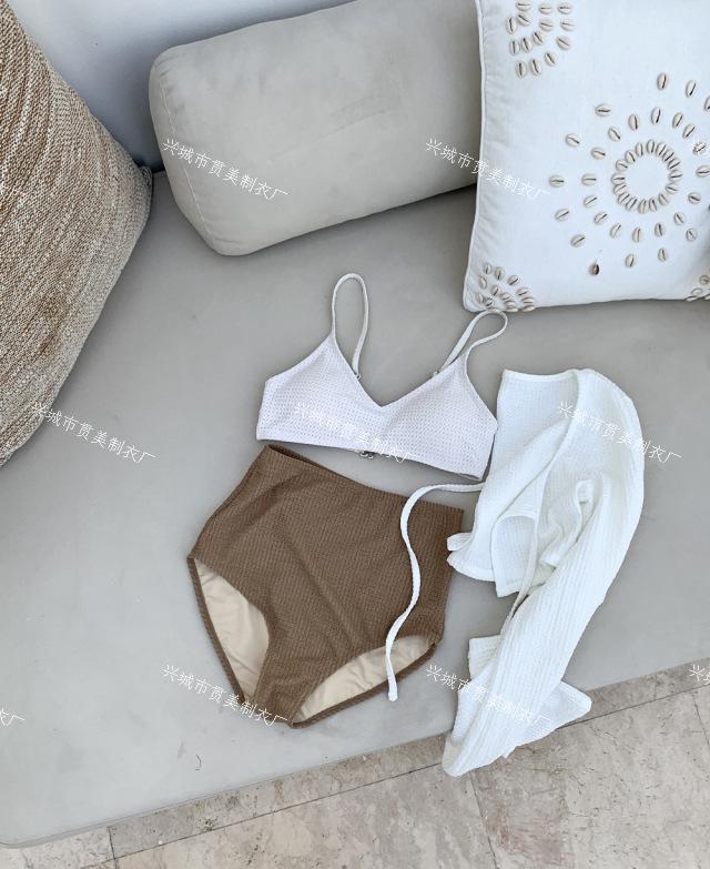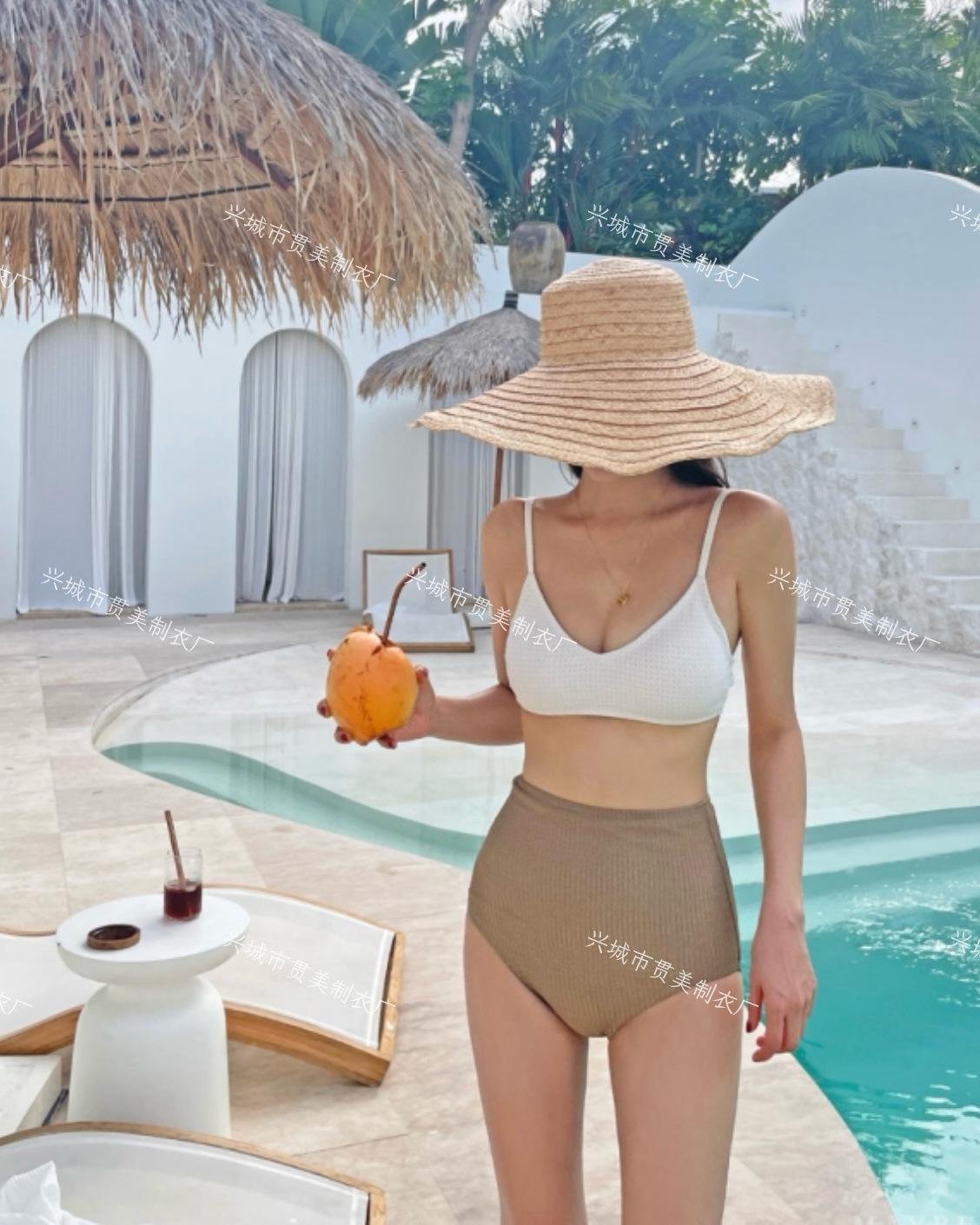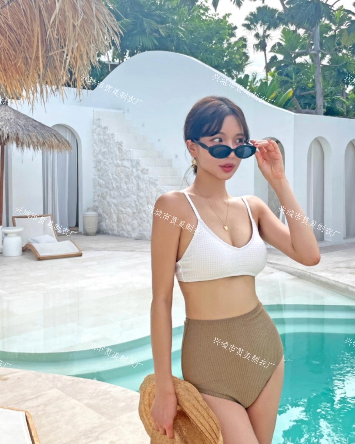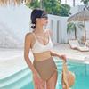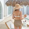 Traje de baño dividido de color sólido retro simple estilo coreano nuevo para mujer, bikini sexy para vacaciones en la playa, traje de baño de aguas termales