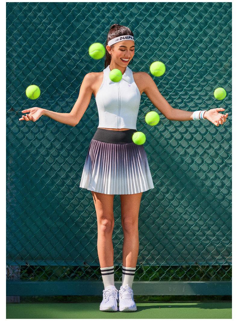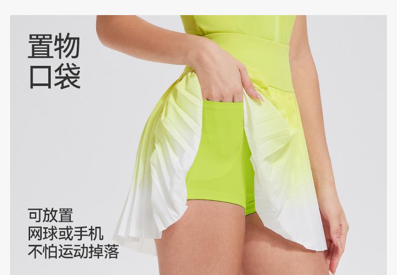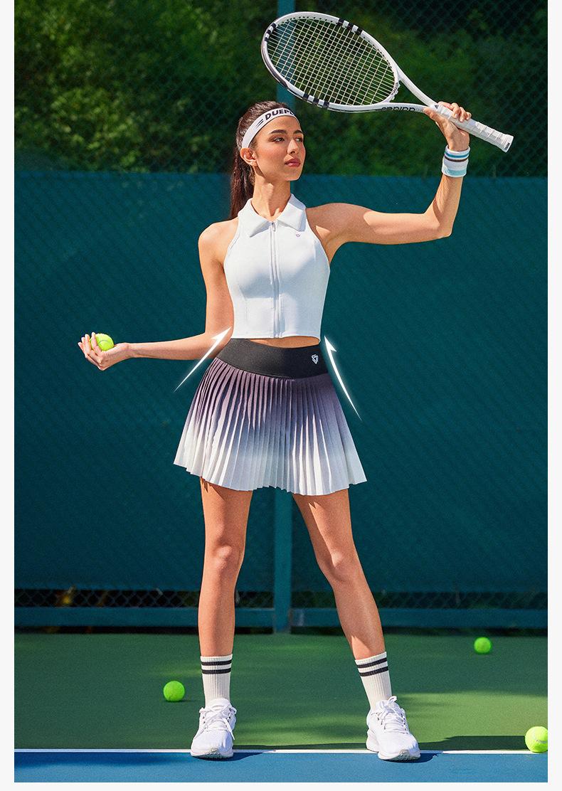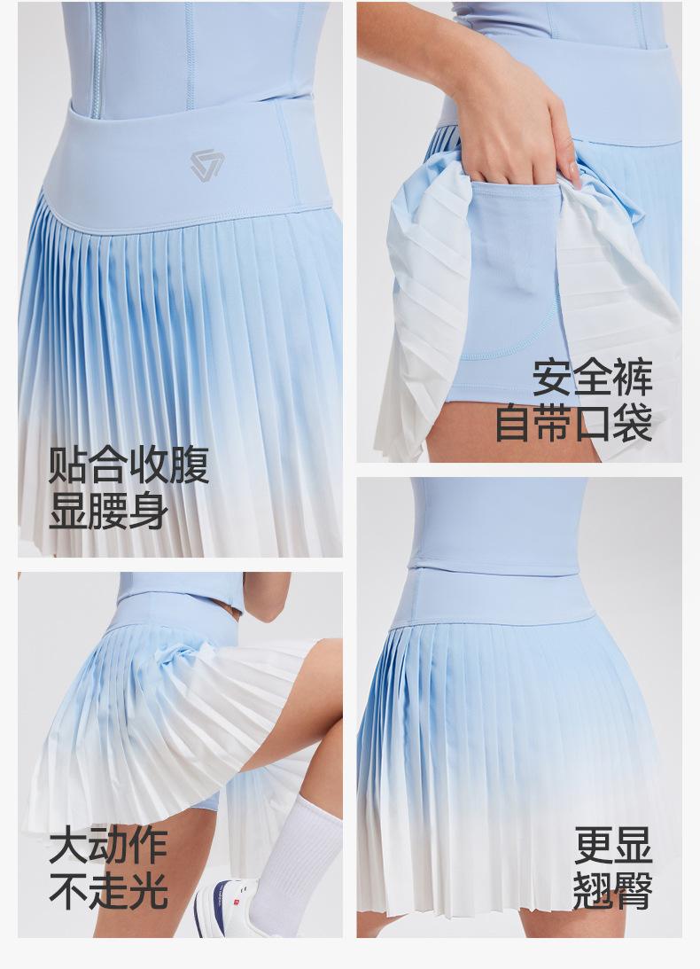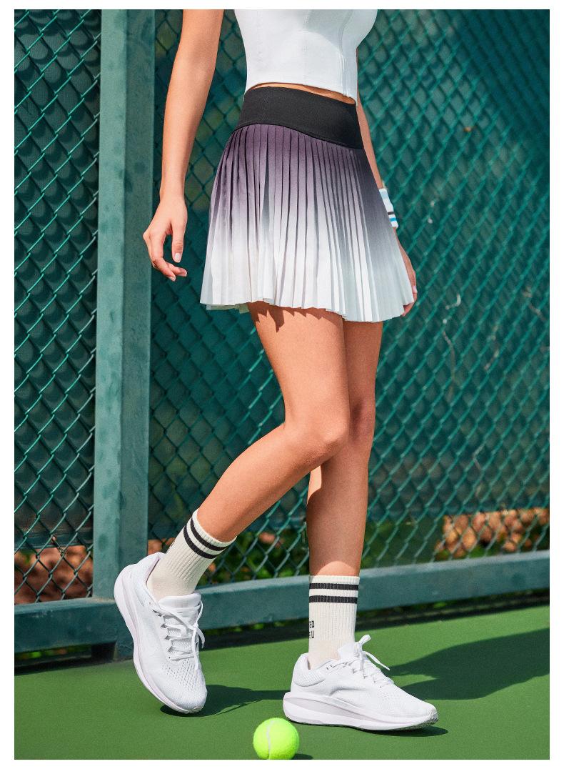 Falda plisada de verano delgada de dos piezas falsas anti-rozaduras degradada de cintura alta para deportes profesionales de secado rápido transpirable para fitness