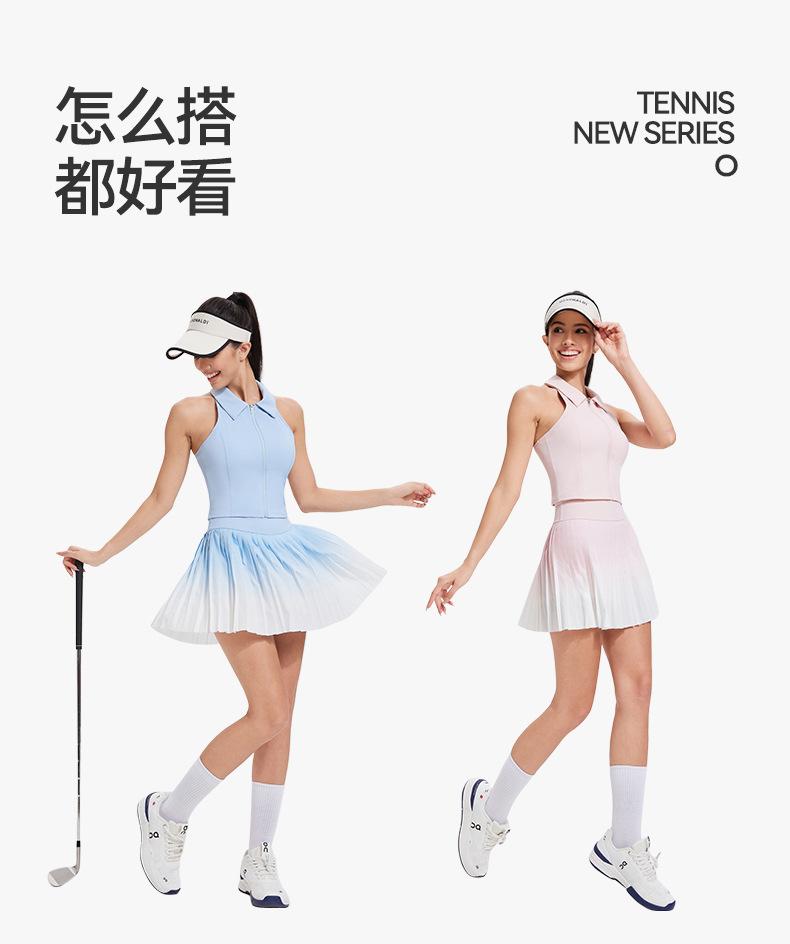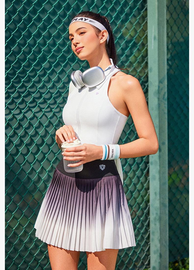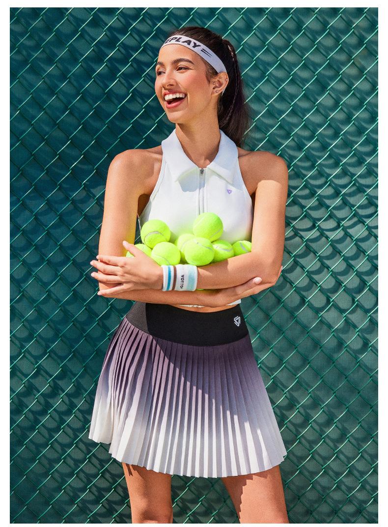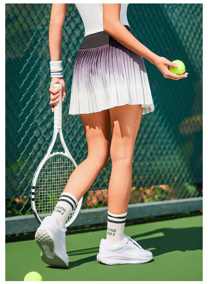 Falda plisada de verano delgada de dos piezas falsas anti-rozaduras degradada de cintura alta para deportes profesionales de secado rápido transpirable para fitness