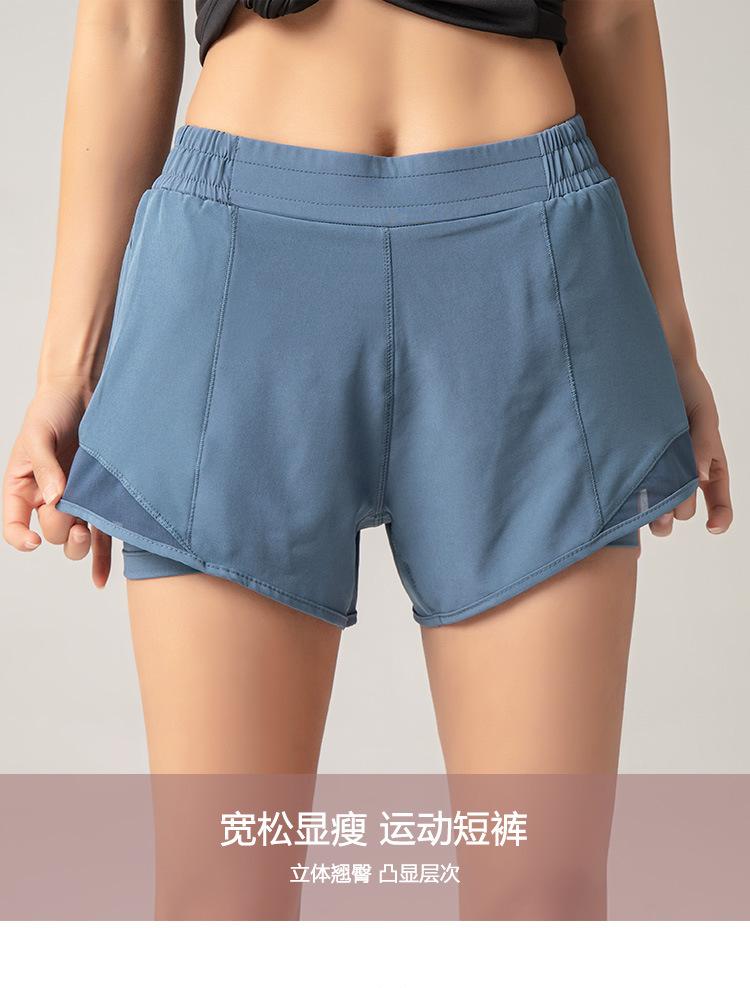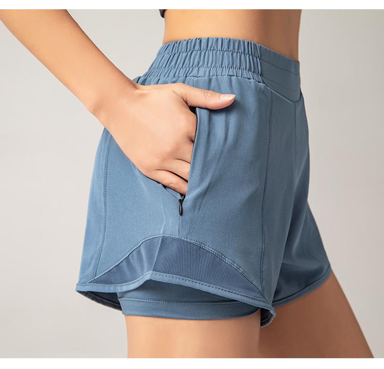 Pantalones cortos deportivos europeos y americanos para mujer, de dos piezas, transpirables, de secado rápido, para yoga y fitness, para verano.
