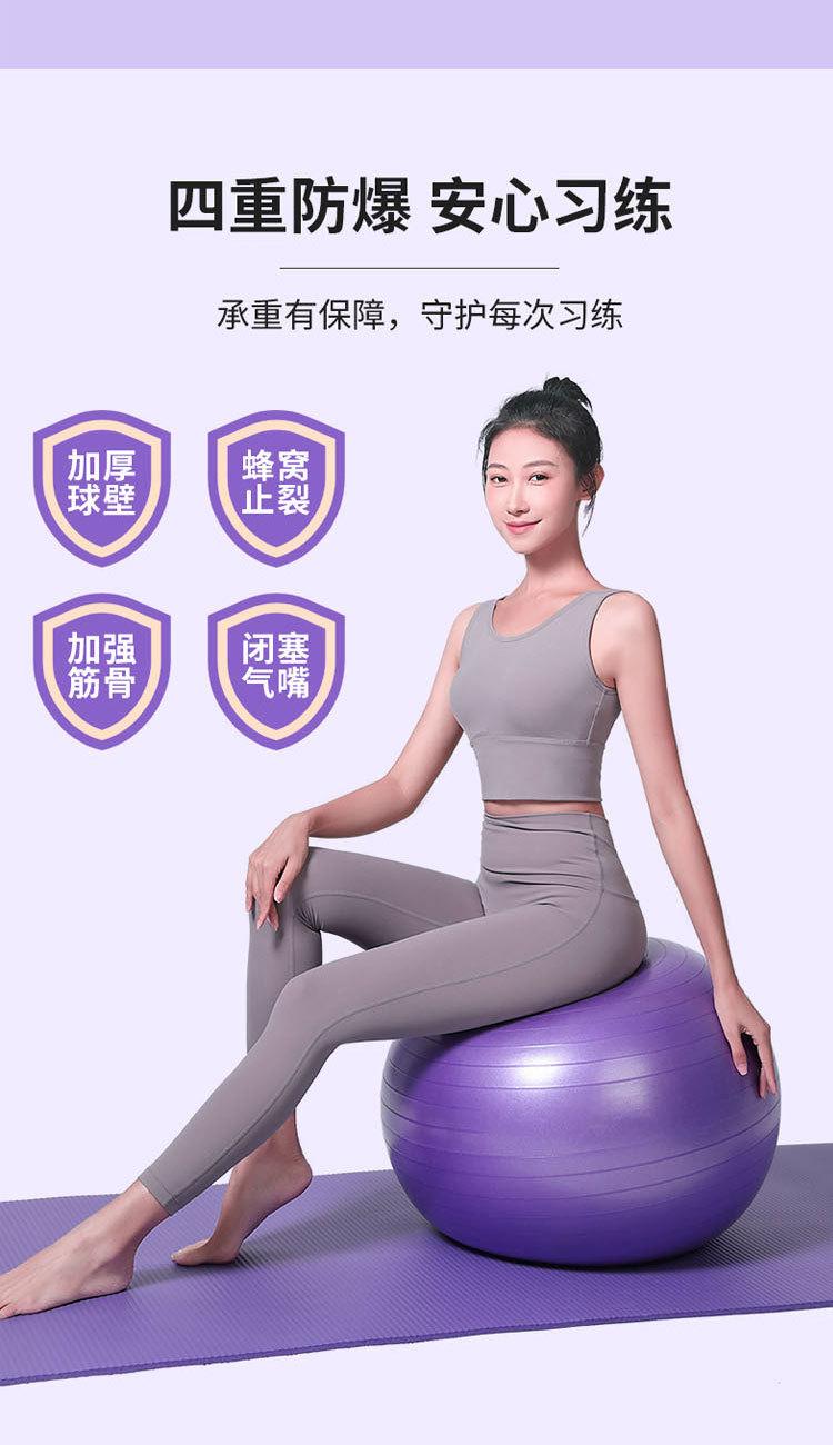Las pelotas de yoga también se llaman pelotas de fitness o pelotas de yoga para fitness. Son un tipo de herramienta deportiva de pelota que se utiliza en combinación con el ejercicio y el fitness. La mayoría de ellas están hechas de material de PVC blando. Cuando el cuerpo humano entra en contacto con ella, la pelota de fitness inflada tocará uniformemente las partes de contacto del cuerpo humano para producir un efecto de masaje, lo cual es beneficioso para promover la circulación sanguínea. Los movimientos de la pelota de yoga están dispuestos para dirigirse a las partes principales como el abdomen, la espalda y la cintura. Al practicar, debes estirar, apretar y otros movimientos con respiración lenta y rítmica para masajear eficazmente los músculos, relajarlos y consumir grasa. También es una forma de mejorar la concentración, reducir el estrés mental y aumentar la resistencia de las extremidades y la columna vertebral.。