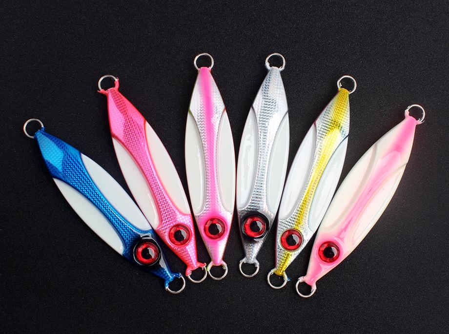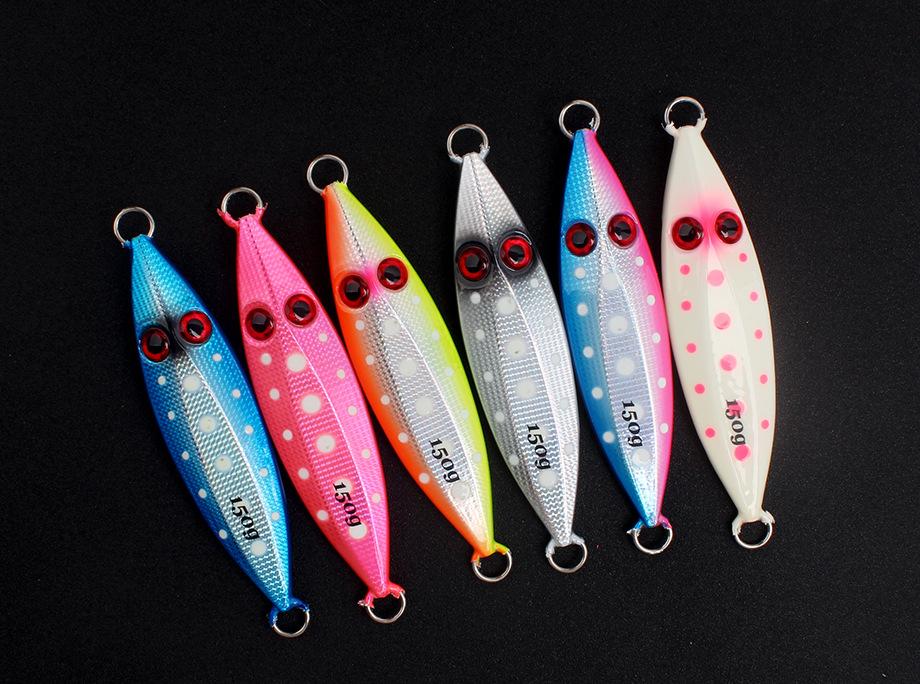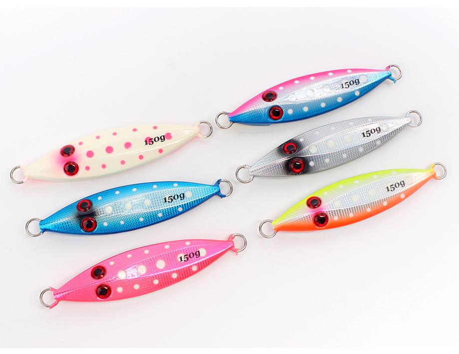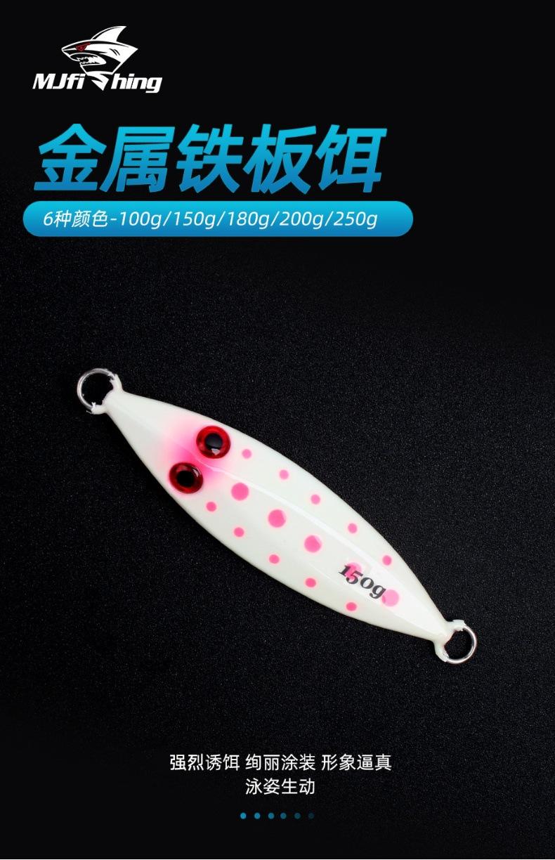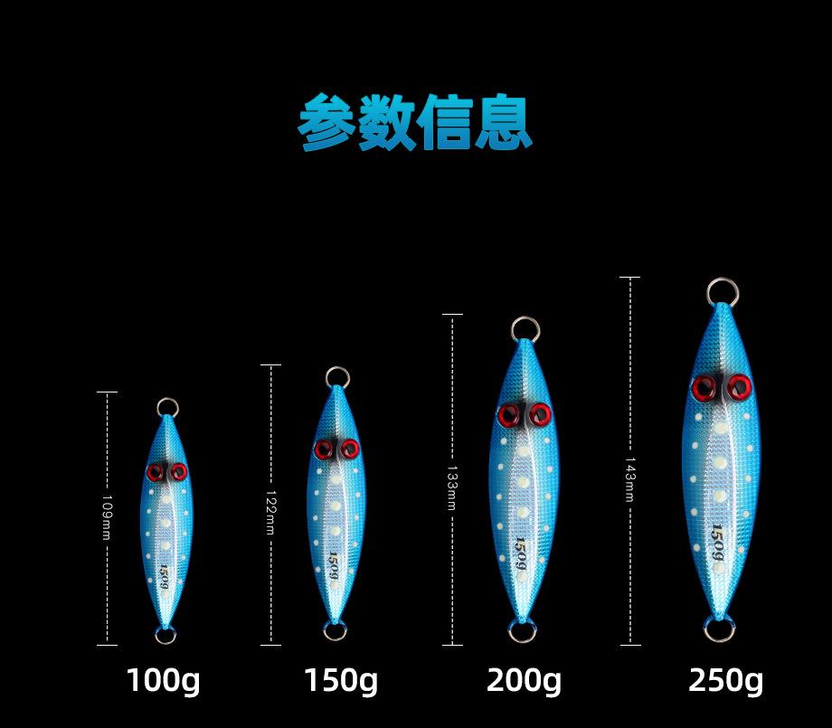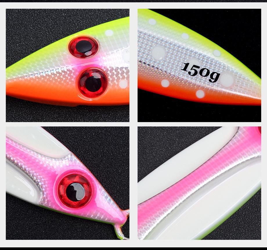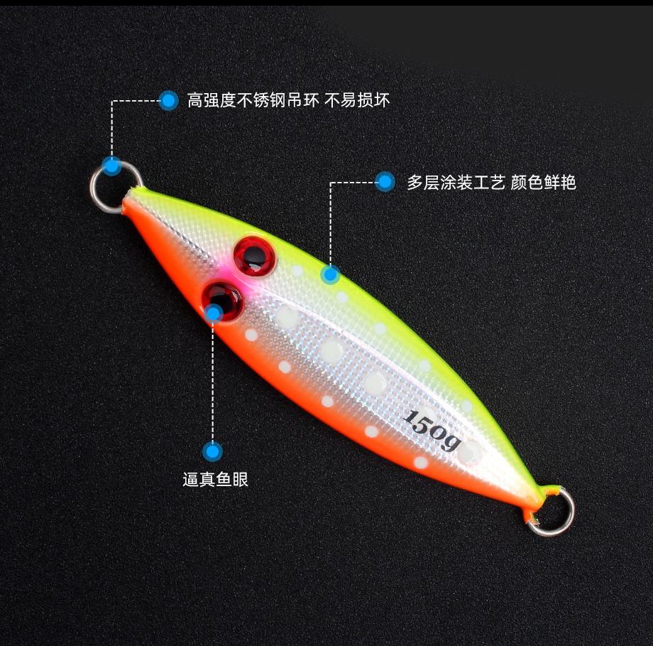 Cebo de plomo de placa desnuda de hierro Luya pesado de gran tamaño, cebo de pesca en el mar, cebo de pesca de arrastre, cebo falso biónico de cola de pelo de caballa luminoso.