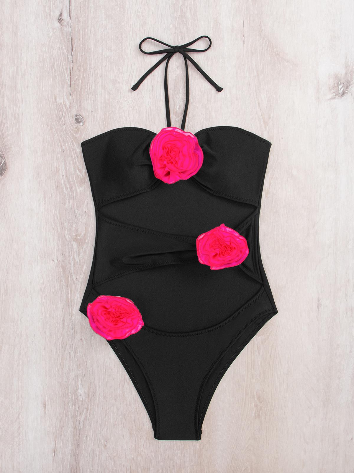 2024 nuevo traje de baño de una pieza para mujer, bikini transfronterizo europeo y americano, bikini tridimensional con flores 3D, trajes de baño para mujer, bikini al por mayor