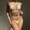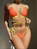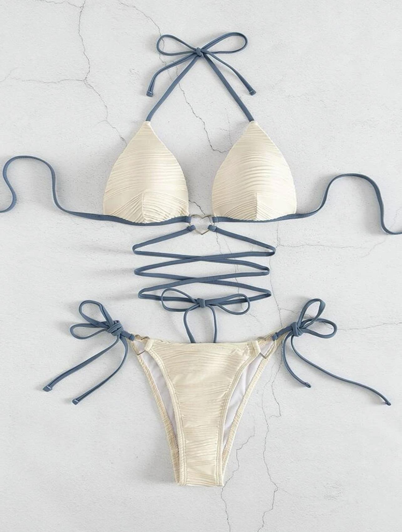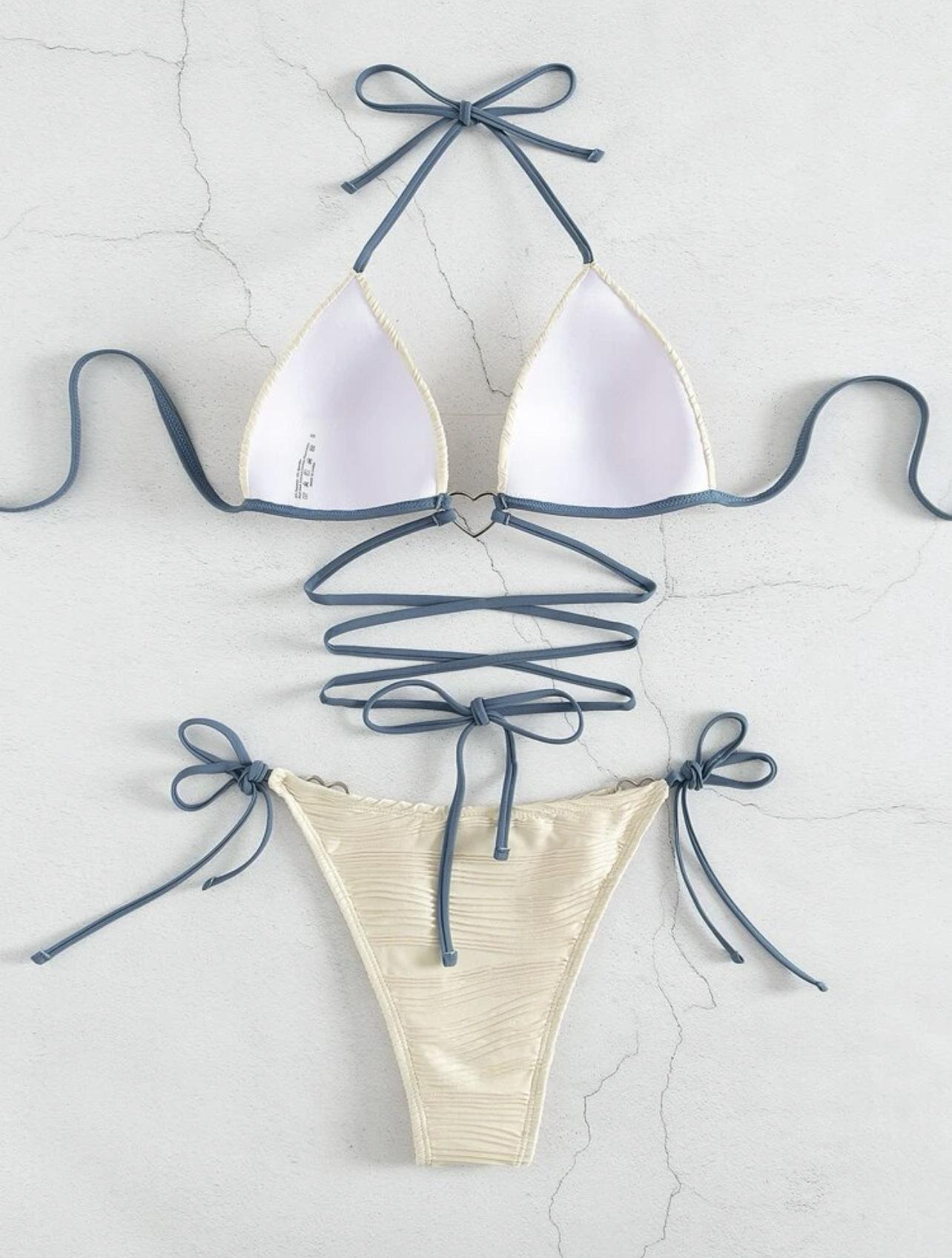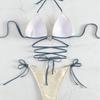 Bikini Europeo y Americano Dividido de Copa Dura 2025 Bikini con Traje de Baño de Tirantes con Cordón de Corazón para Mujer Ropa de Baño Sexy Transfronterizo