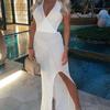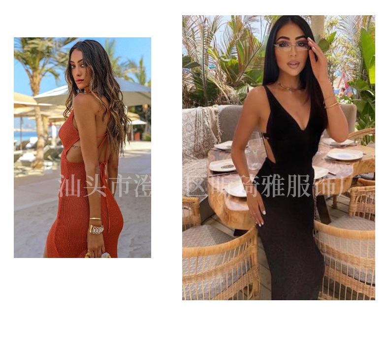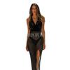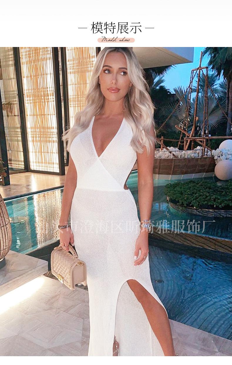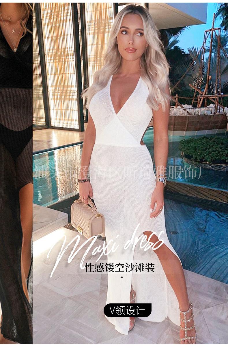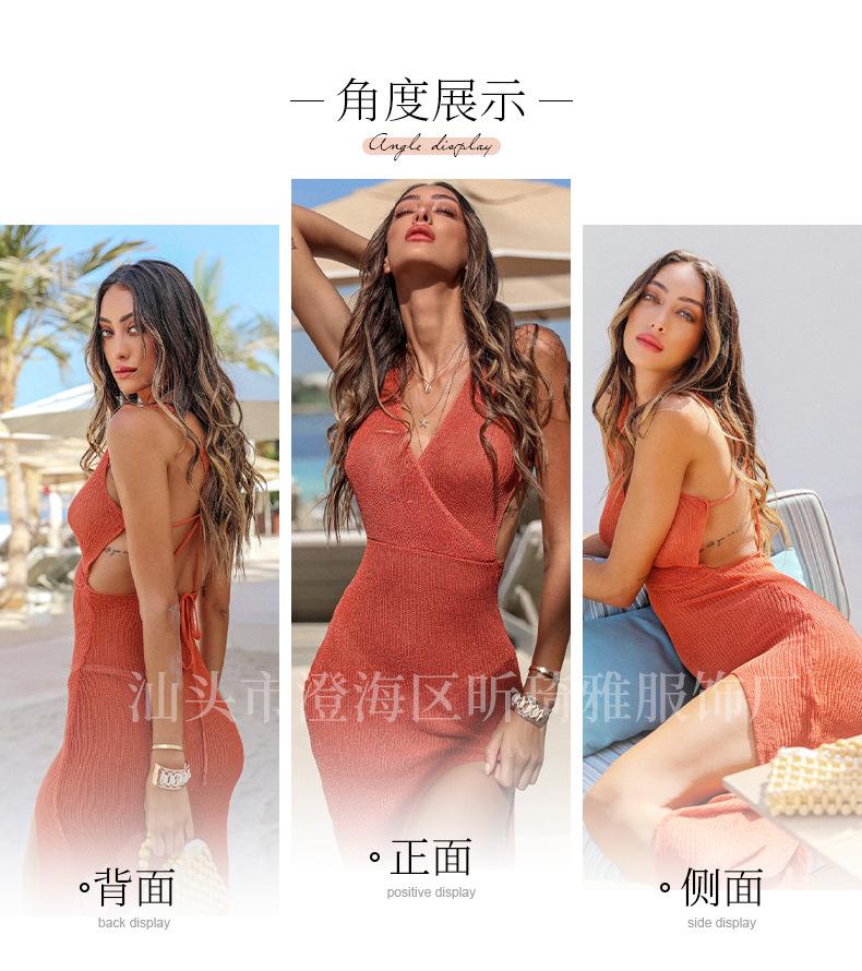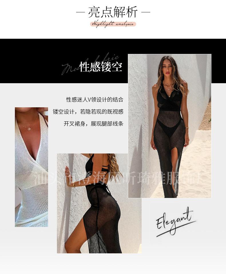 Falda de playa con escote en V y abertura en la espalda, estilo europeo y americano, con protección solar, larga, informal, para vacaciones en la playa