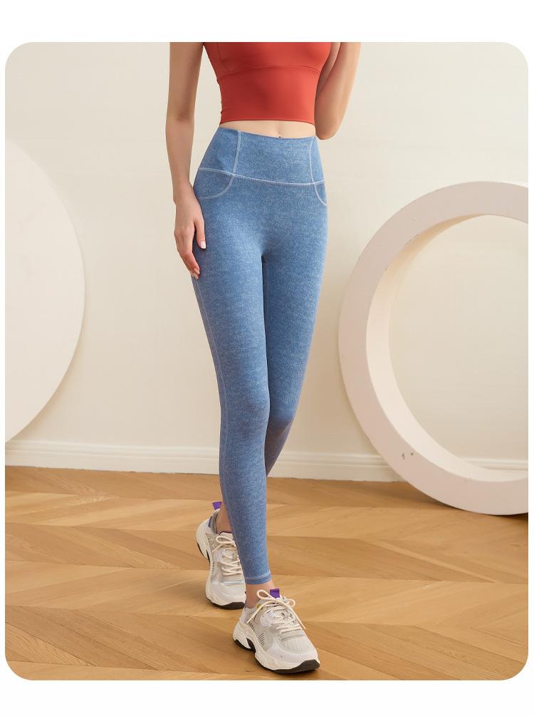 Pantalones deportivos ajustados de cintura alta para mujer, de secado rápido, con realce de cadera y color melocotón, para yoga.