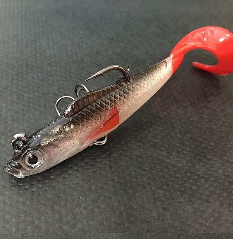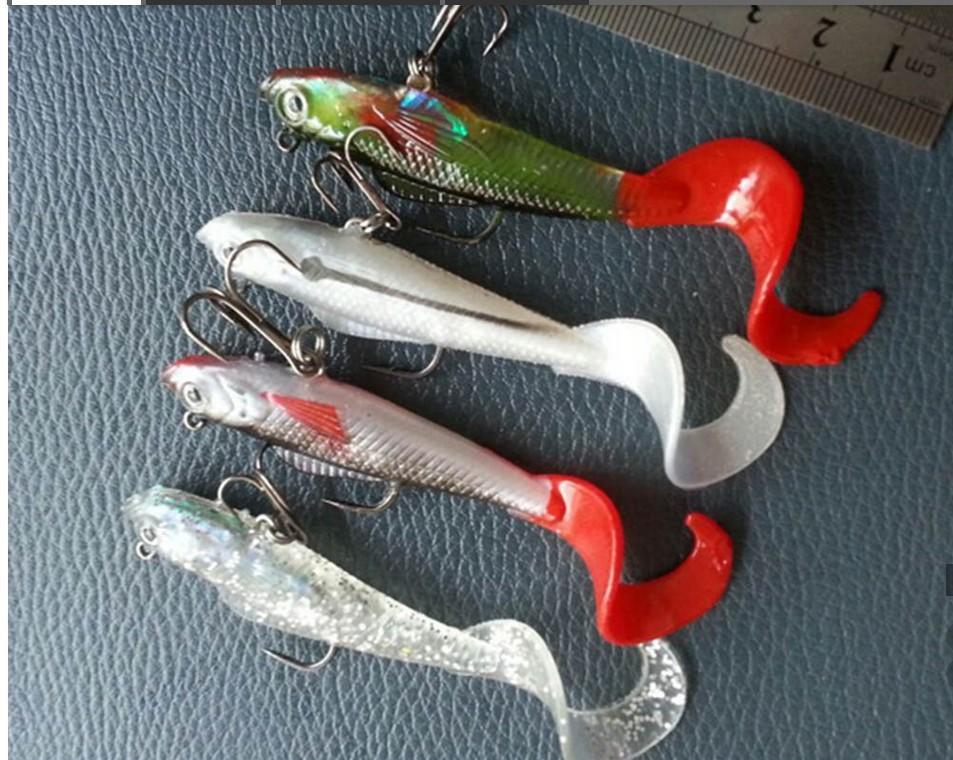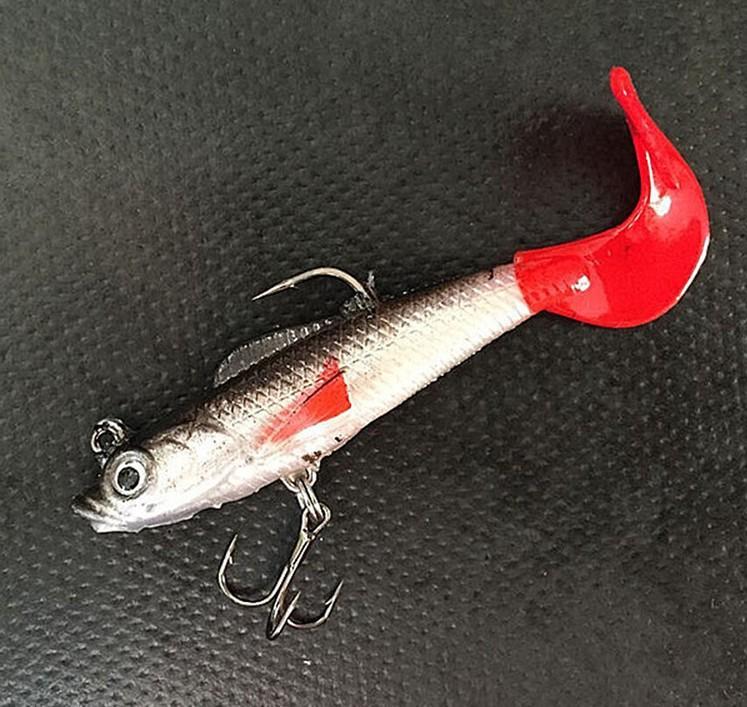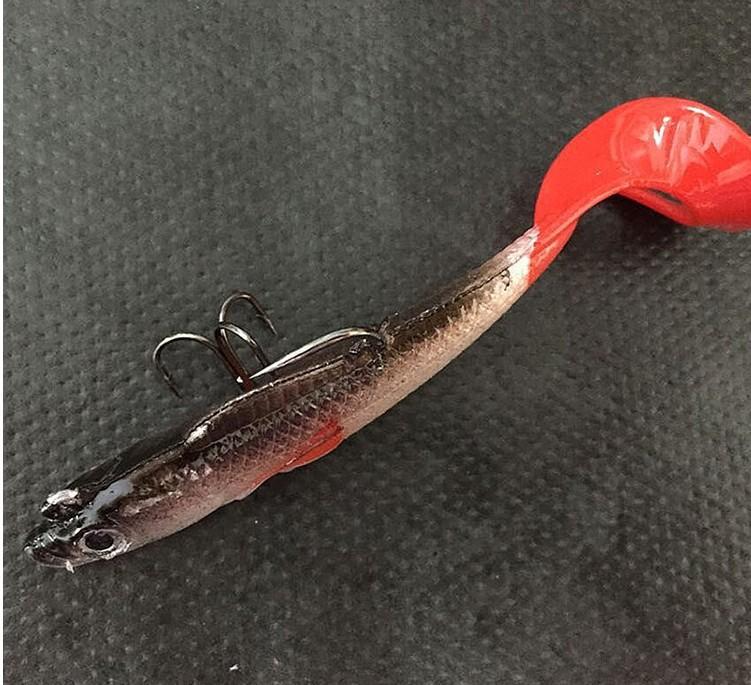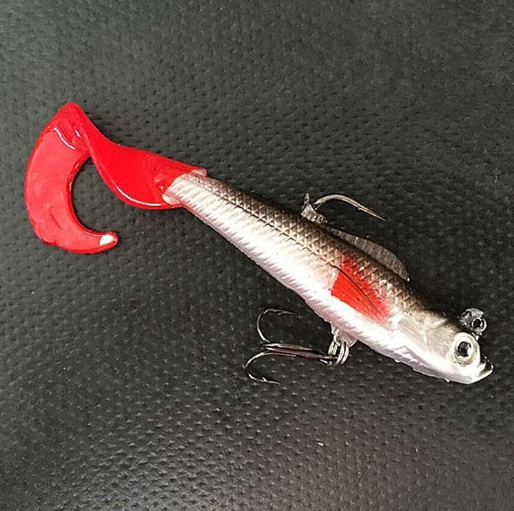 Señuelo blando de cola roja rizada, pez plomo, venta al por mayor, suministros de pesca de Aliexpress, 10 cm, 9,5 g.