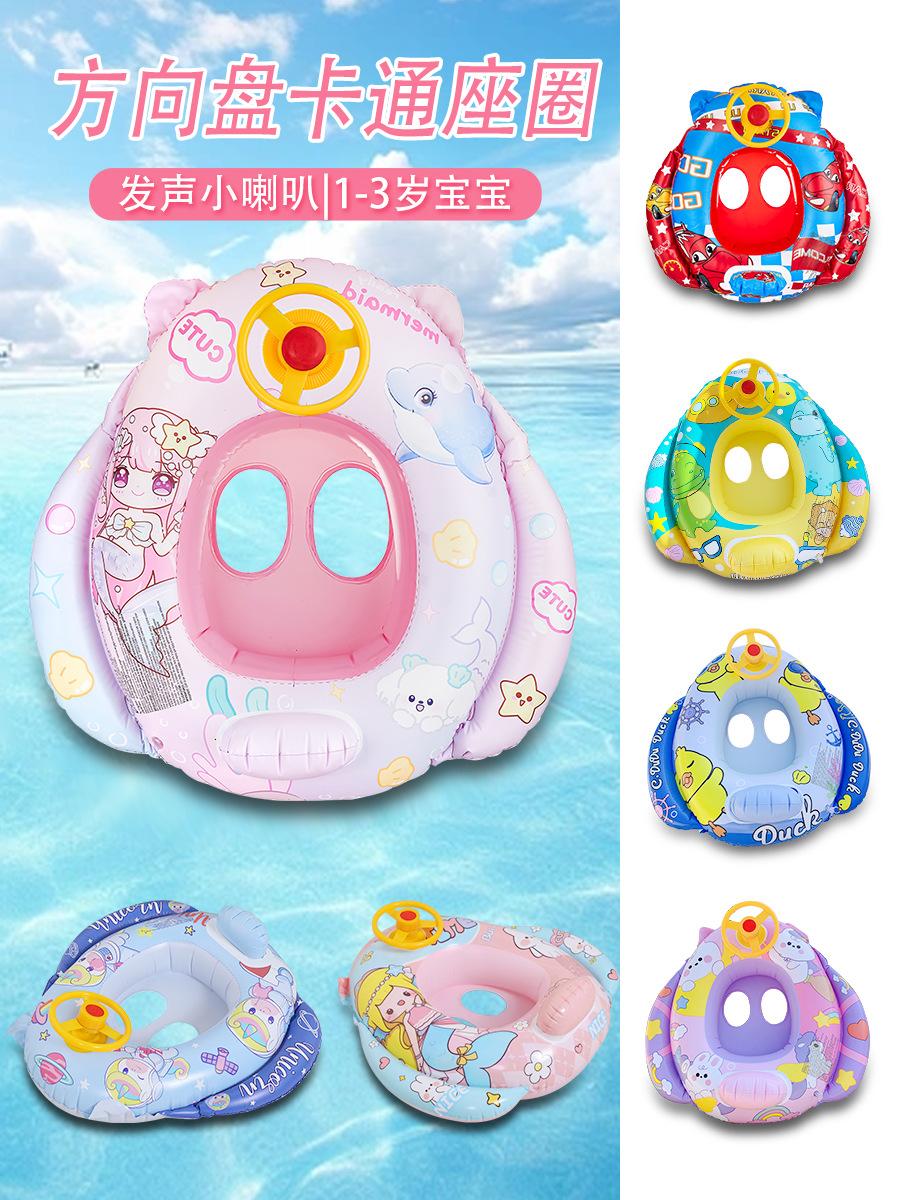 Suministro transfronterizo de volante para niños, asiento de dibujos animados, sirena, dinosaurio, flotador, juguetes inflables para niños al por mayor