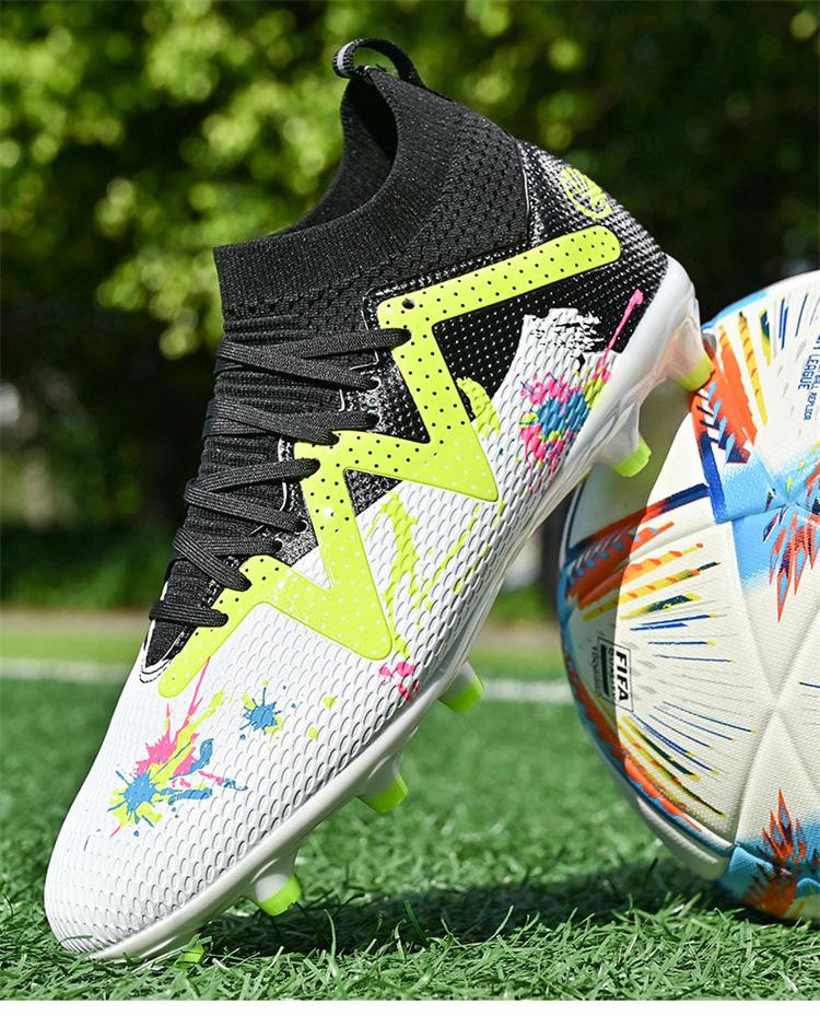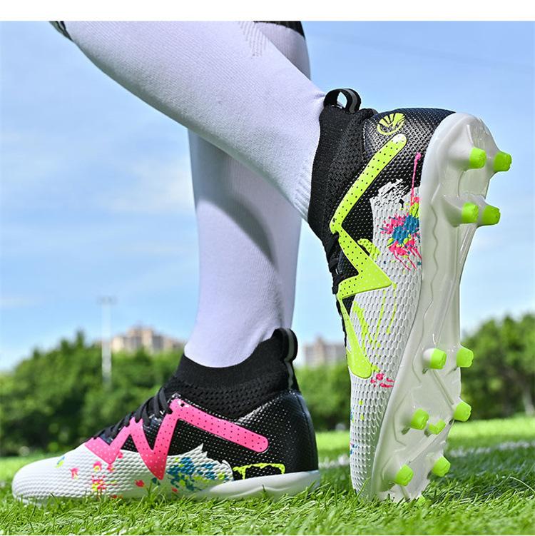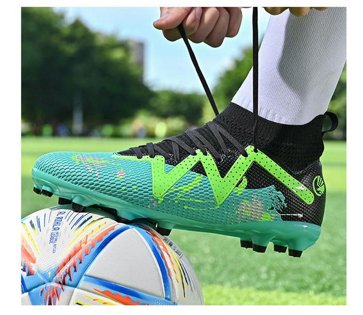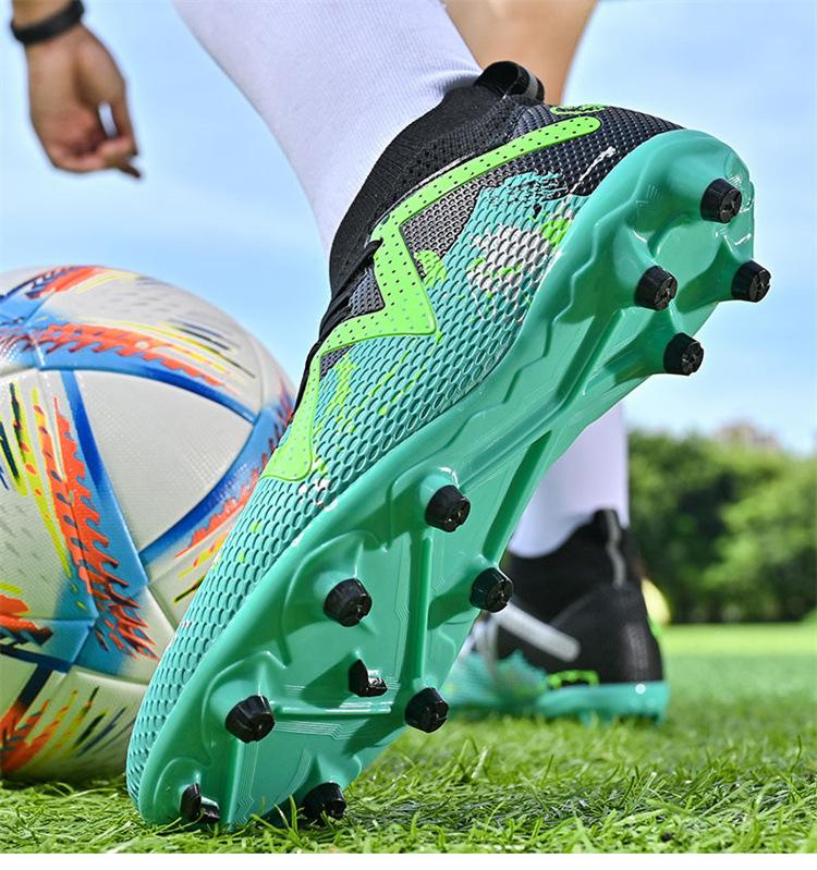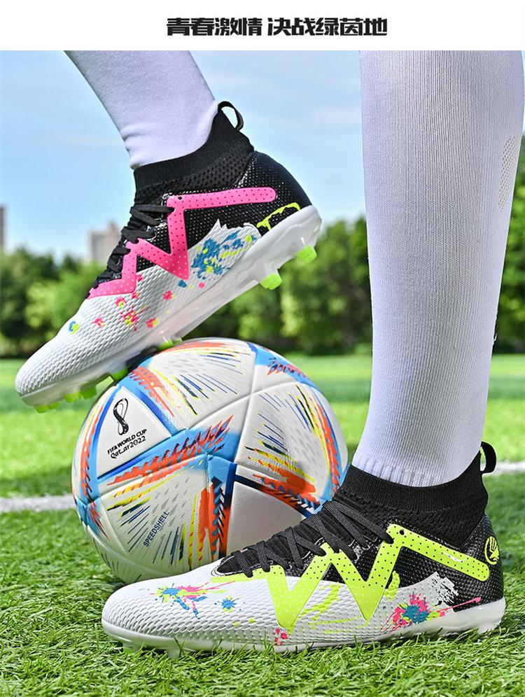 Calzado de fútbol de caña alta para comercio exterior transfronterizo, para hombre, con clavos rotos, TF, para jóvenes estudiantes, césped humano AG, zapatillas de entrenamiento de competición con clavos.
