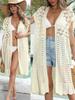 Blusa de Playa Vacaciones Marinas Transfronteriza Europea y Americana para Mujer Camisa con Borlas Sexy Perspectiva Manga Corta Cárdigan Exterior Z781