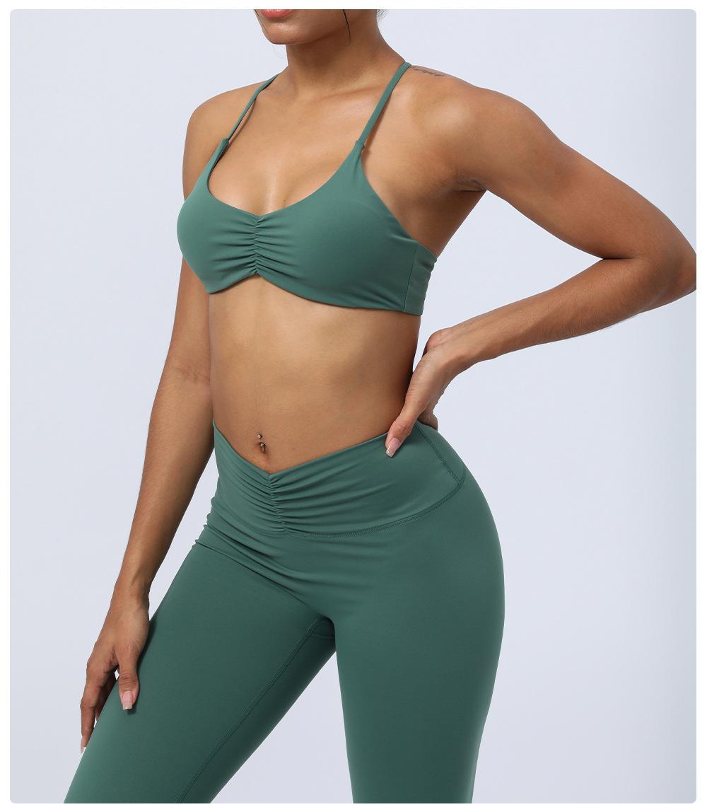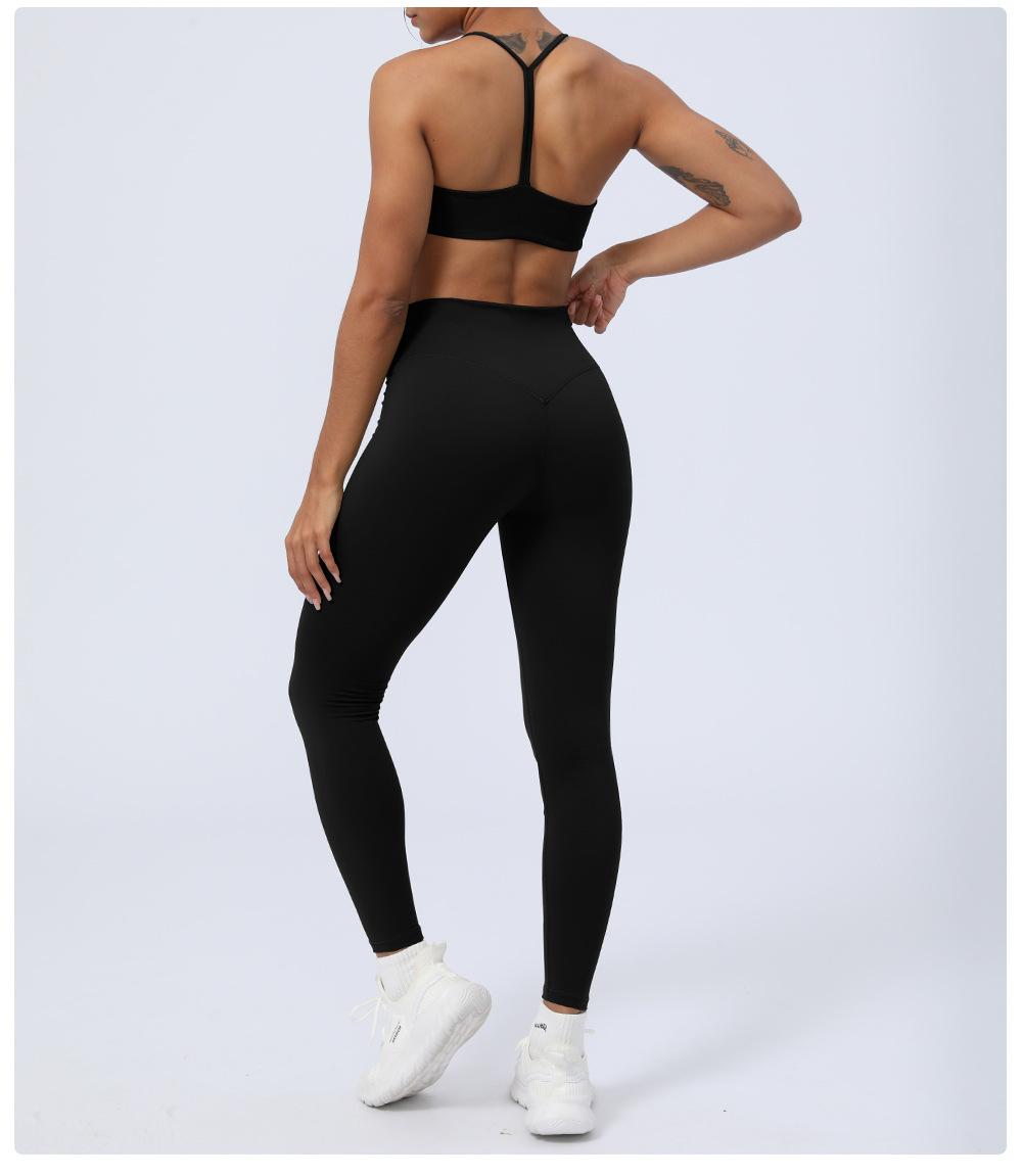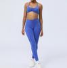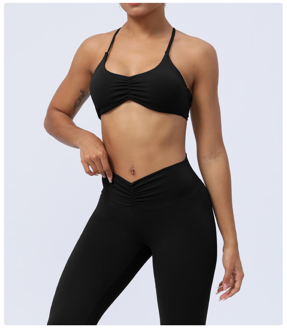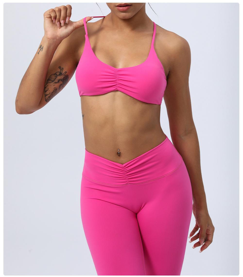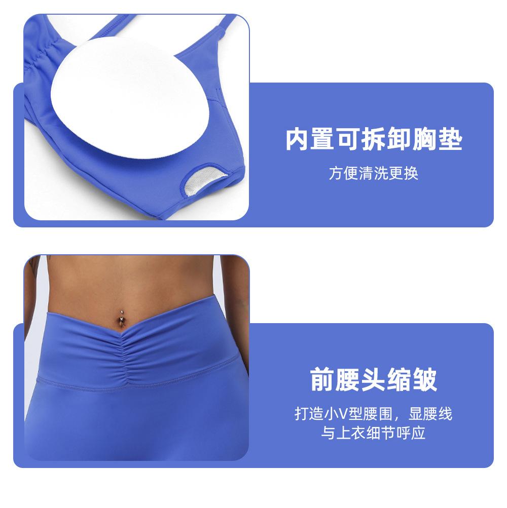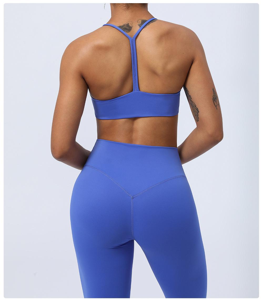 Traje deportivo de dos piezas para mujer, con espalda en Y y almohadilla para el pecho, pantalones cortos para levantar la cadera.