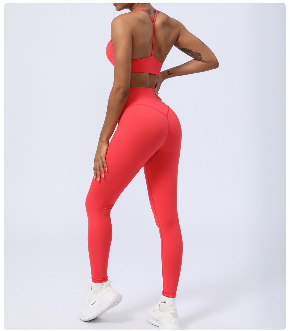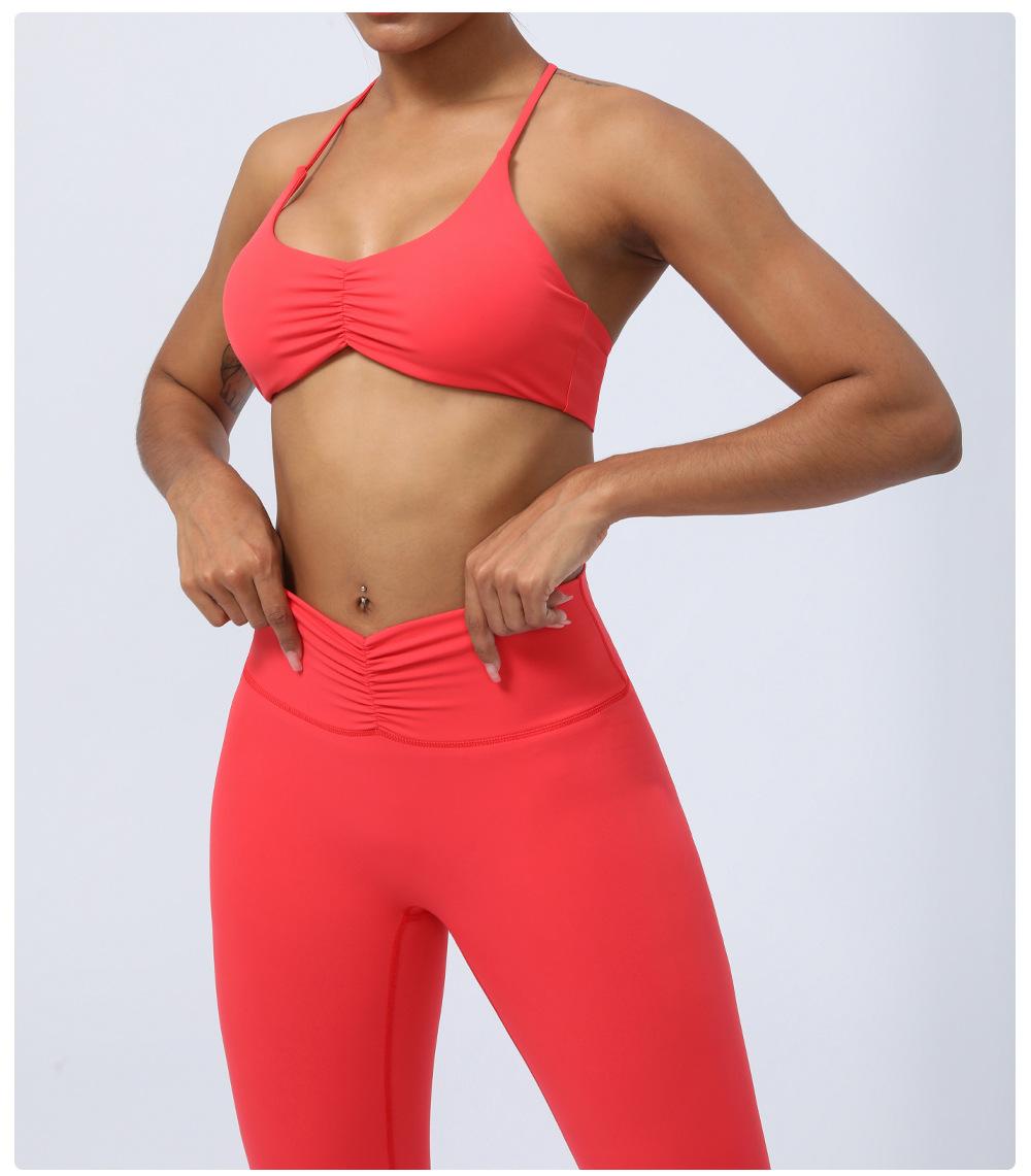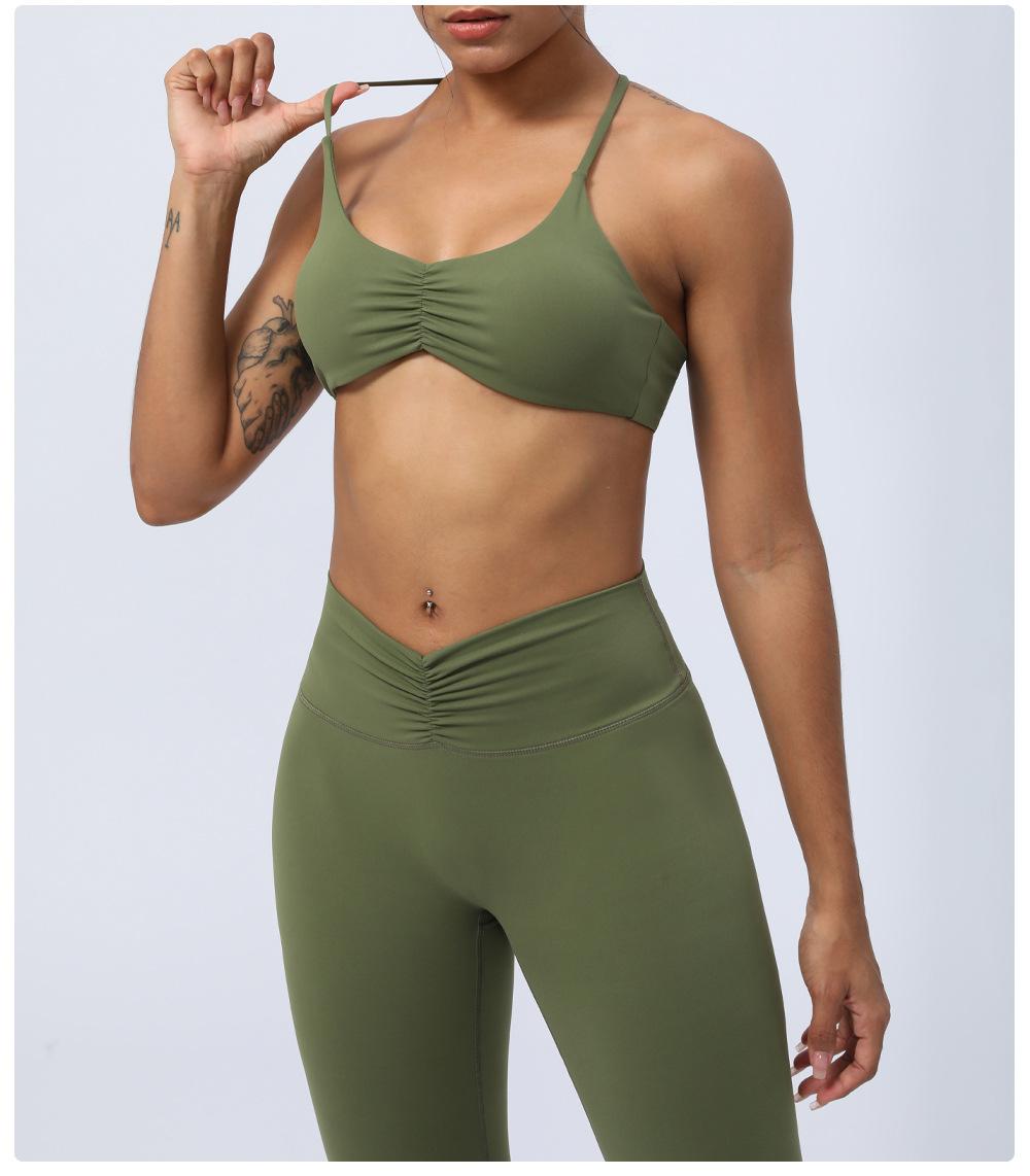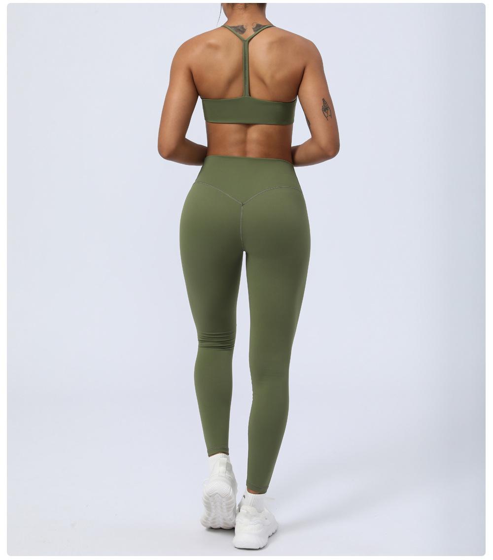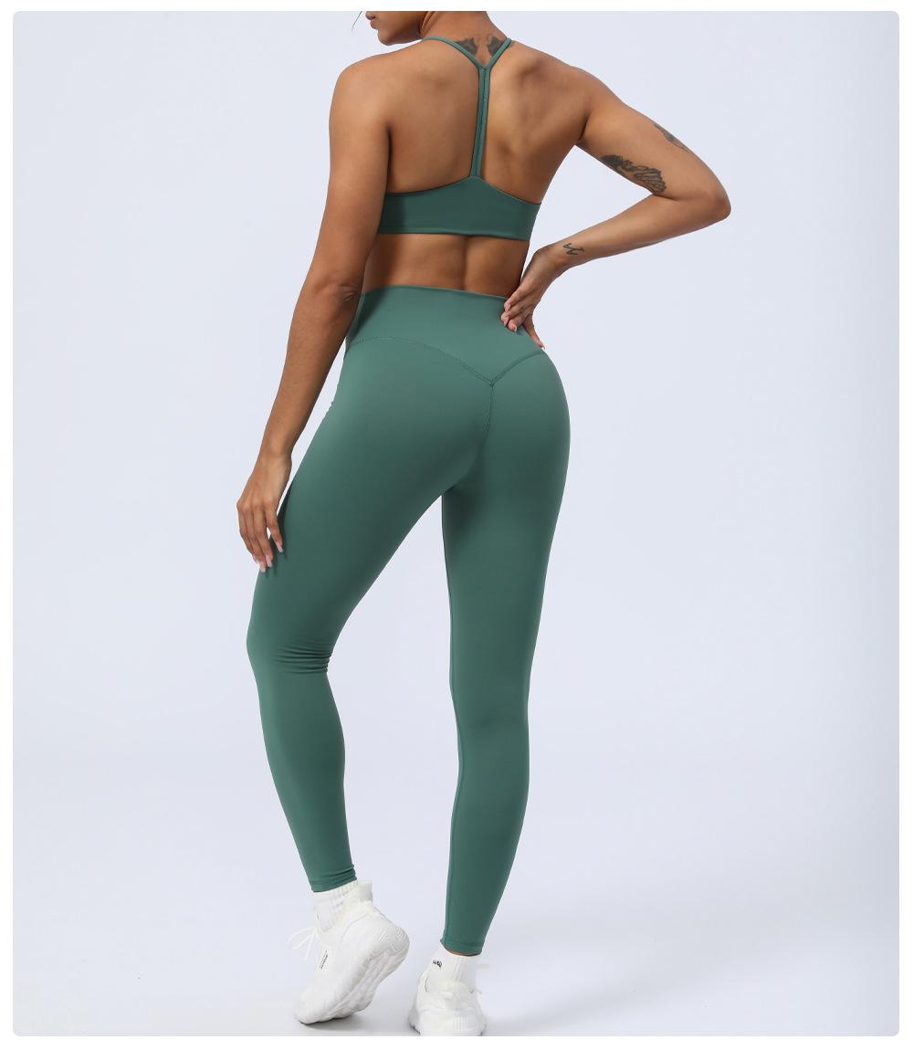 Traje deportivo de dos piezas para mujer, con espalda en Y y almohadilla para el pecho, pantalones cortos para levantar la cadera.