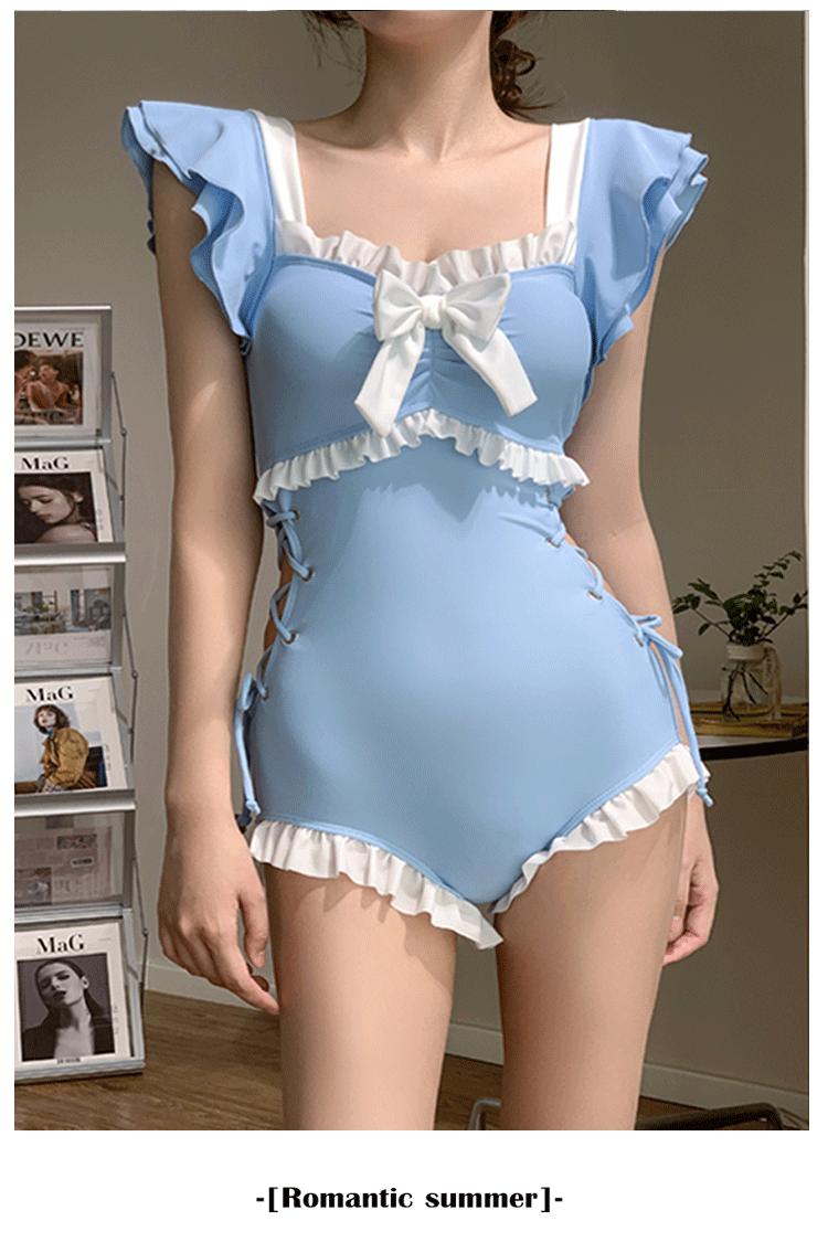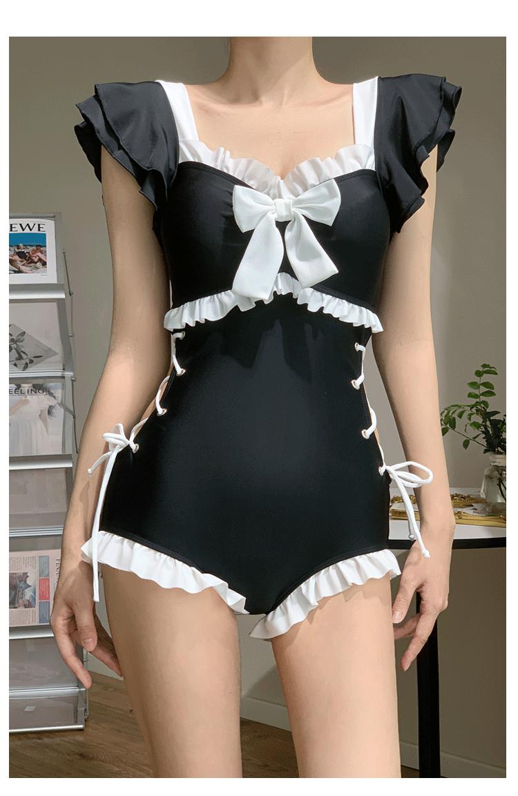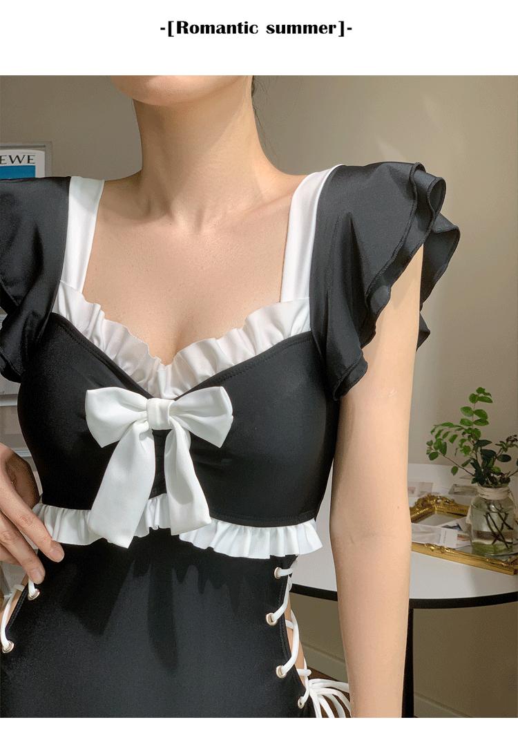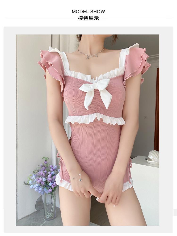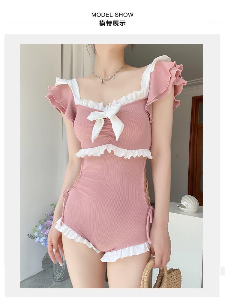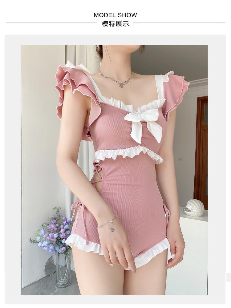 Traje de Baño de Estilo Coreano para Mujer Una Pieza Lindo Chica Conservador Cubre Vientre Look Adelgazante Estilo Ins 2025 Nuevo Traje de Baño para Resort Aguas Termales