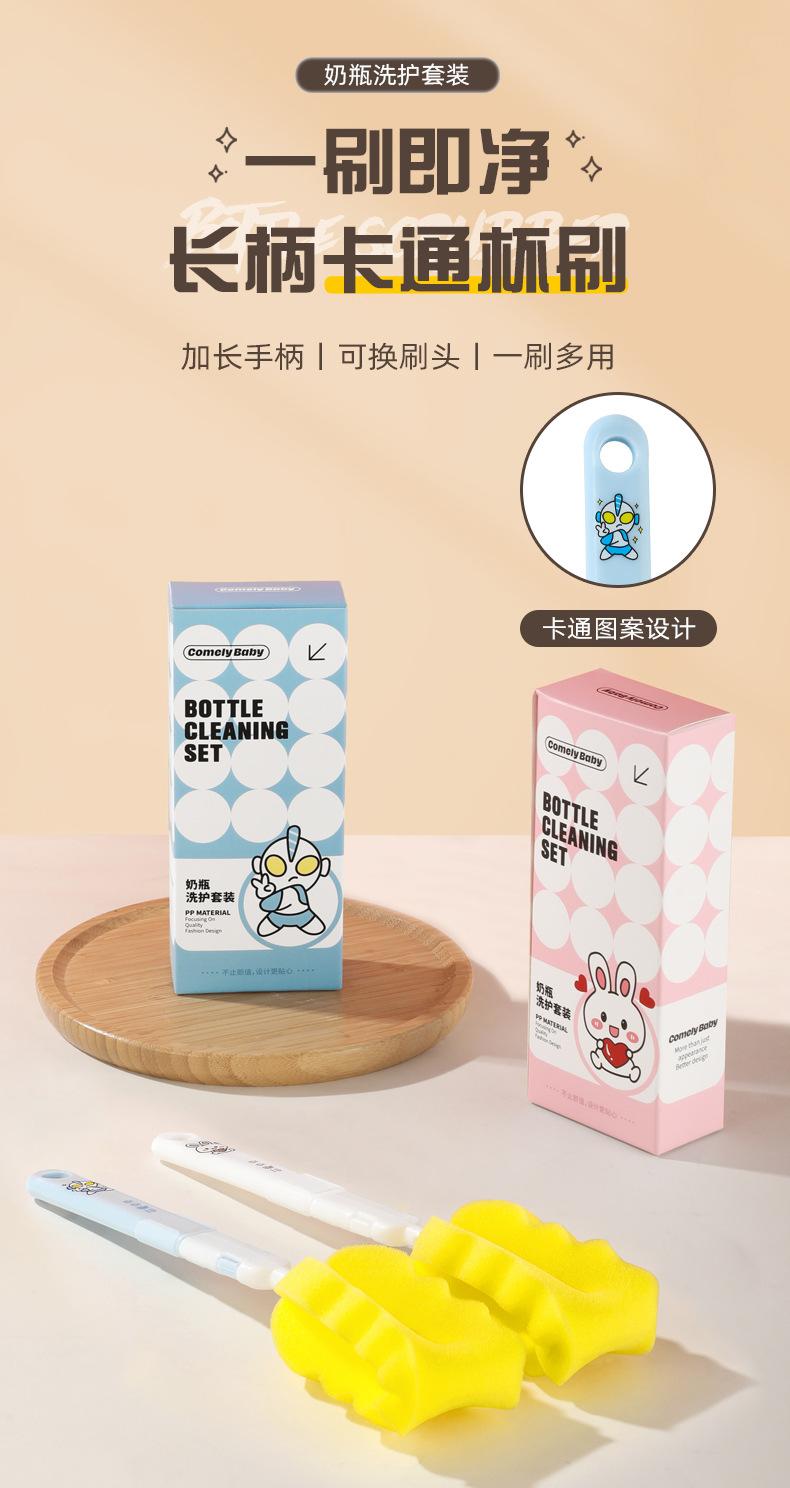Cepillo para biberón con caja de color cepillo para tetina cepillo limpiador de esponja traje de cepillo para biberón juego de tres piezas traje