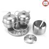 Tarro de condimento de acero inoxidable 304 apto para cocina de tres sabores, cuchara de azúcar, sal, botella de condimento MSG, caja de condimento giratoria