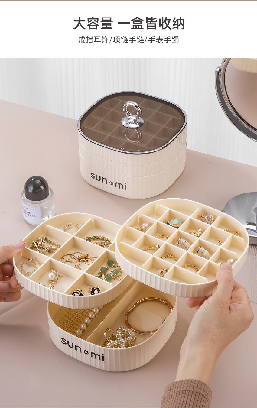 Caja de Almacenamiento de Joyas Estilo Crema Retro, Aretes, Pendientes, Collares, Anillos, Relojes y Joyeros con Particiones Multicapa de Aspecto Elegante