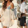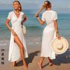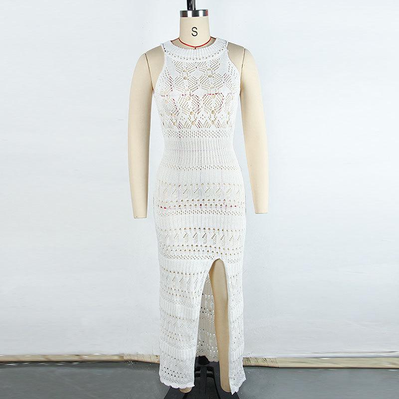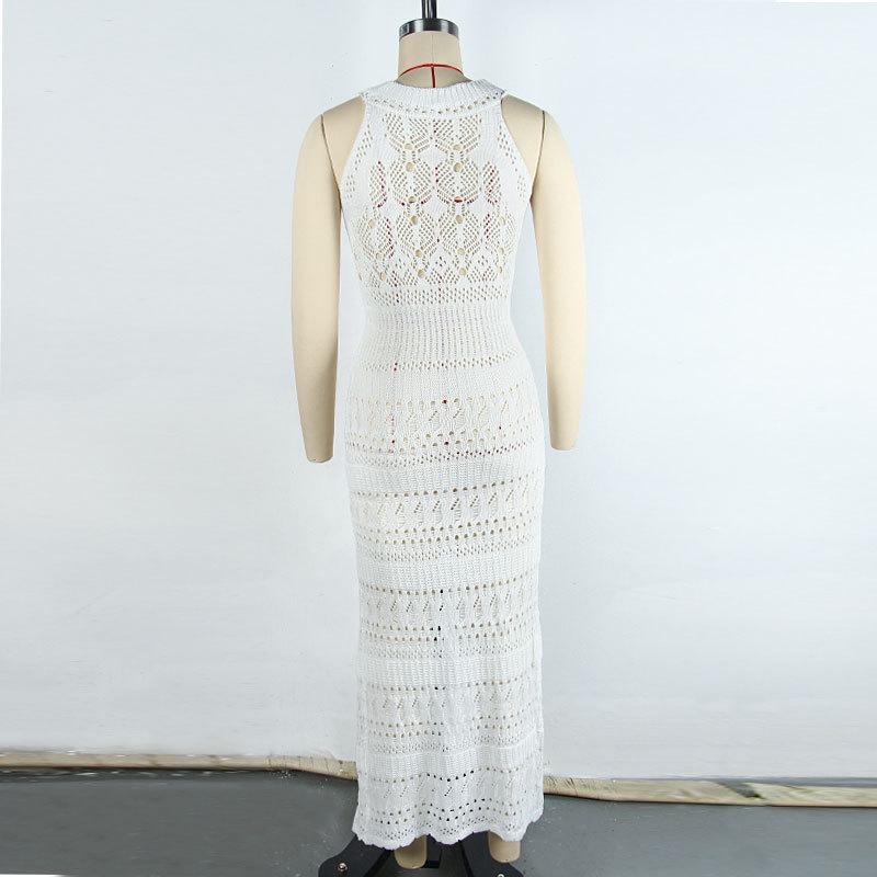 Nuevo Transfronterizo Amazon Tejido Calado Protector Solar Playa Cubre Traje de Baño Halter Espalda Descubierta Abertura Bikini Traje de Baño Vestido Largo