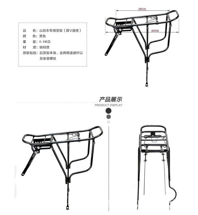 Este estante es de acero sólido con puntos de soldadura en ambos lados y es compatible con frenos de disco y frenos V-Brake. Dispone de orificios grandes y pequeños. Si necesita personalizarlo, póngase en contacto con atención al cliente.