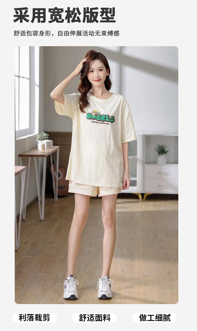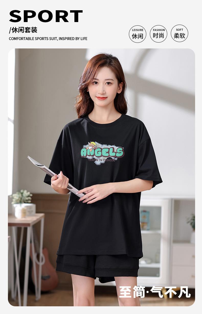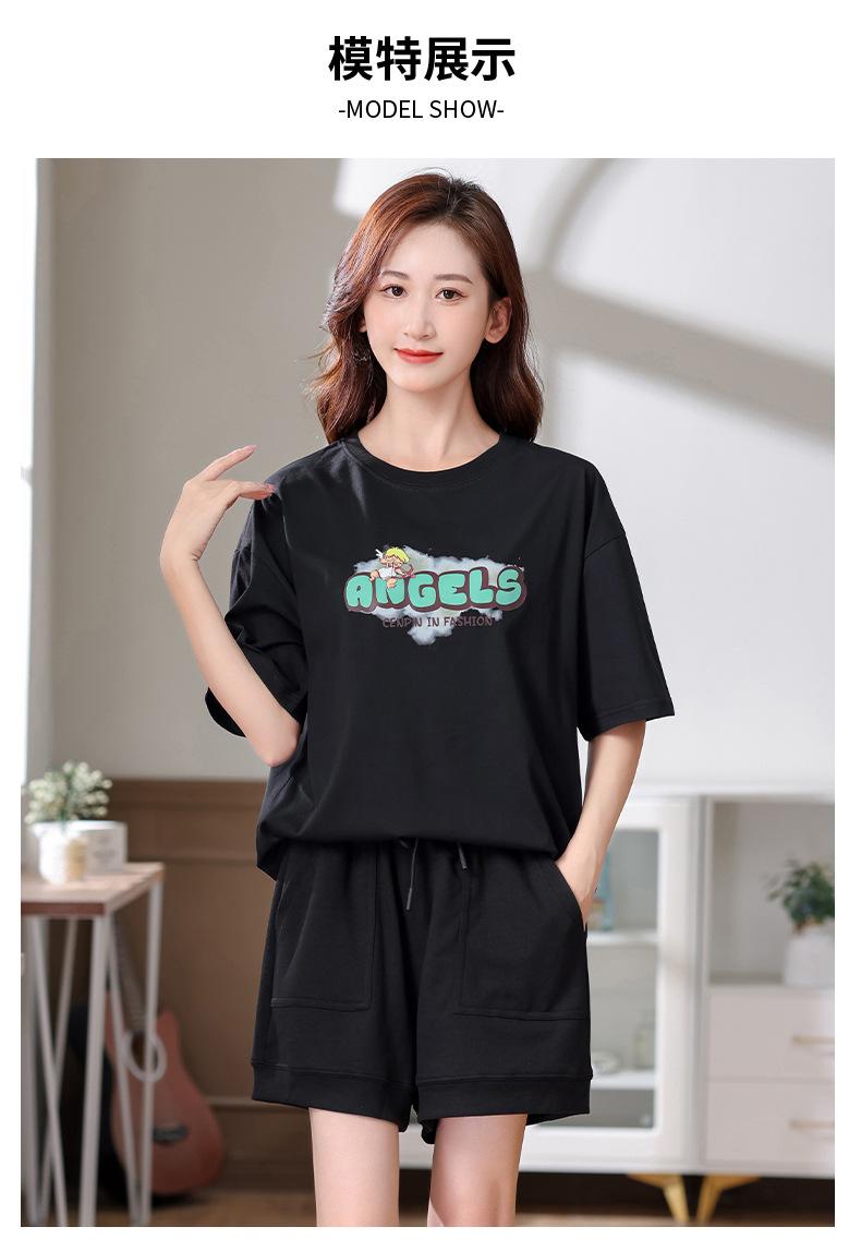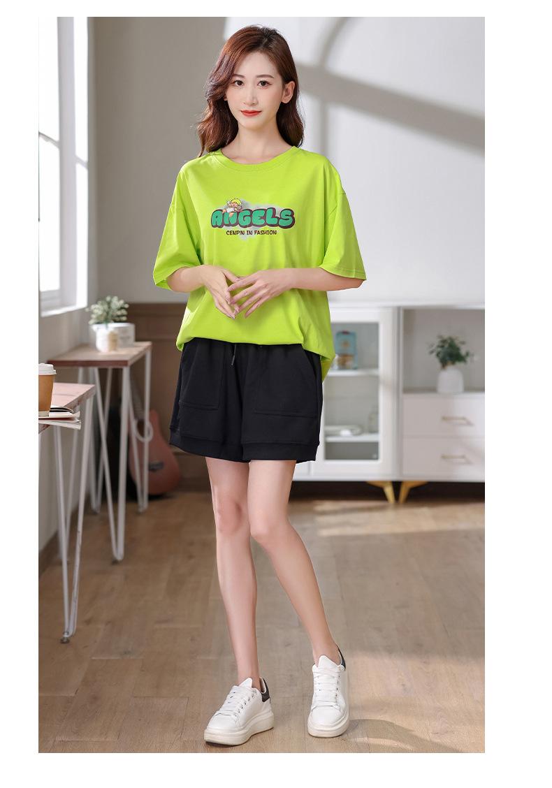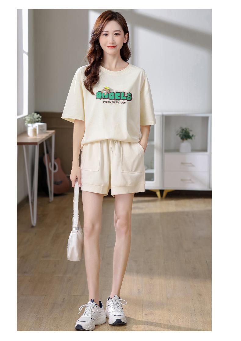 Traje deportivo informal de verano para mujer, fino, novedad de 2024, top de manga corta con cuello redondo y pantalones cortos de dos piezas.