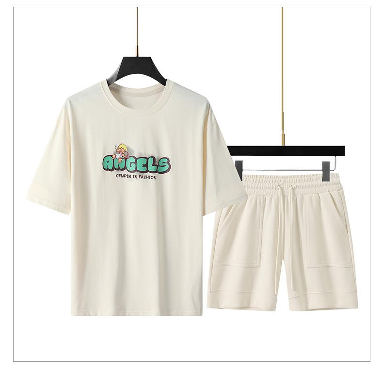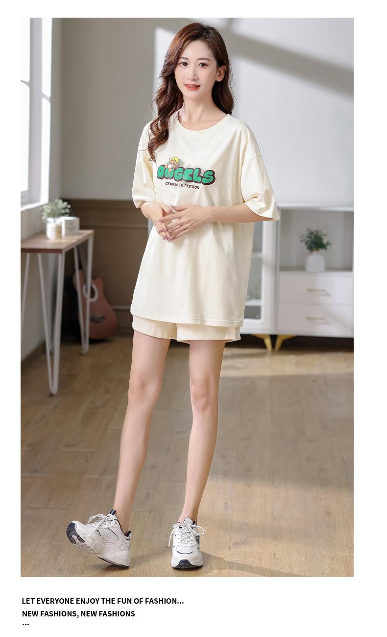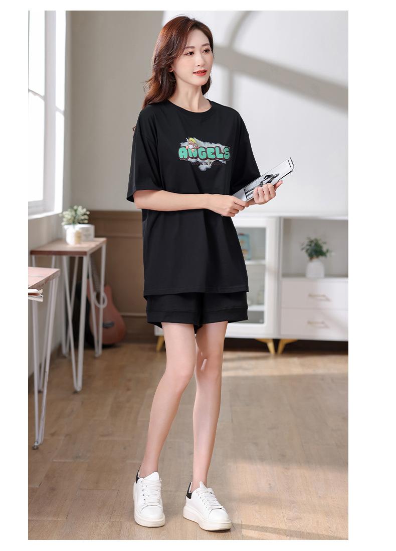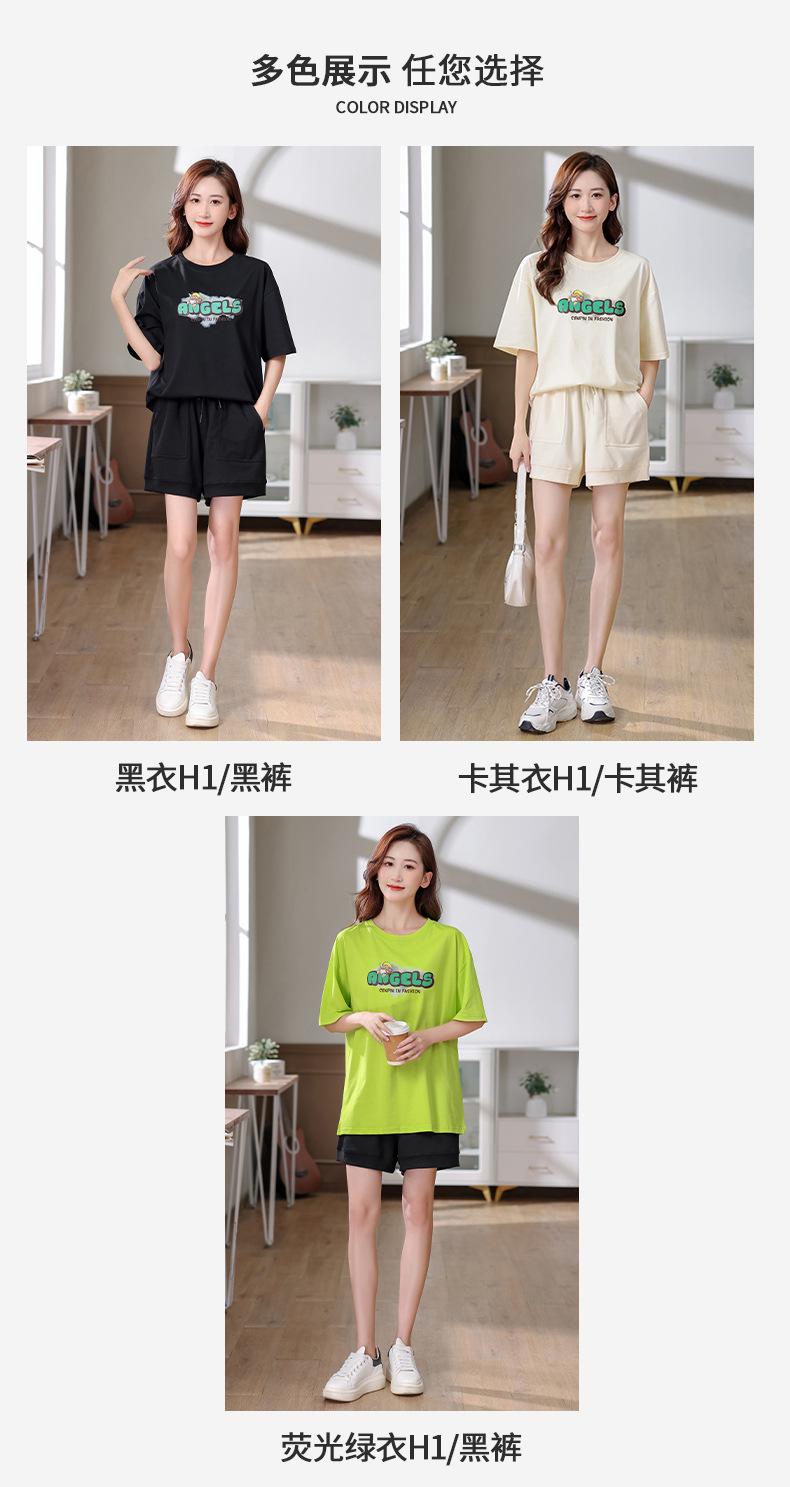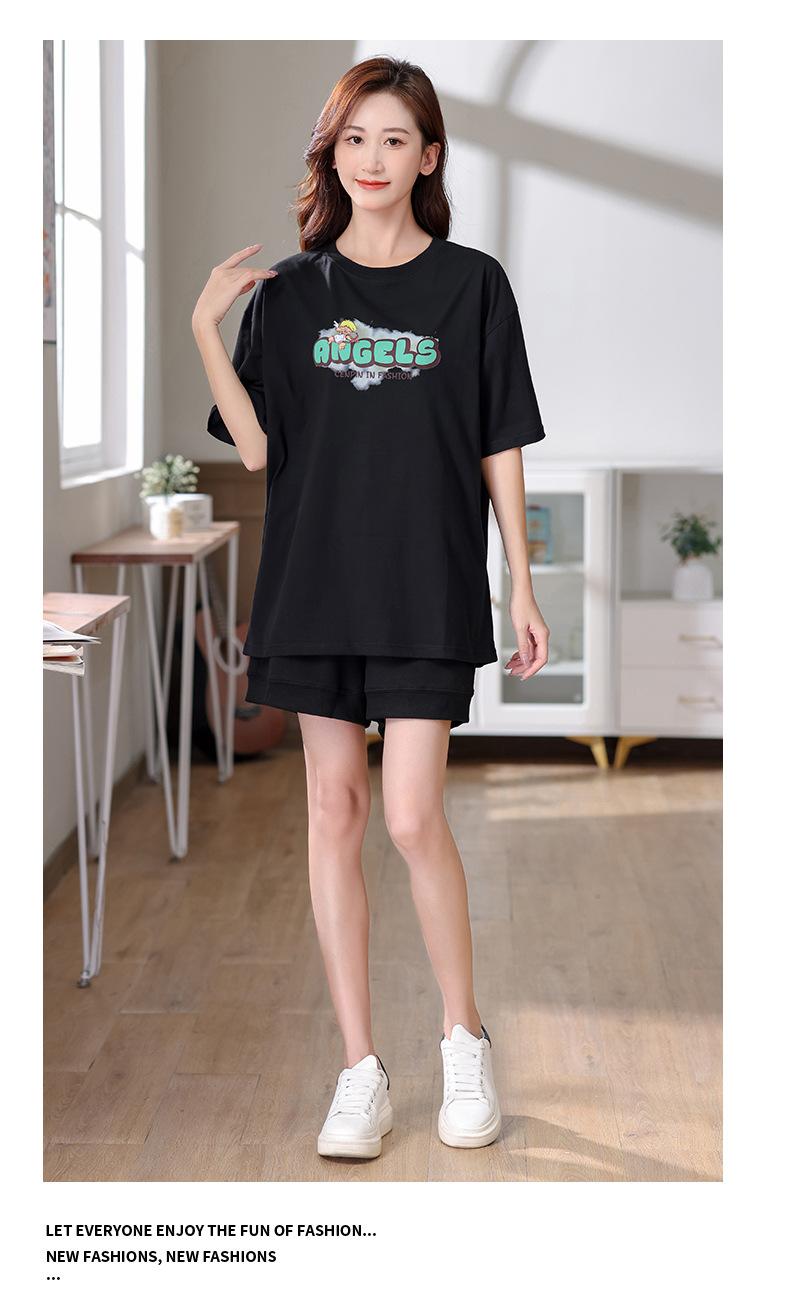 Traje deportivo informal de verano para mujer, fino, novedad de 2024, top de manga corta con cuello redondo y pantalones cortos de dos piezas.