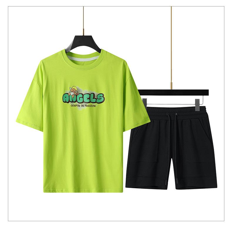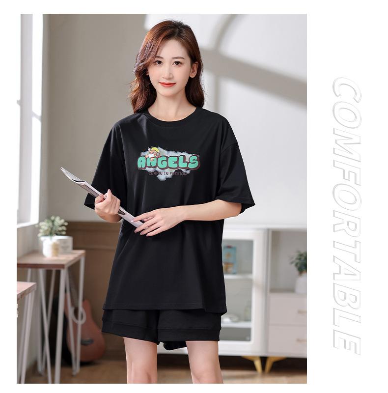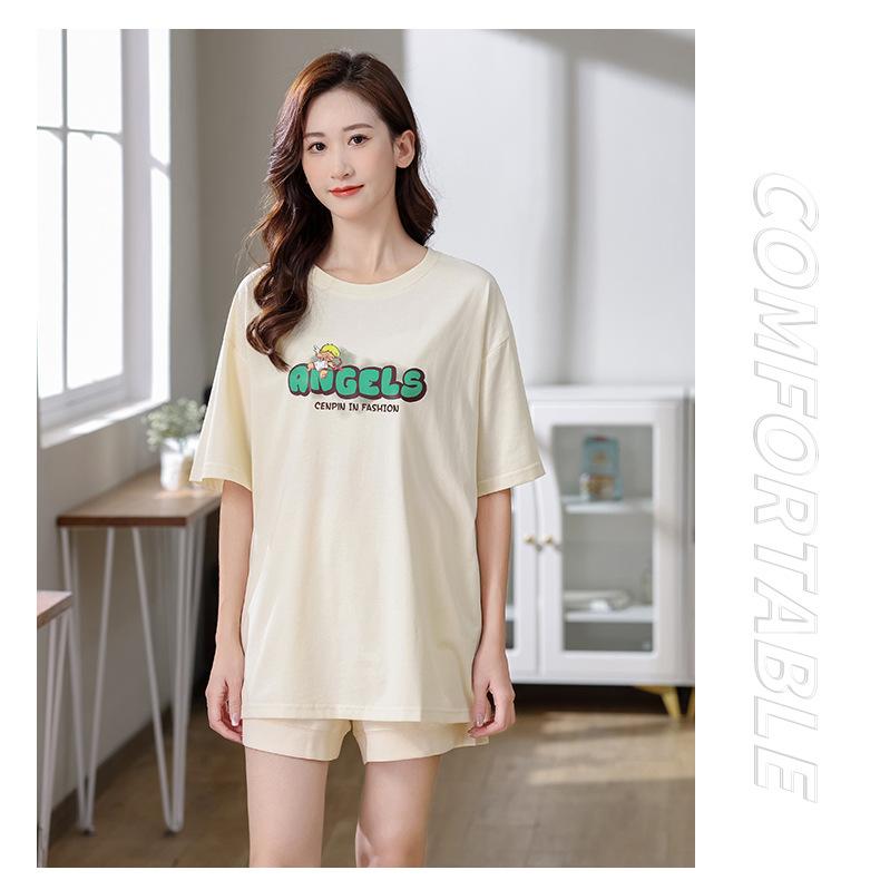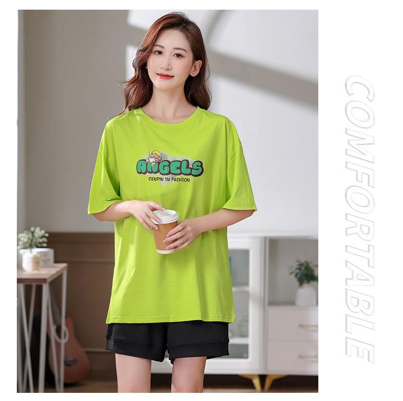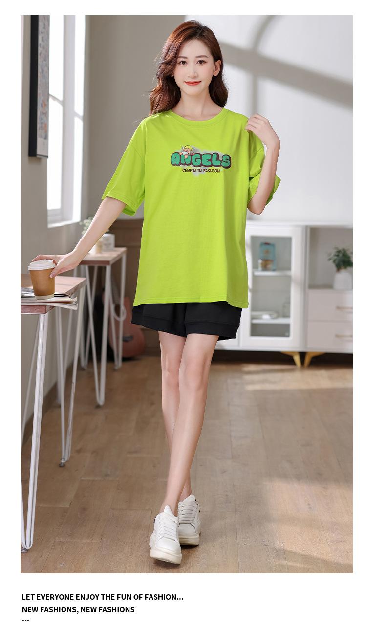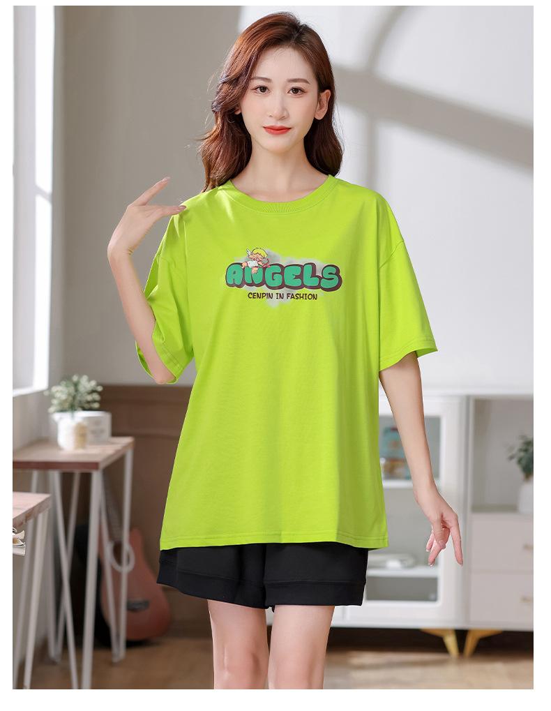 Traje deportivo informal de verano para mujer, fino, novedad de 2024, top de manga corta con cuello redondo y pantalones cortos de dos piezas.