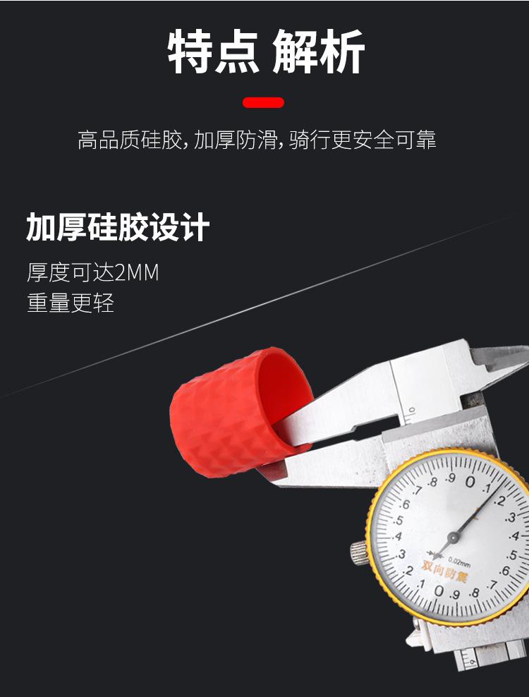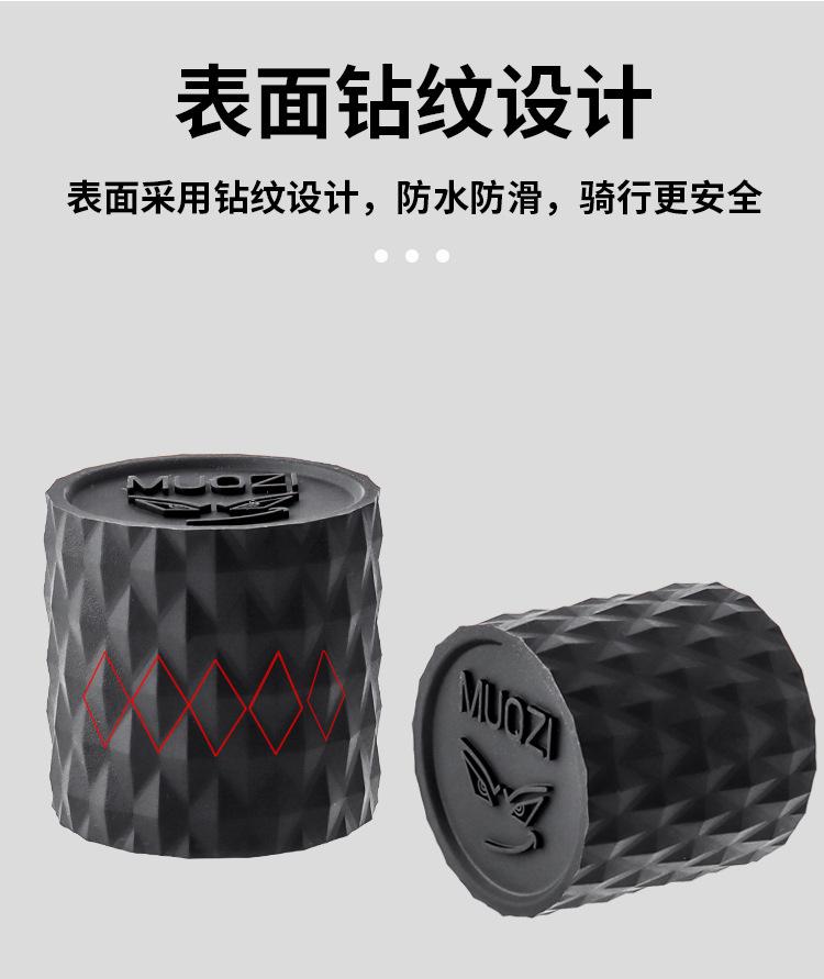 Función: evita que las correas se aflojen, aumenta la fricción del manillar durante la conducción, es resistente al agua y al polvo, y evita que los extremos del manillar se golpeen y se rayen.