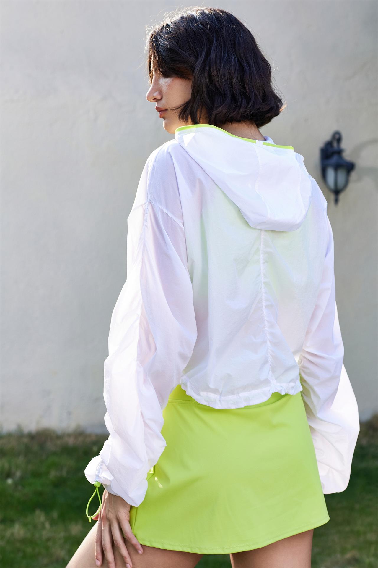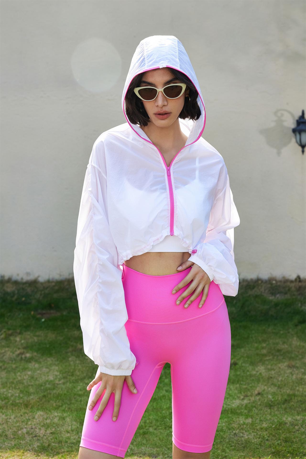 Chaqueta Deportiva Holgada con Capucha Aido de Verano para Exterior Casual Corta Top de Yoga con Cordón Plisada Ropa de Yoga para Mujer
