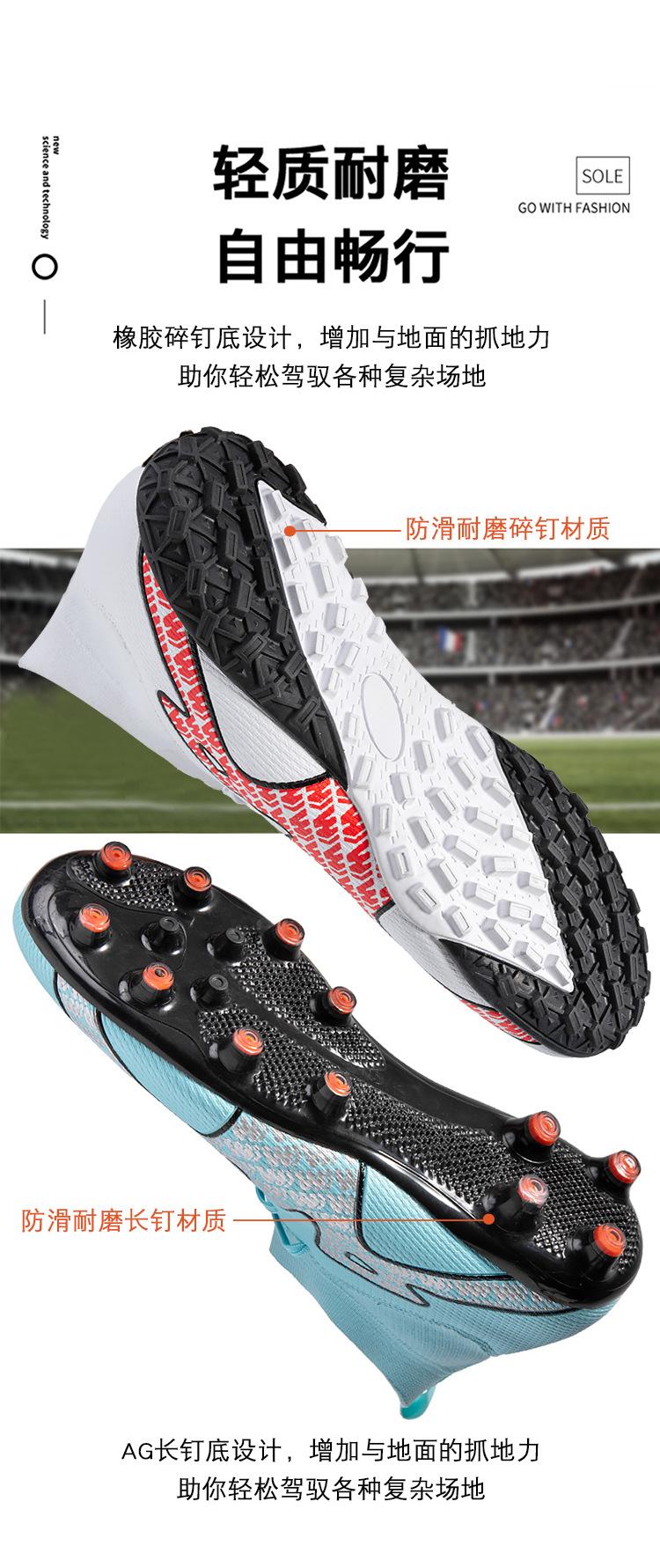 Nuevas botas de fútbol para hombre, de caña alta, para adultos, AG, con clavos largos, para césped artificial, zapatillas de entrenamiento de competición C Romassey, clavos rotos