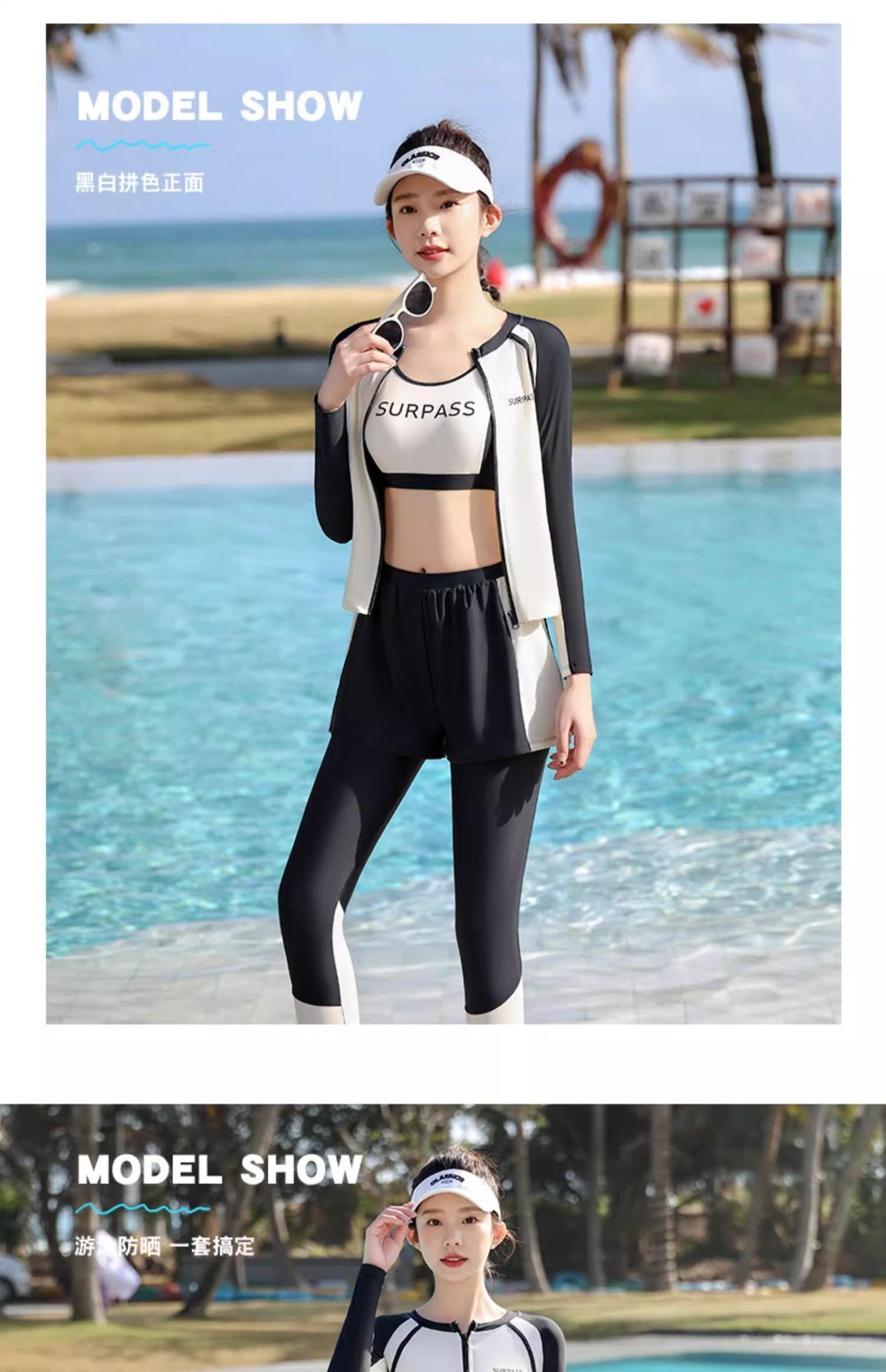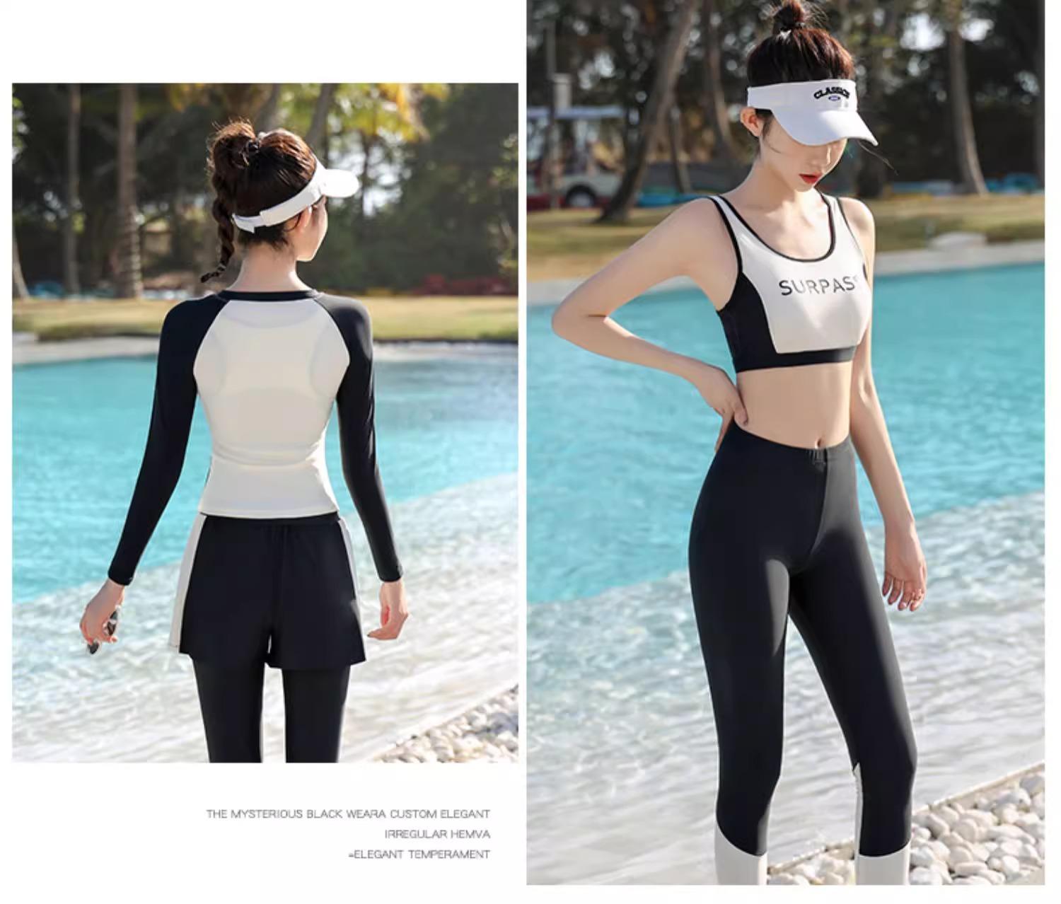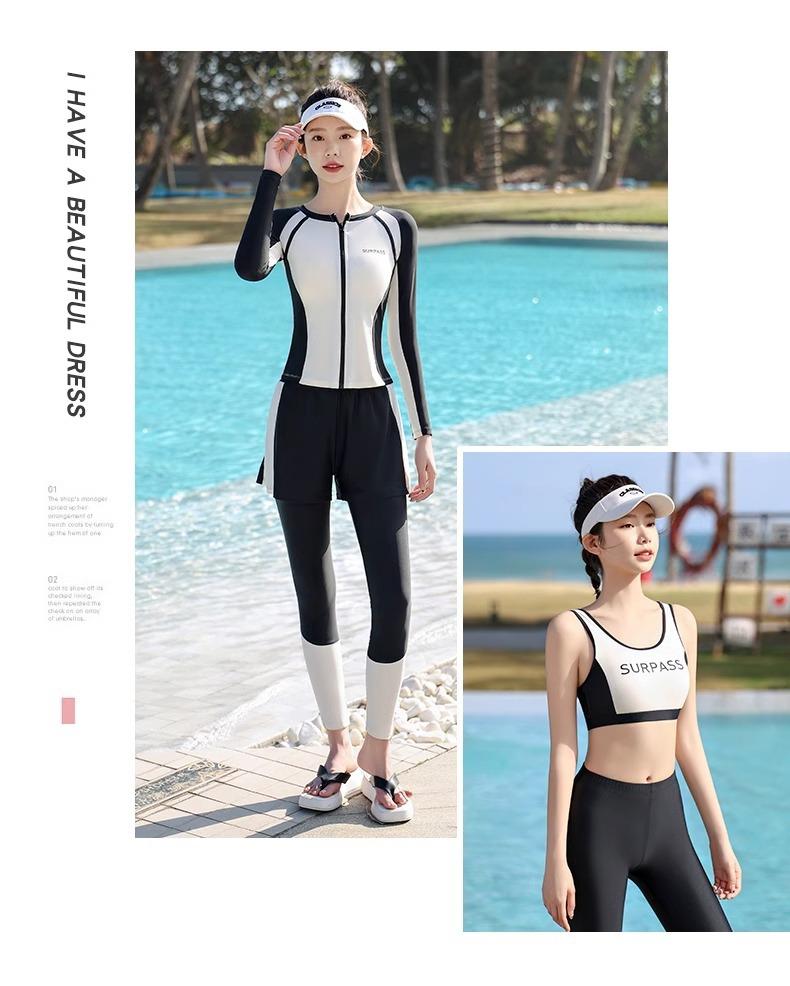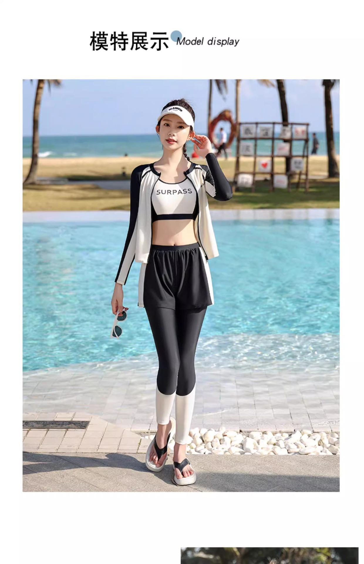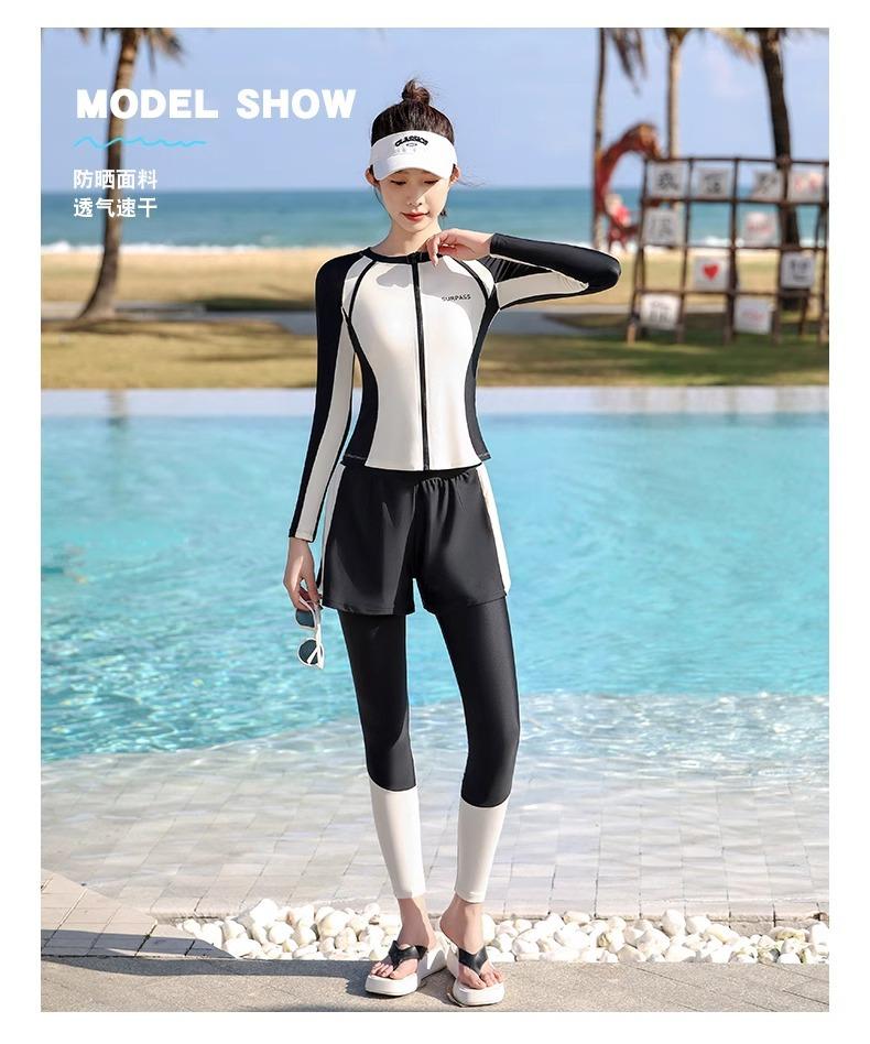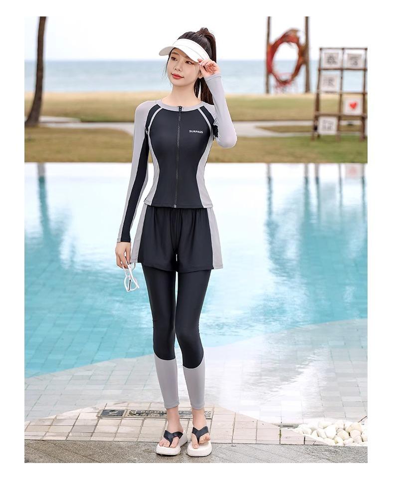 Traje de baño de dos piezas para mujer 2025 Nueva moda de cuatro piezas Conservador de manga larga Pantalón largo Surf Snorkel Rash Guard