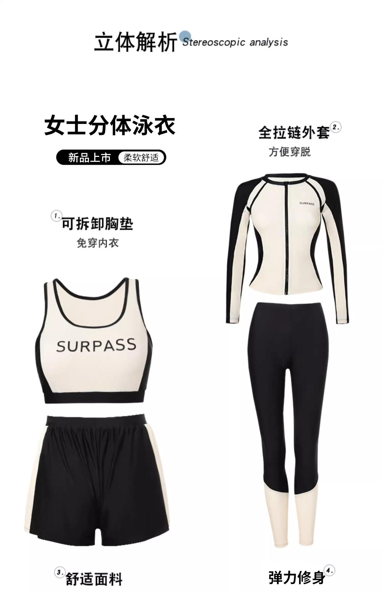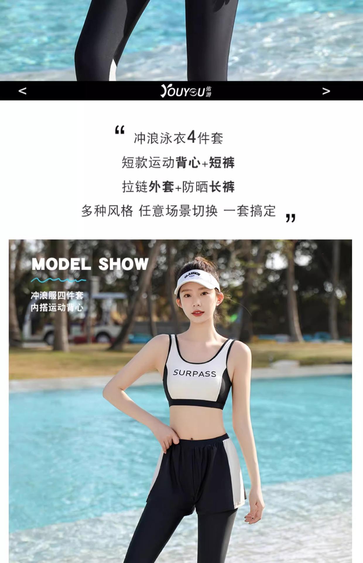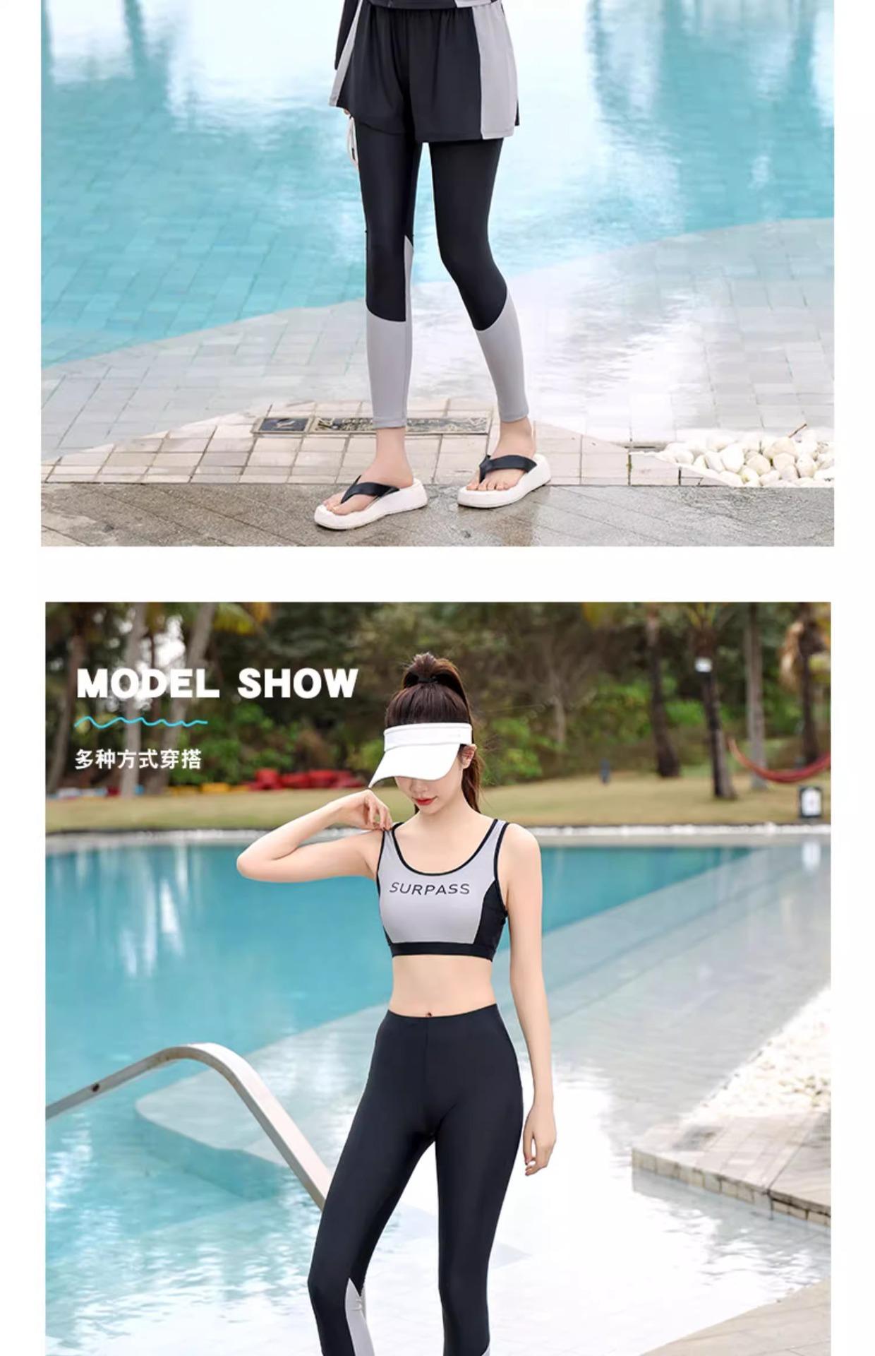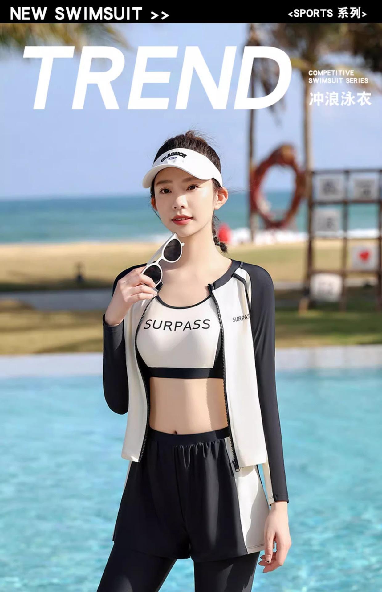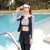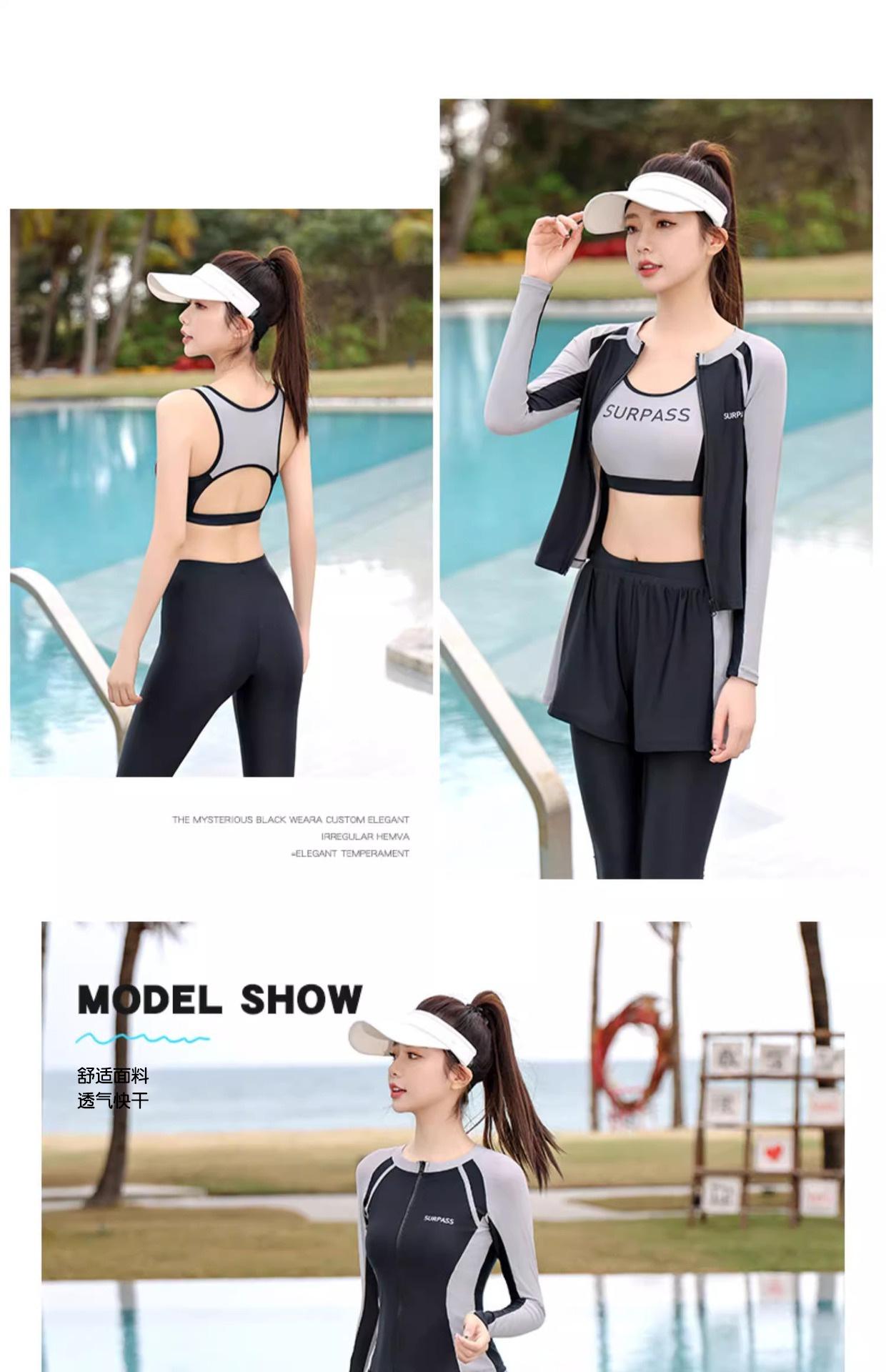 Traje de baño de dos piezas para mujer 2025 Nueva moda de cuatro piezas Conservador de manga larga Pantalón largo Surf Snorkel Rash Guard