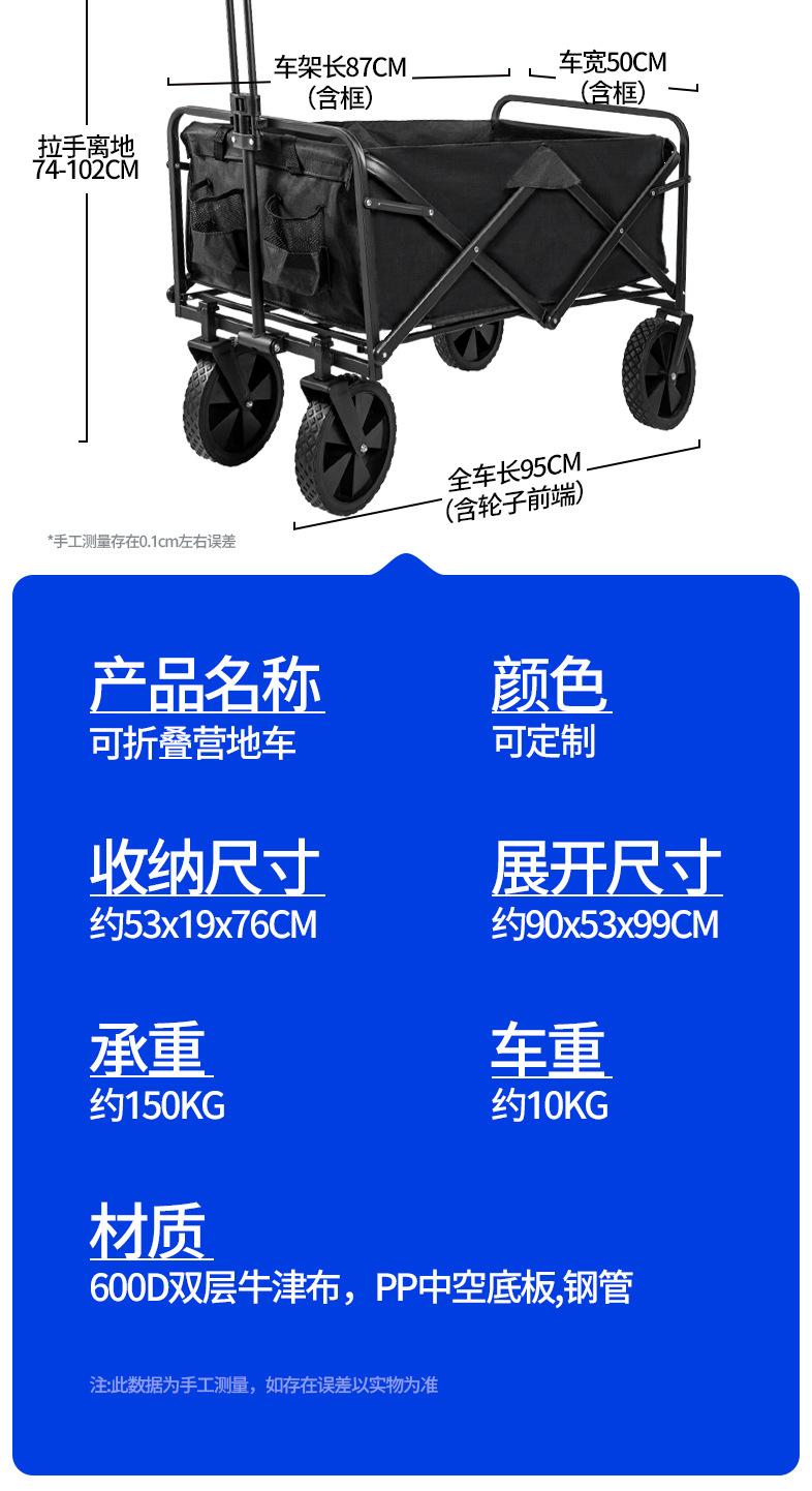 Carro de Camping Carrito de Mano para Camping Remolque Ligero Plegable