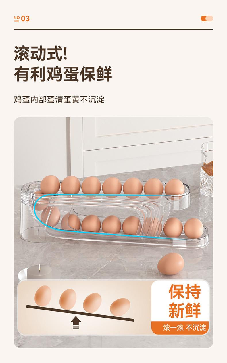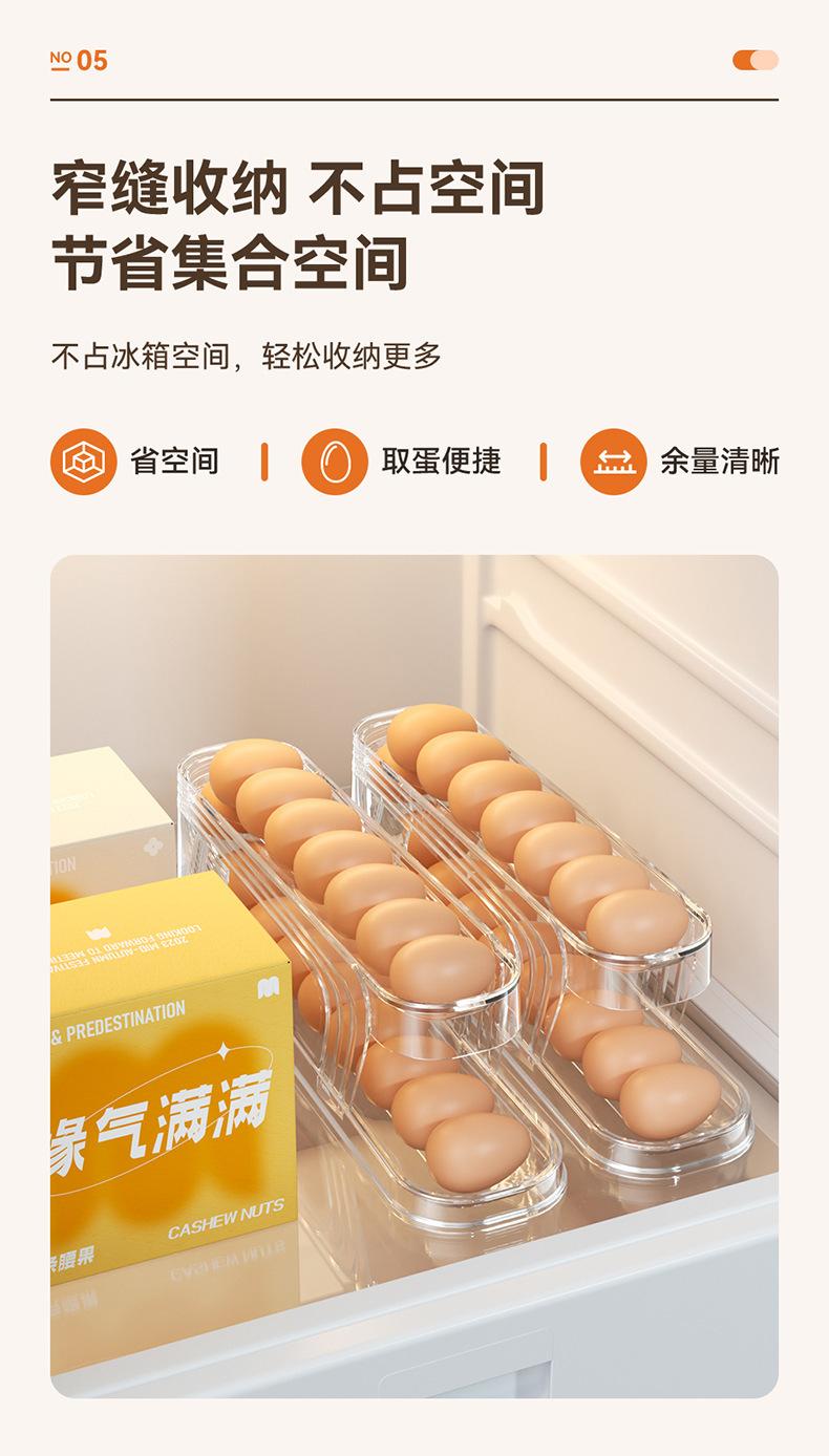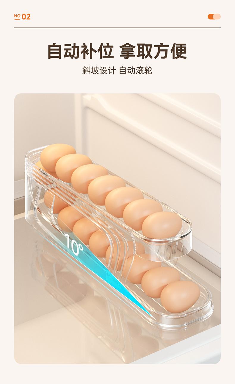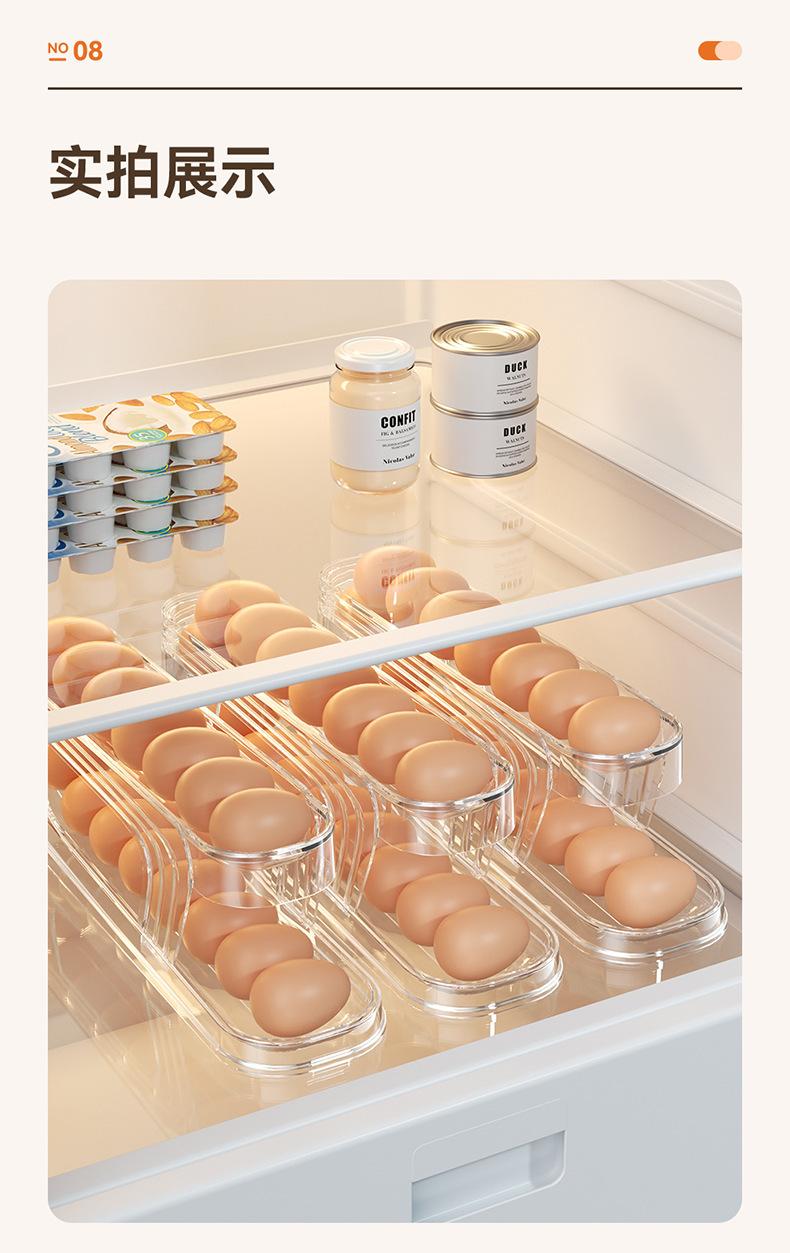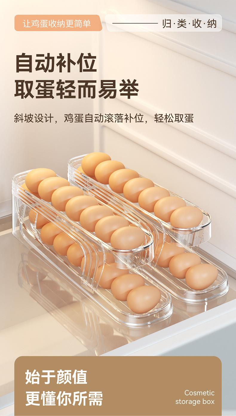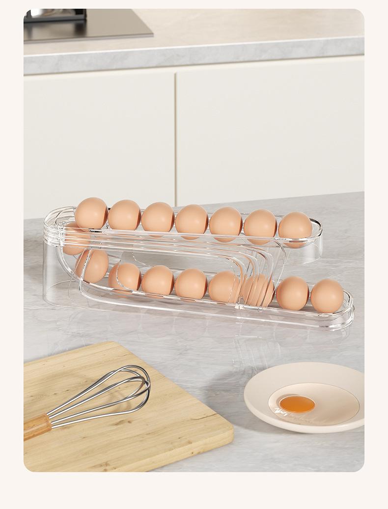 Caja de huevos tipo deslizante para puerta lateral de refrigerador, dedicada, doble capa, rodillo de huevos automático, caja de almacenamiento de huevos a prueba de caídas para encimera de cocina