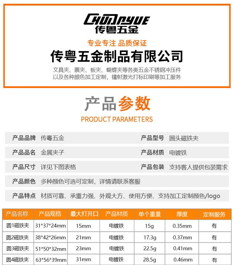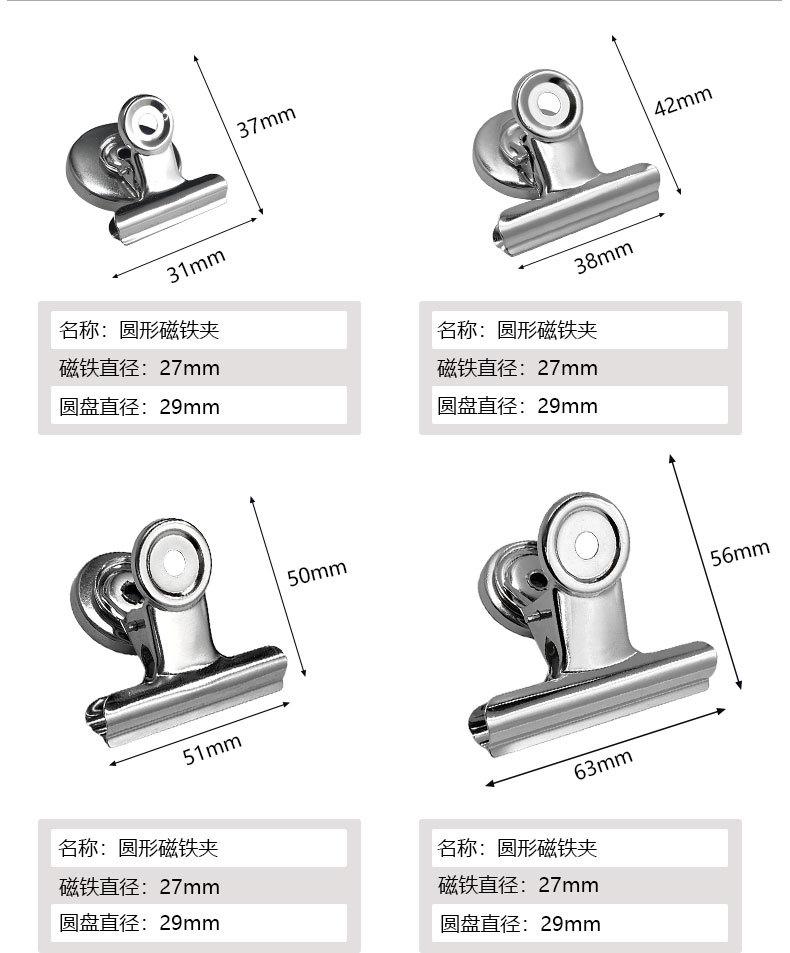 Clip magnético de 63 mm, clip de sellado magnético, clip para carpeta de oficina, clip para facturas, clip de cabeza redonda, clip redondo, clip de hierro