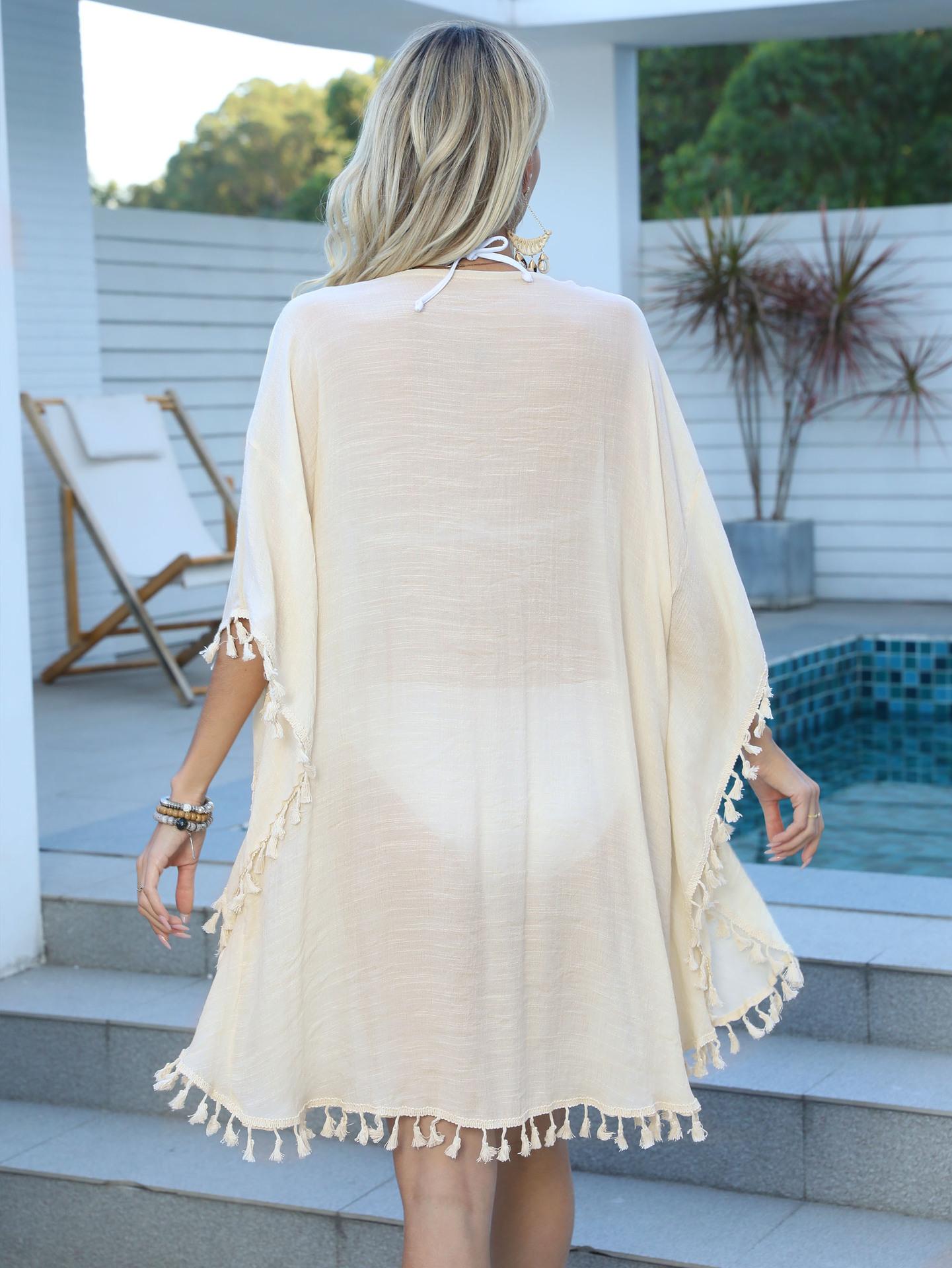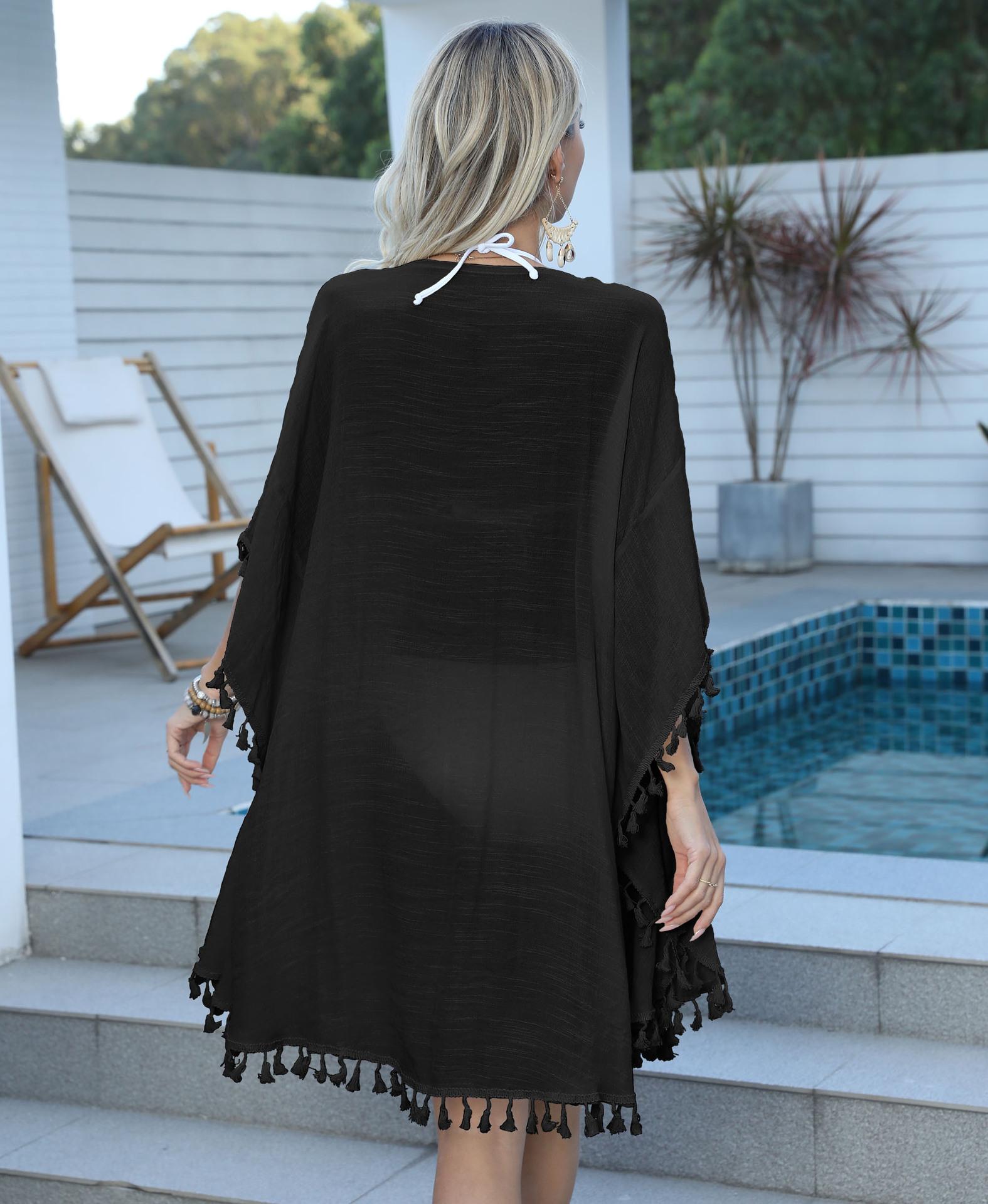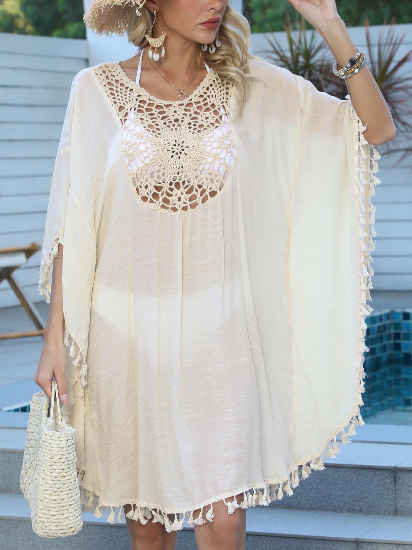 Blusa de playa para mujer, estilo bikini con borlas y costuras de ganchillo, estilo transfronterizo europeo y americano.
