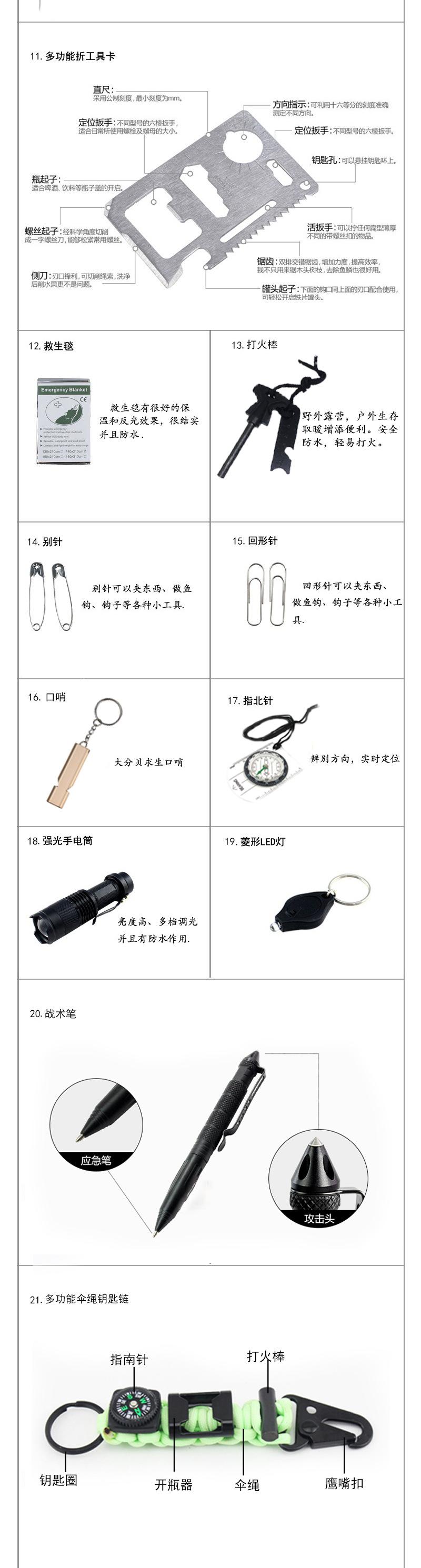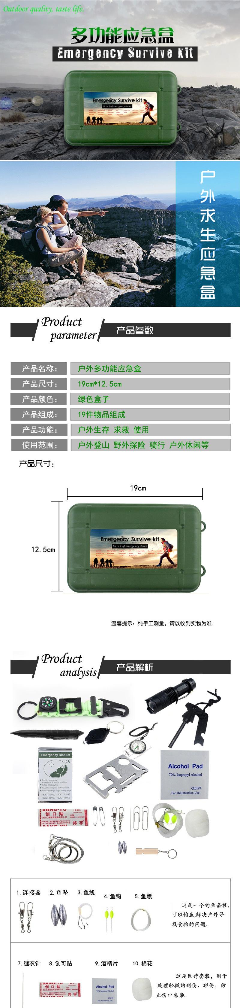 Suministros para acampar al aire libre supervivencia de emergencia escape en la naturaleza caja de herramientas portátil multifunción al por mayor