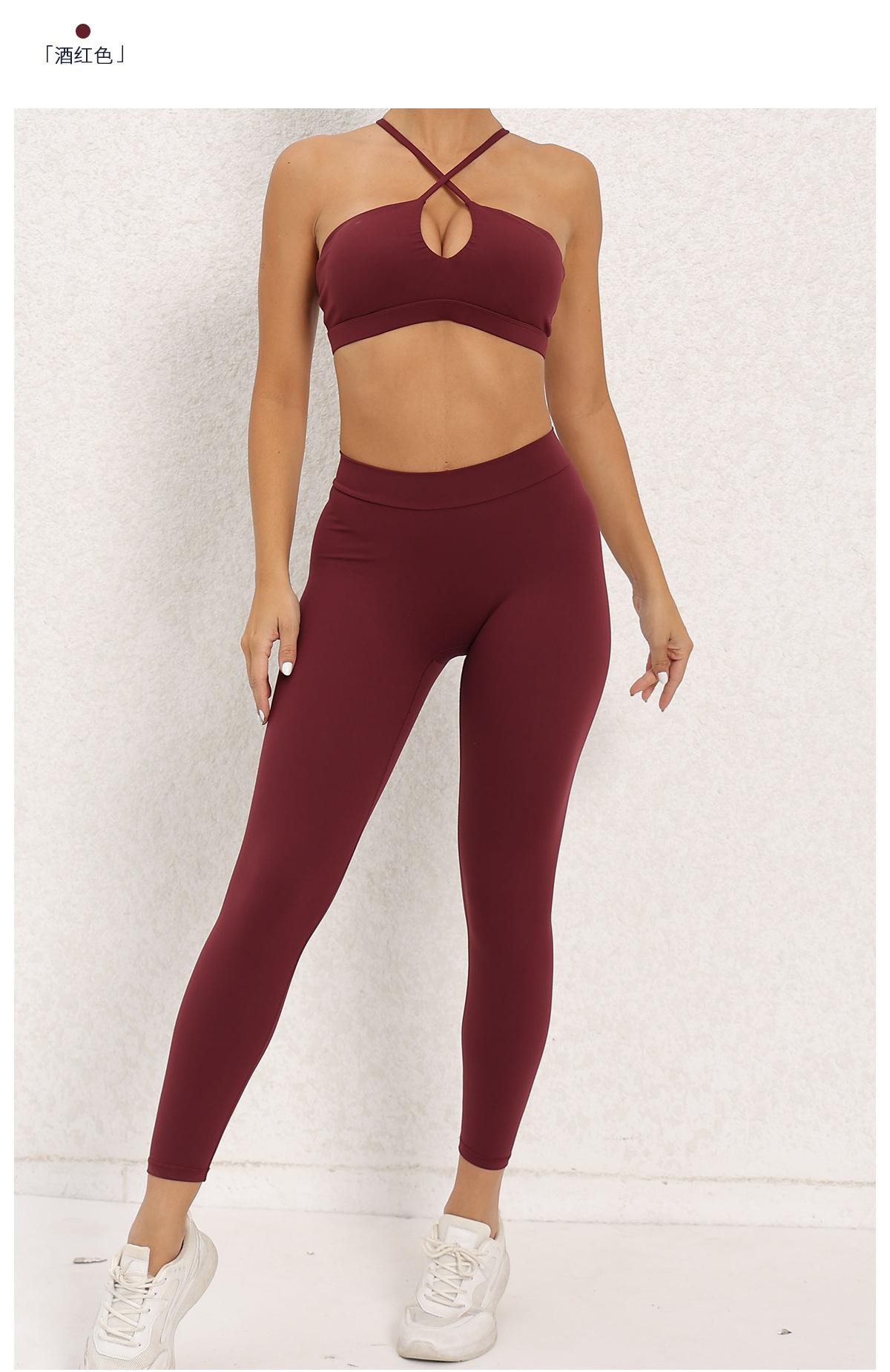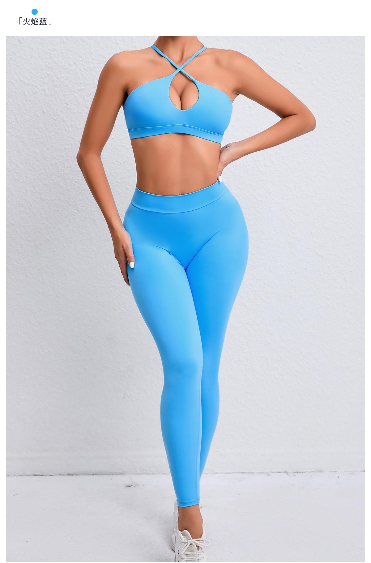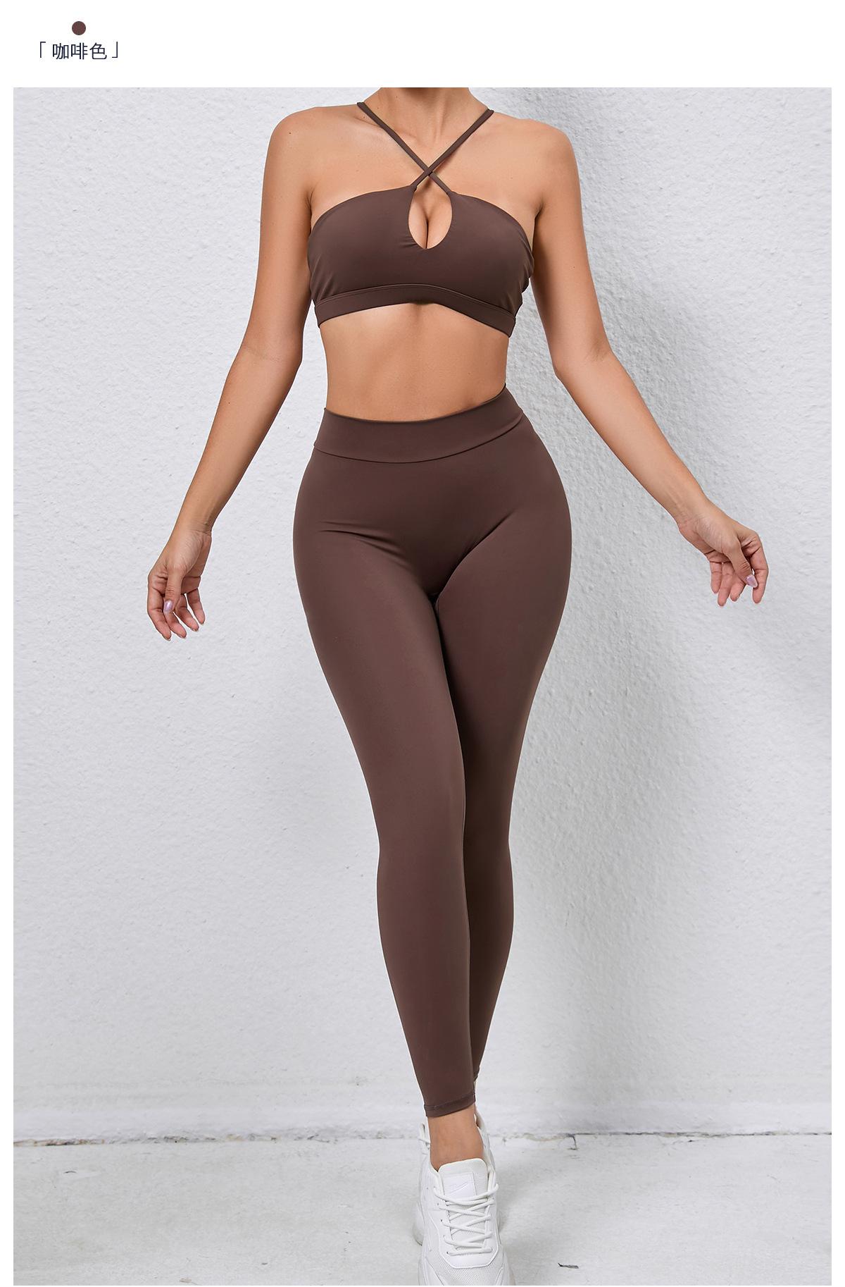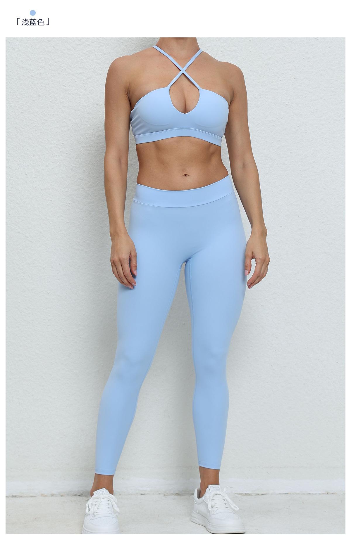 Nueva ropa de yoga desnuda europea y americana, traje deportivo ajustado con espalda cruzada para correr, traje de fitness de dos piezas transpirable de secado rápido