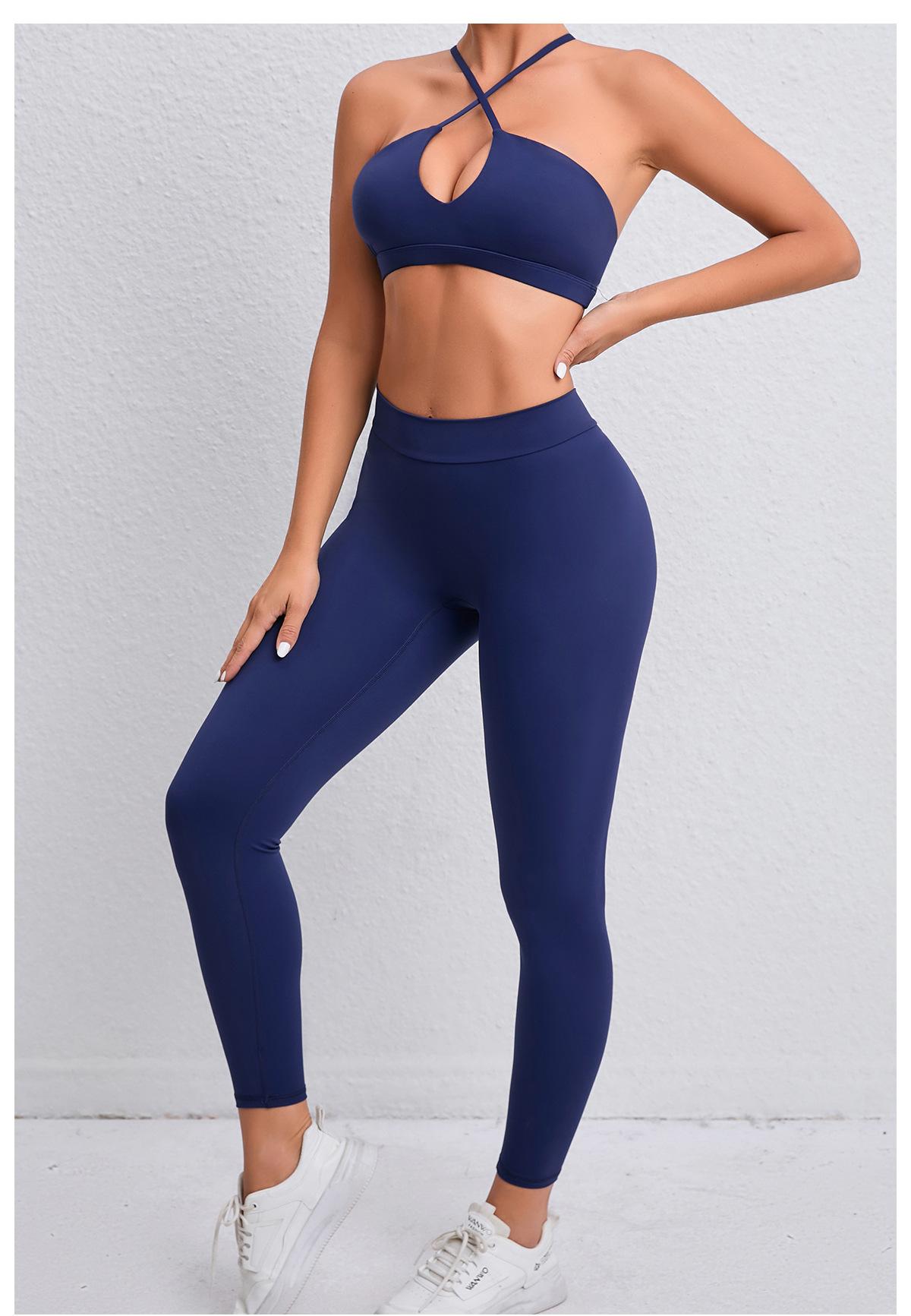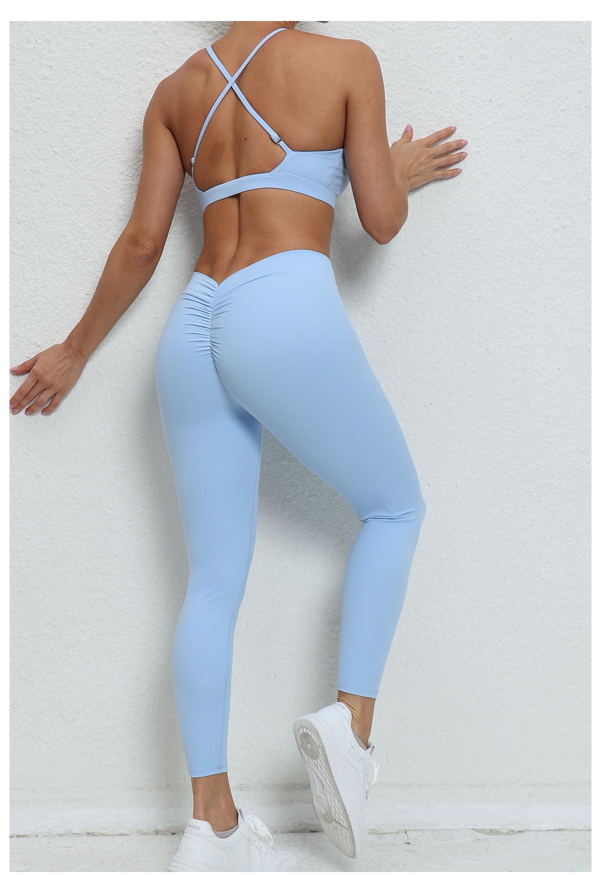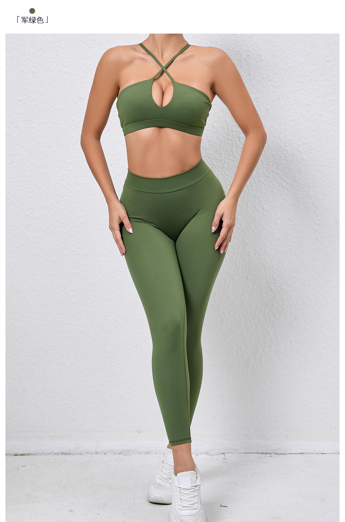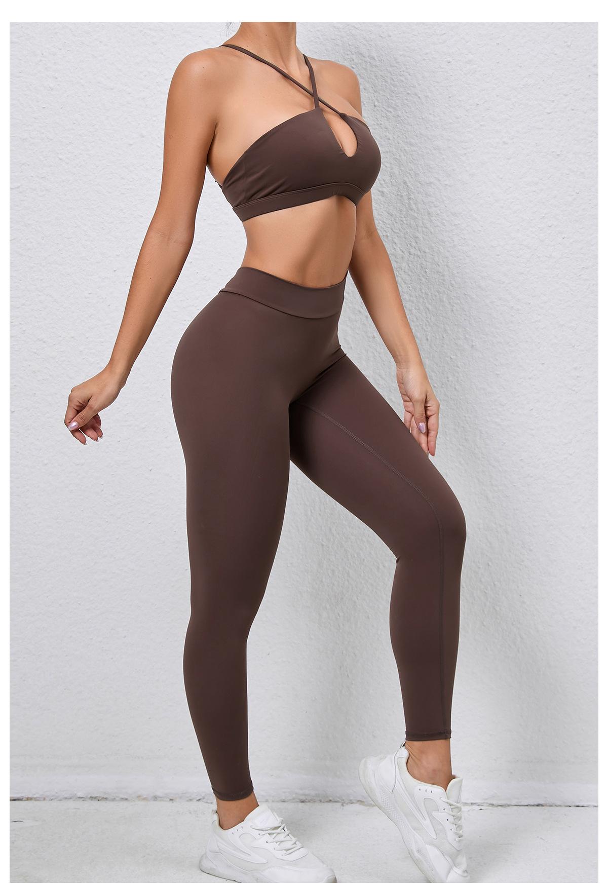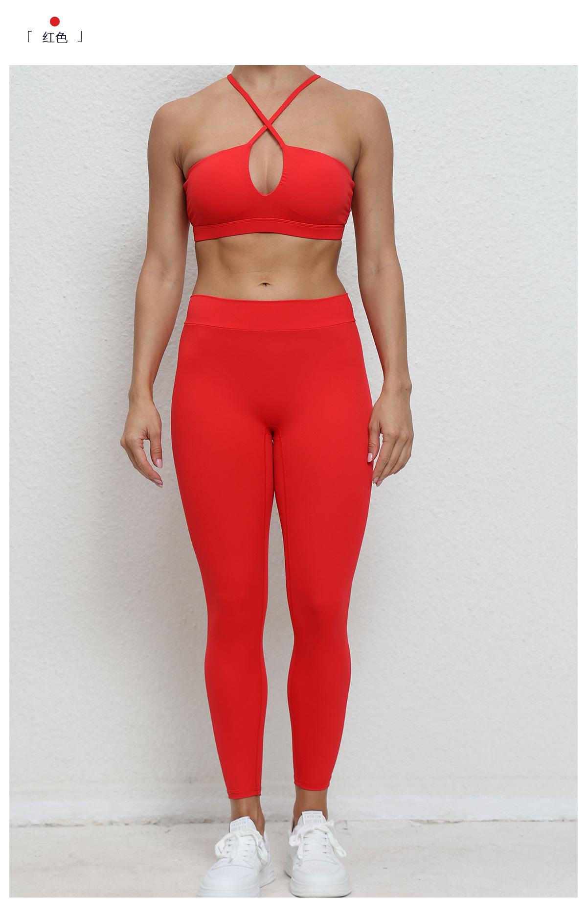 Nueva ropa de yoga desnuda europea y americana, traje deportivo ajustado con espalda cruzada para correr, traje de fitness de dos piezas transpirable de secado rápido