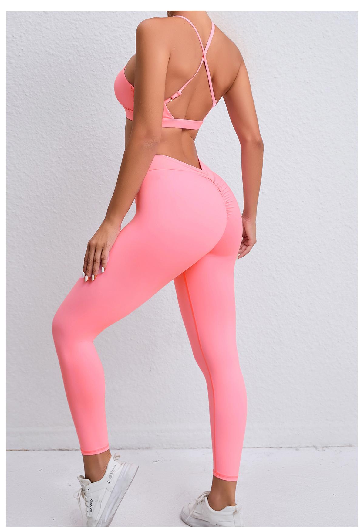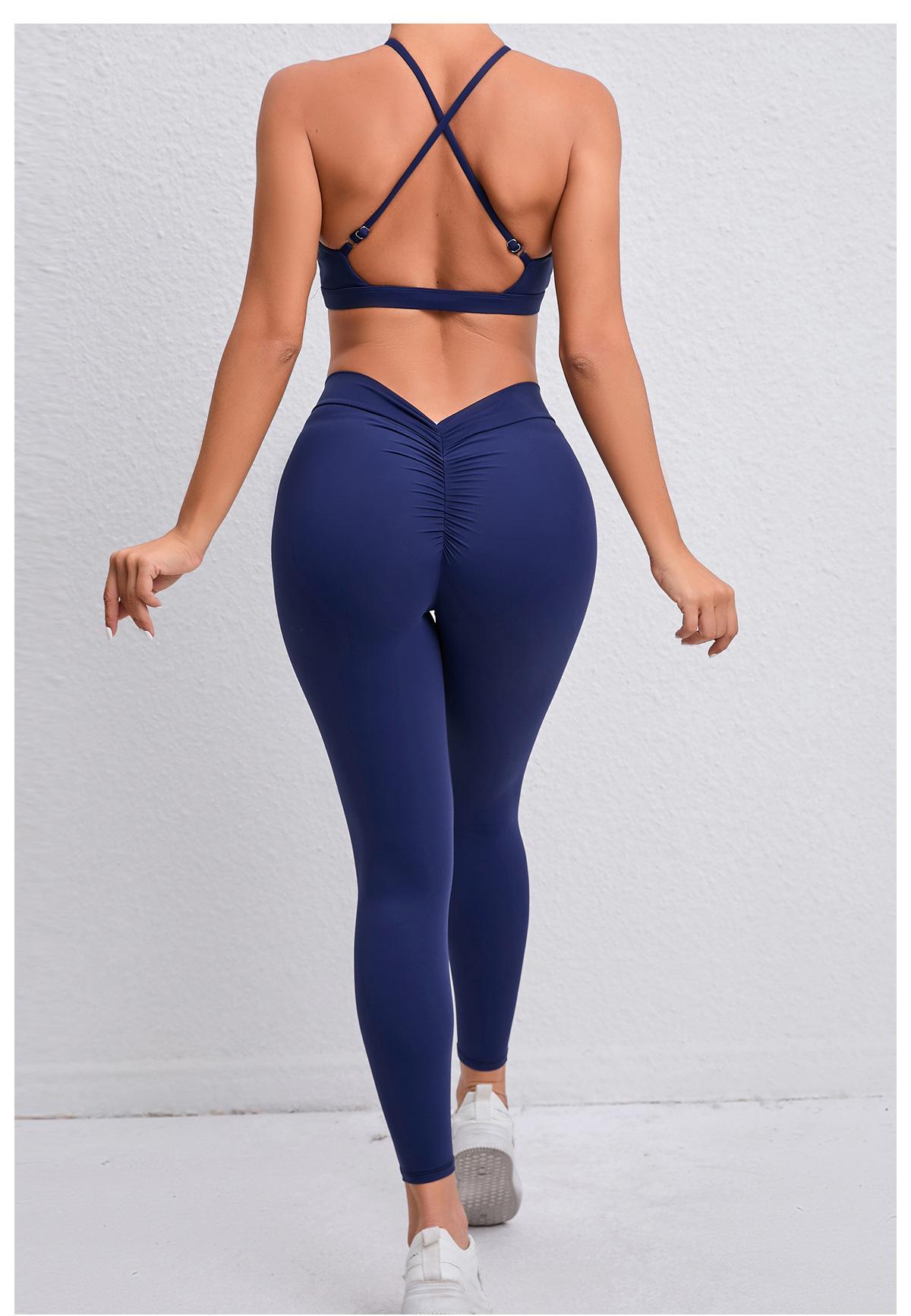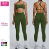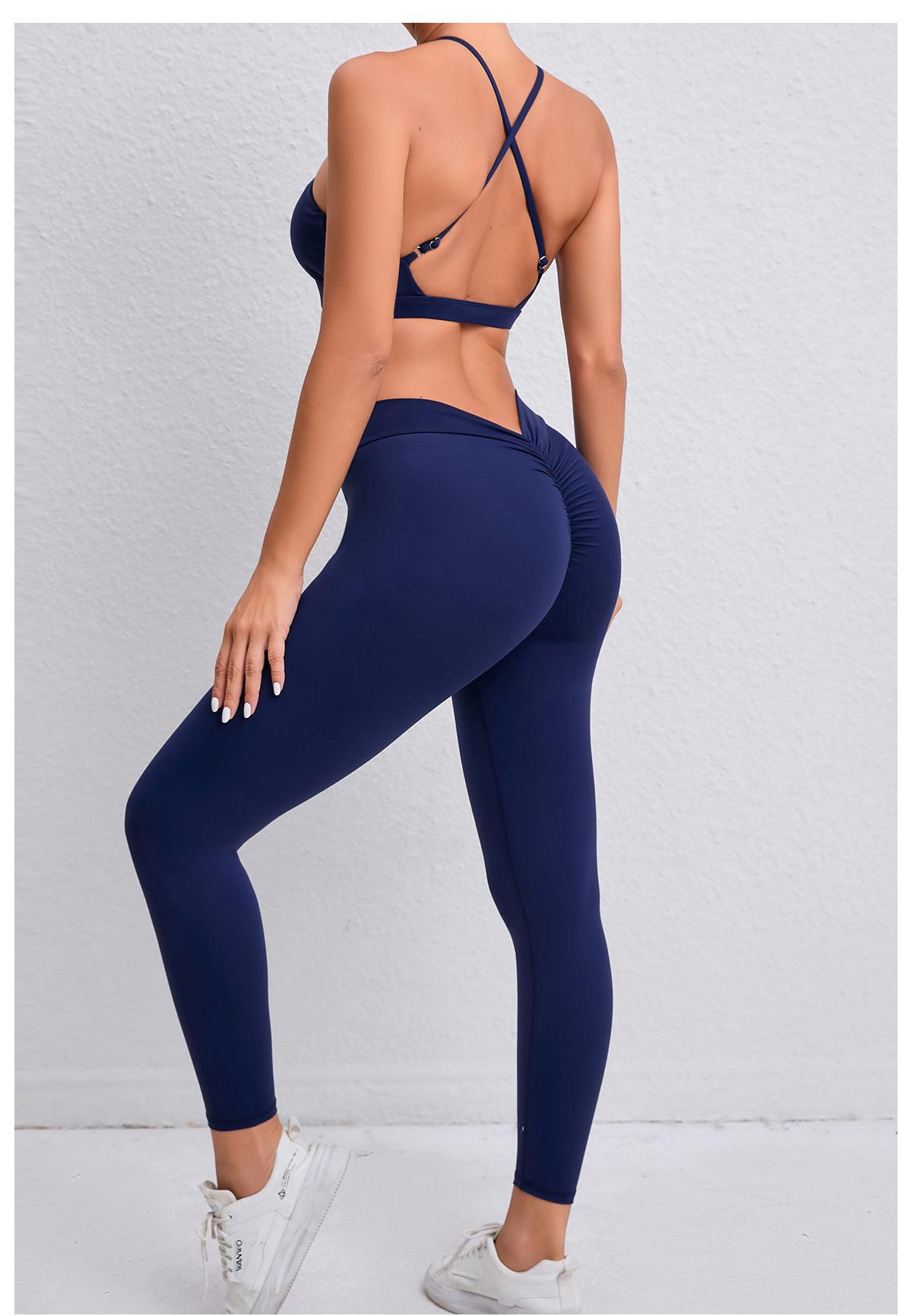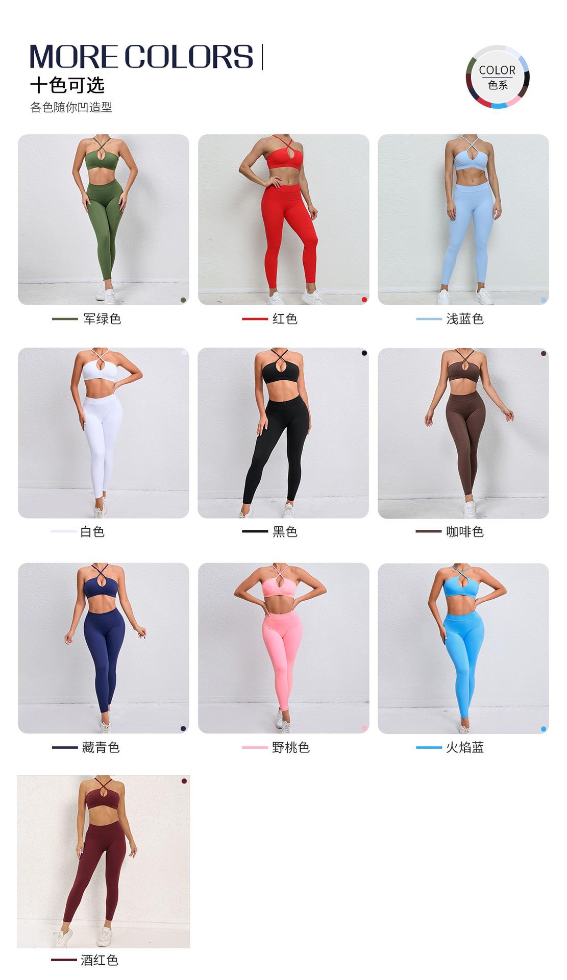 Nueva ropa de yoga desnuda europea y americana, traje deportivo ajustado con espalda cruzada para correr, traje de fitness de dos piezas transpirable de secado rápido