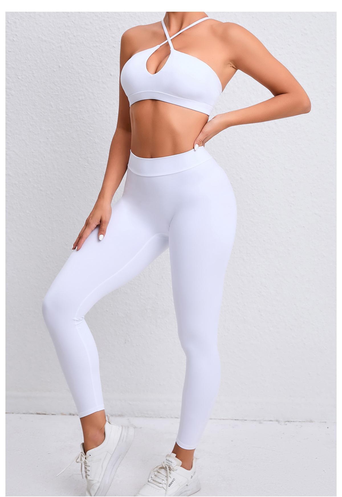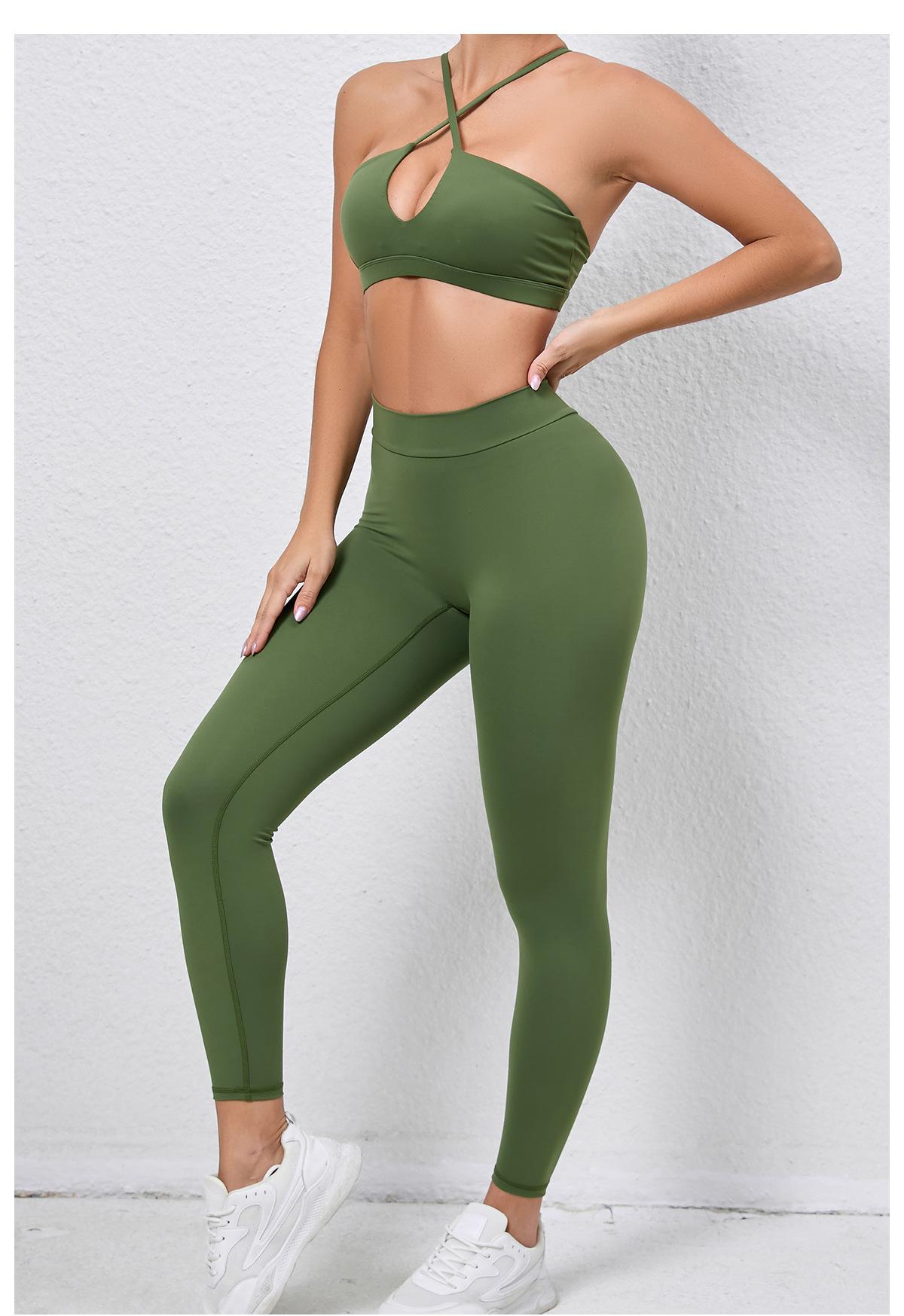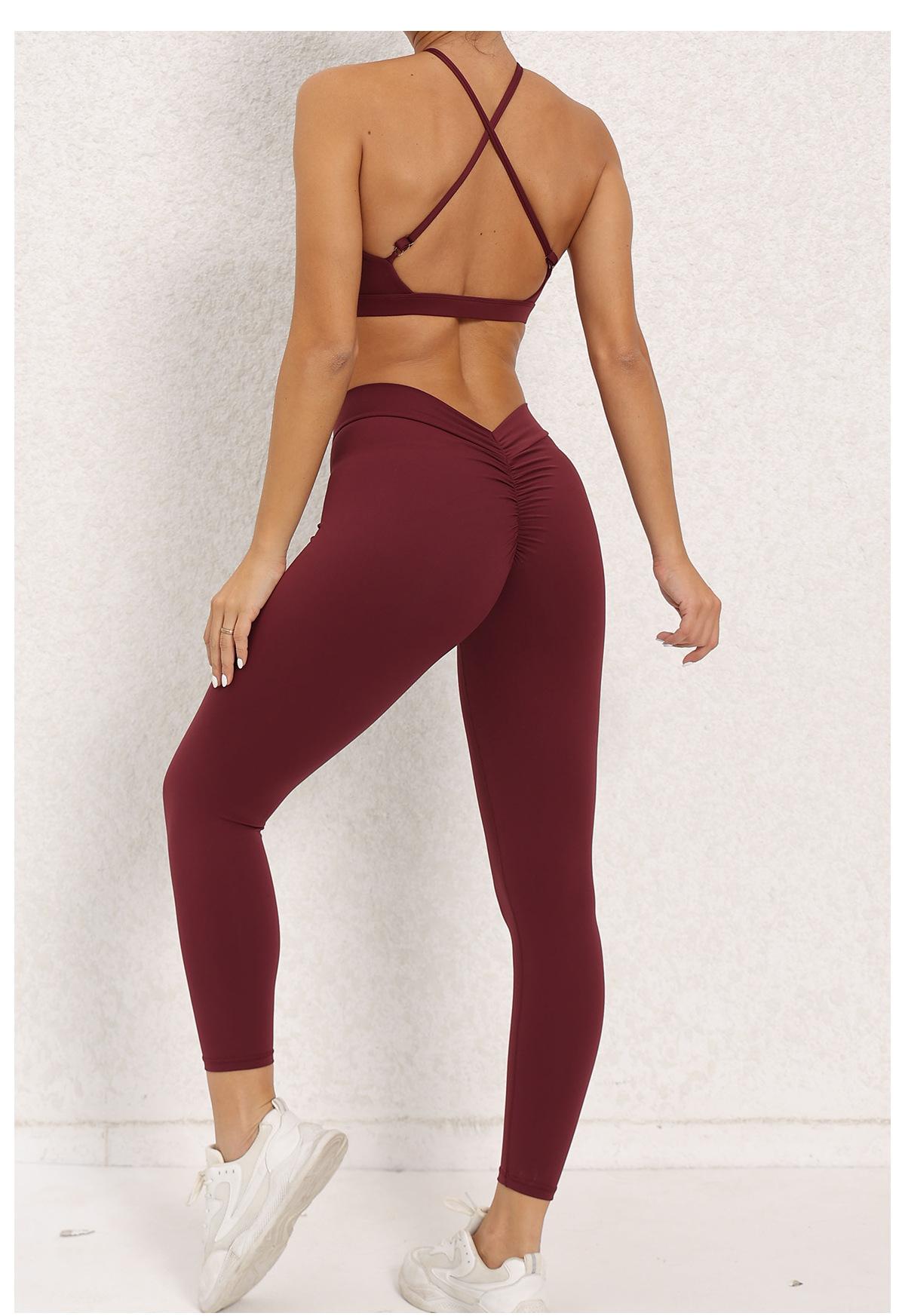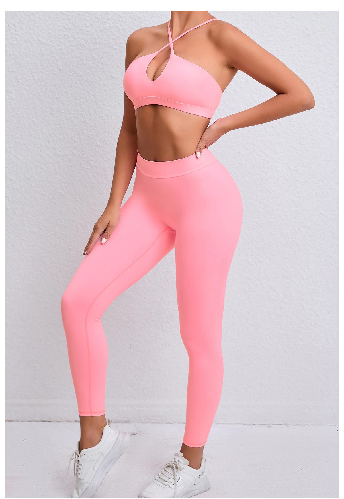 Nueva ropa de yoga desnuda europea y americana, traje deportivo ajustado con espalda cruzada para correr, traje de fitness de dos piezas transpirable de secado rápido