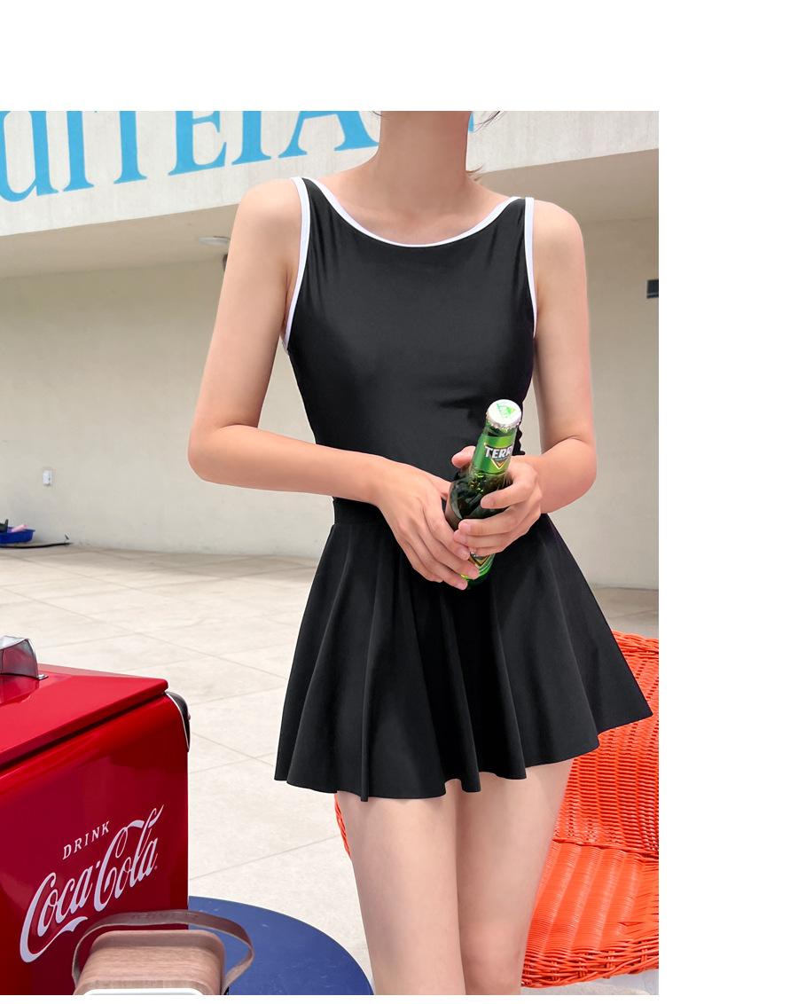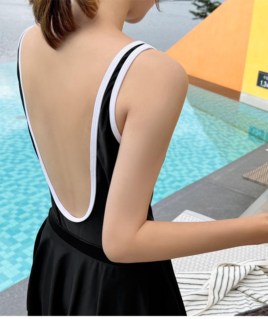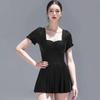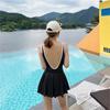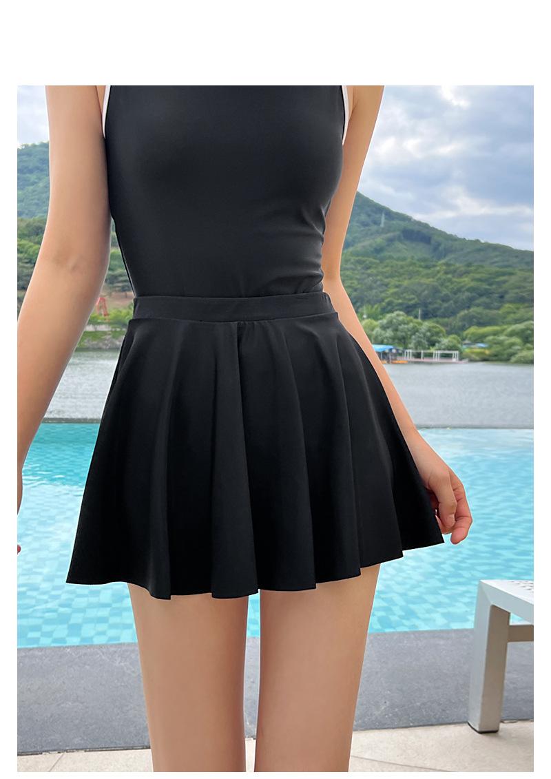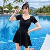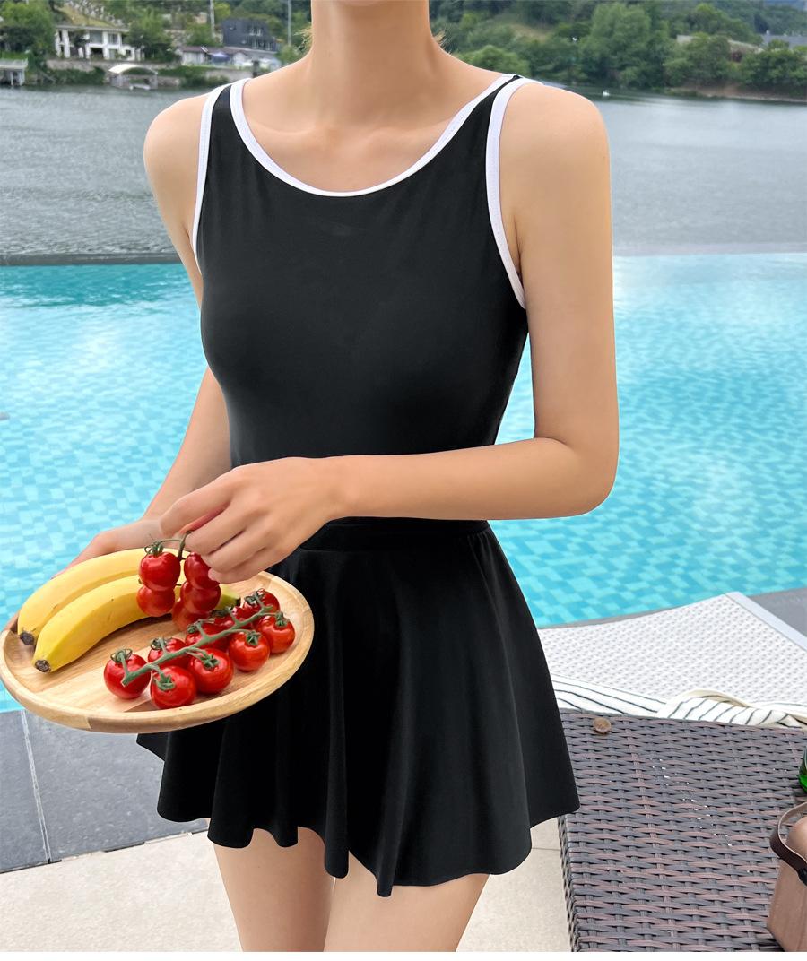 Traje de baño de una generación de mujeres, traje de baño de dos piezas con falda fruncida en el pecho pequeño para cubrir el vientre, estilo conservador, ajustado, para playa de aguas termales.