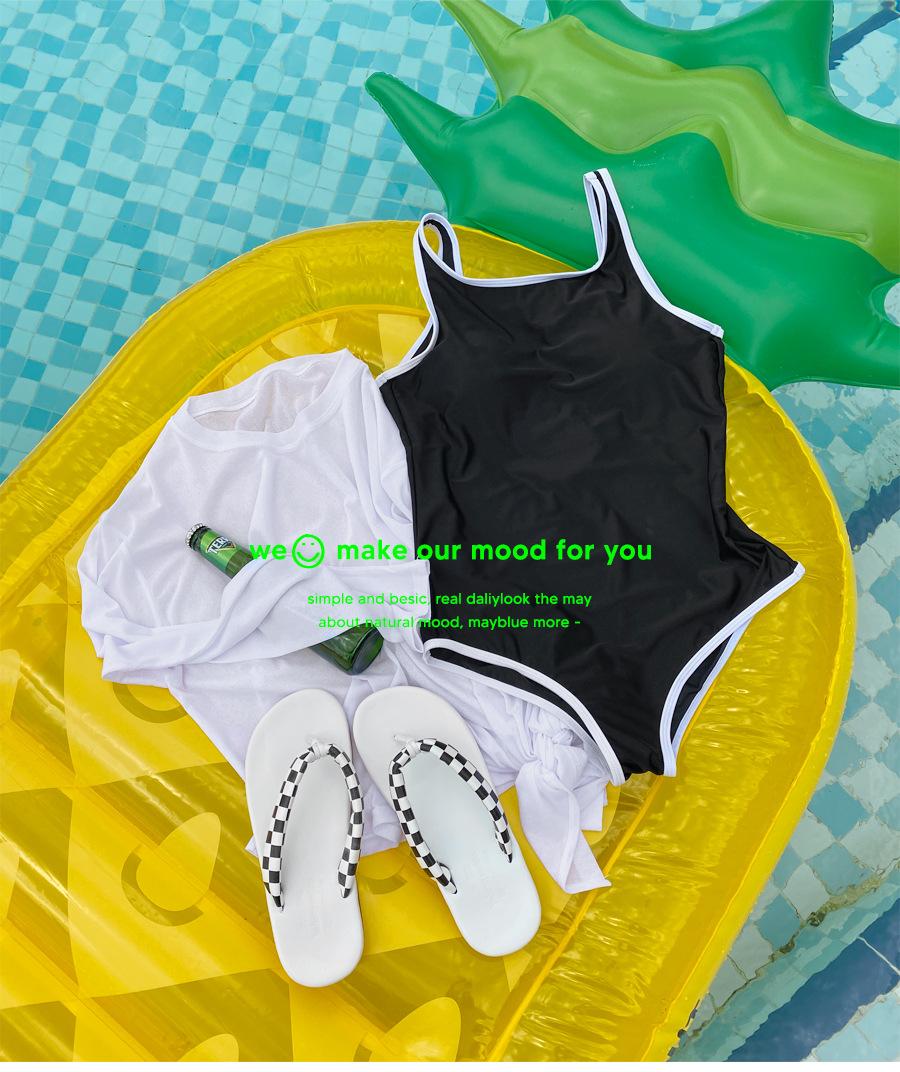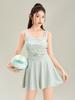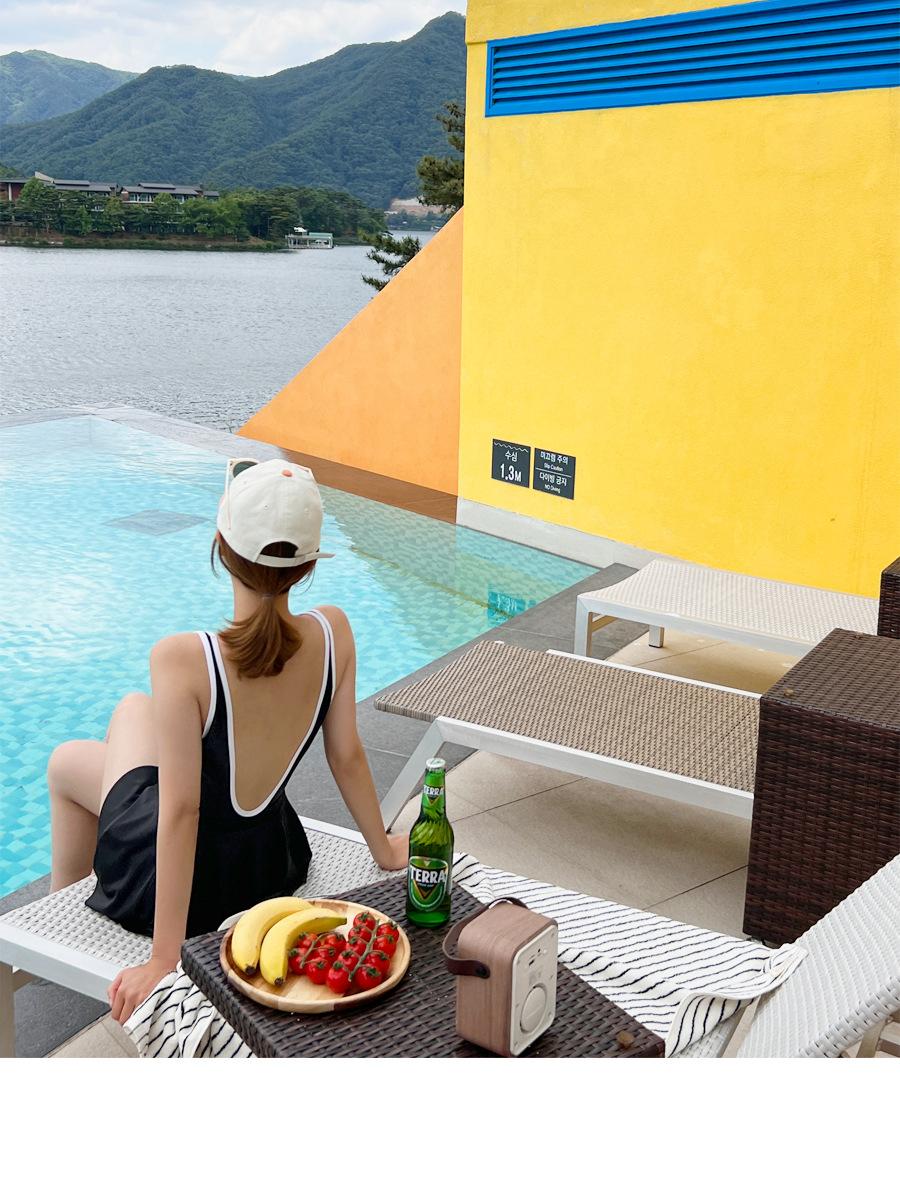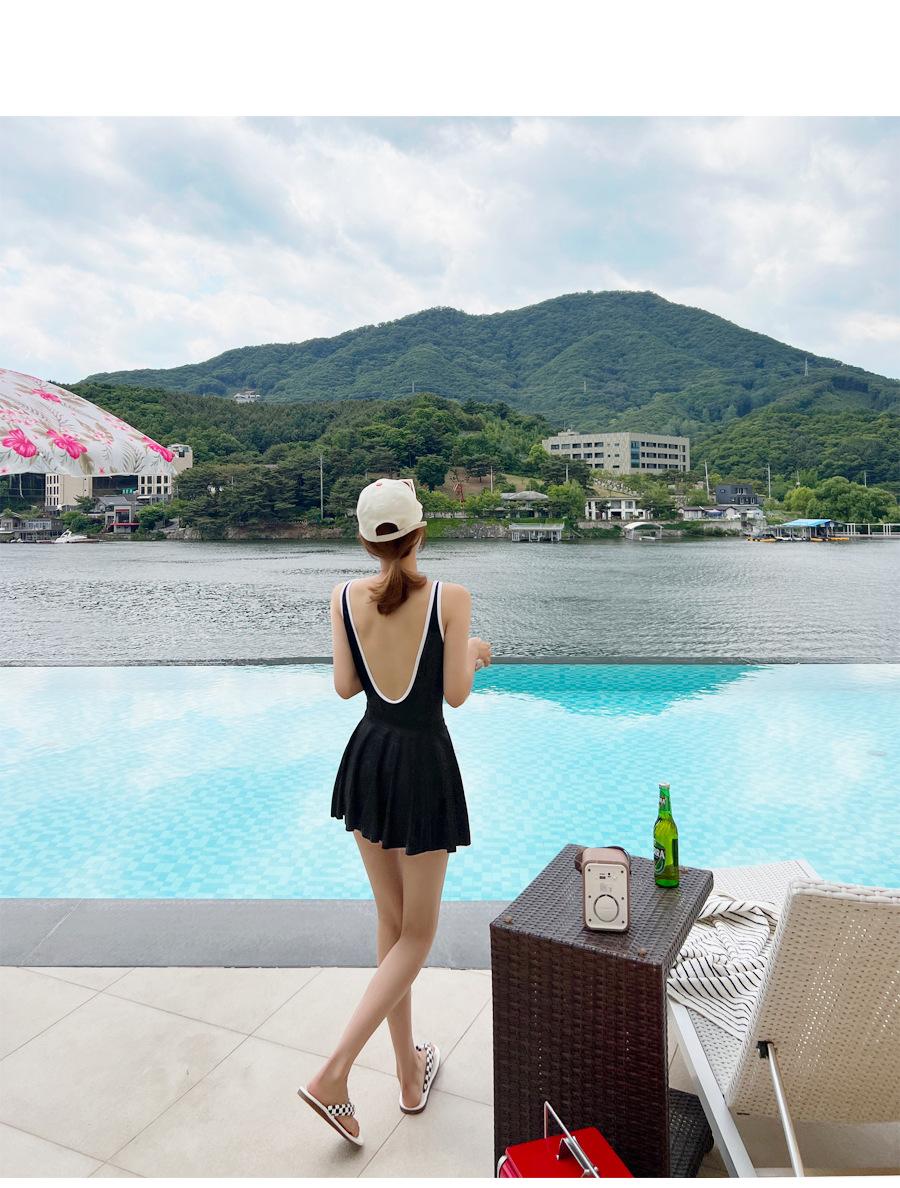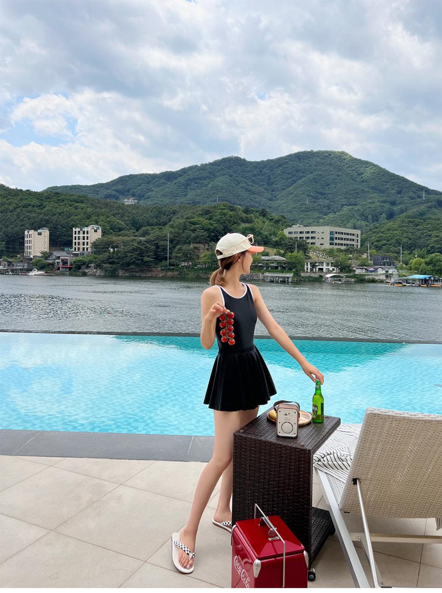 Traje de baño de una generación de mujeres, traje de baño de dos piezas con falda fruncida en el pecho pequeño para cubrir el vientre, estilo conservador, ajustado, para playa de aguas termales.