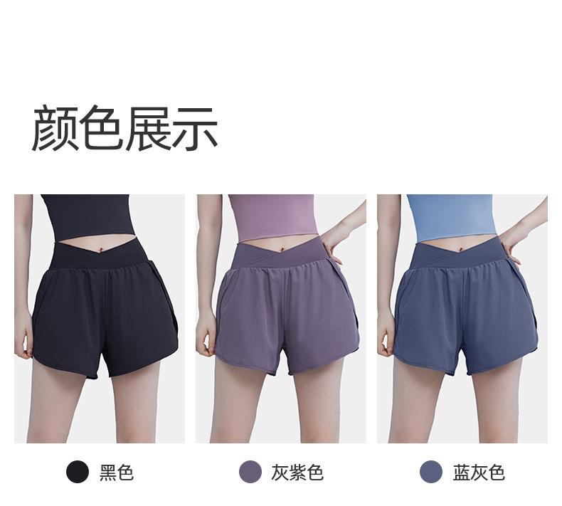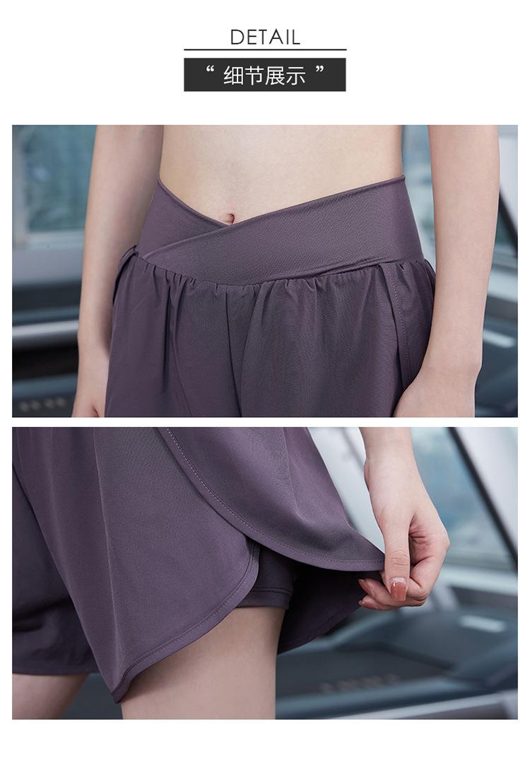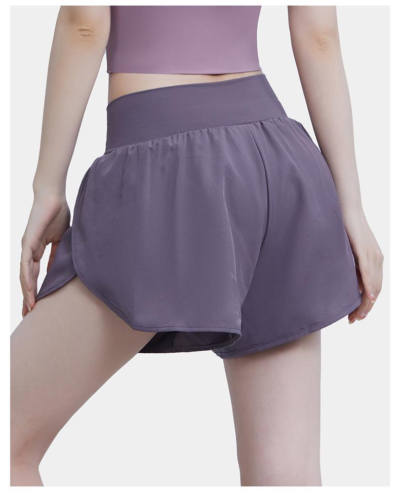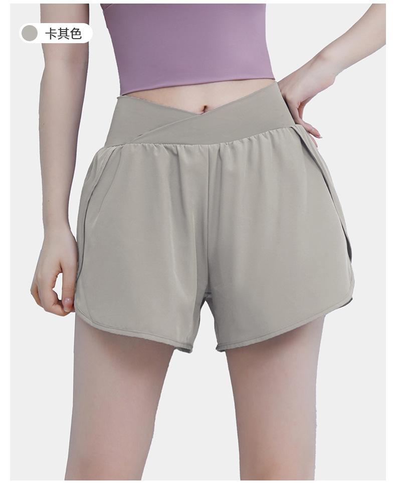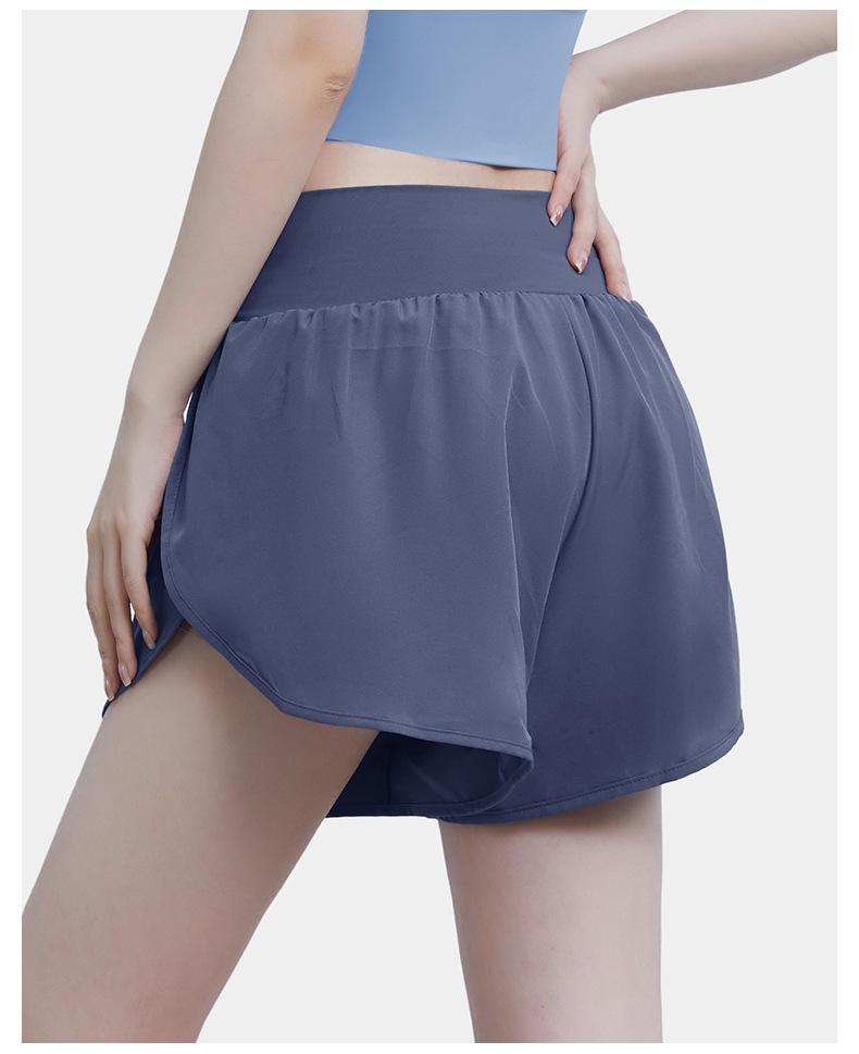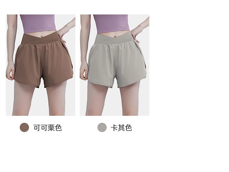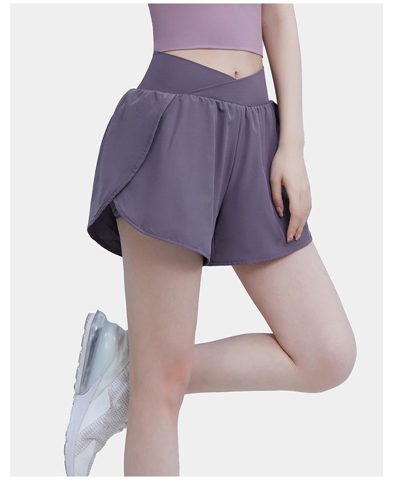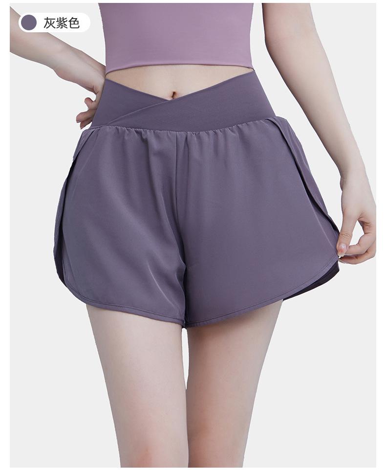Pantalones cortos deportivos de verano de cintura alta para correr, yoga, dos piezas, sueltos, de secado rápido, para gimnasio y anti-running.