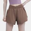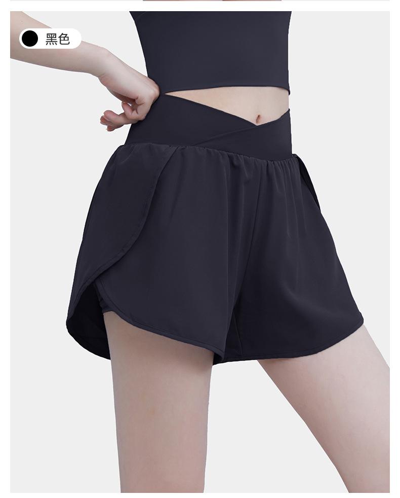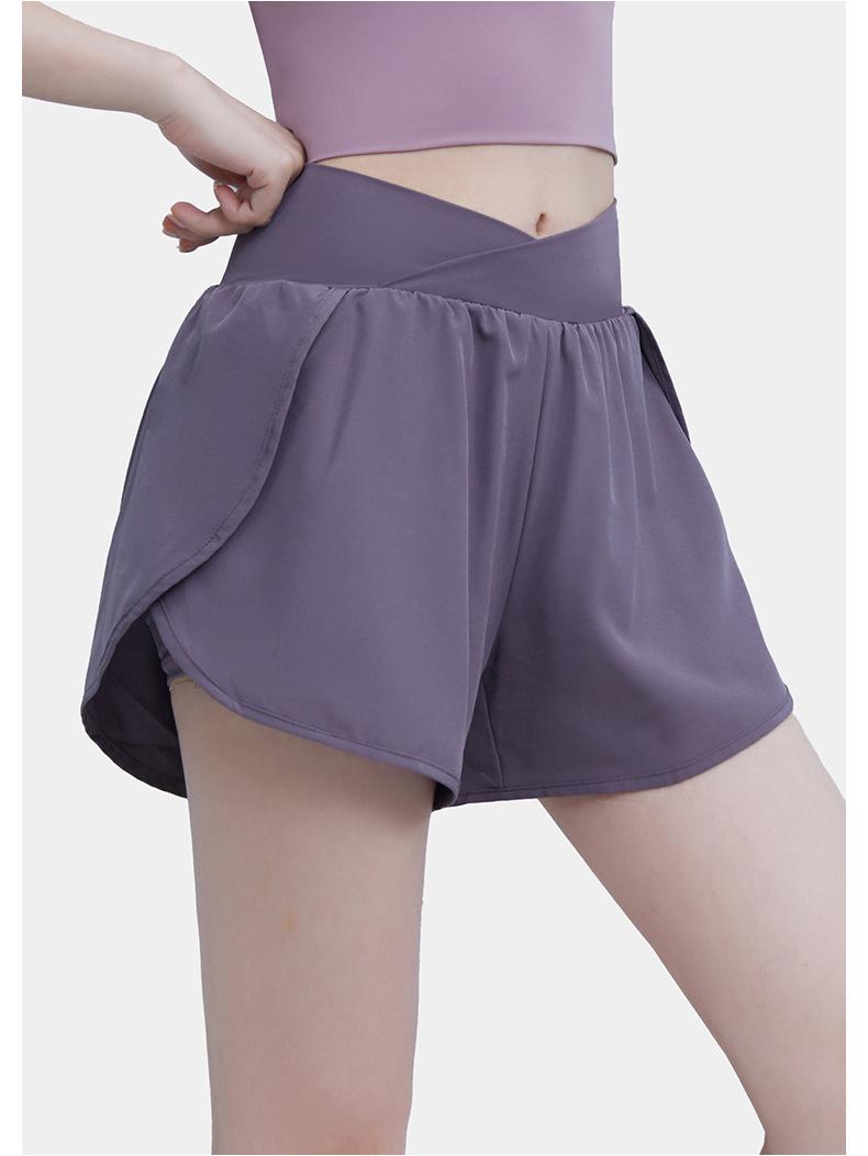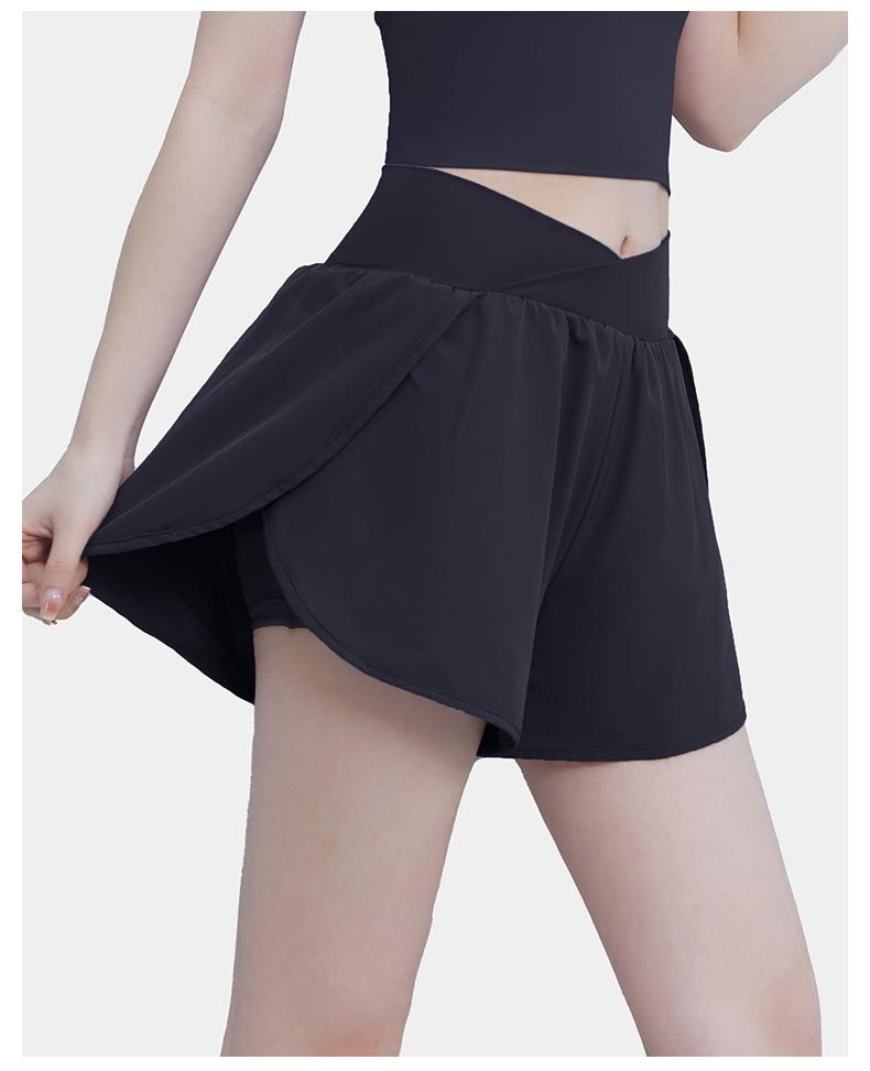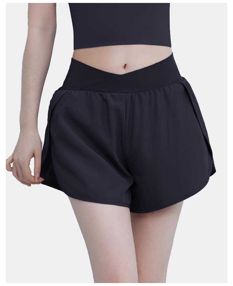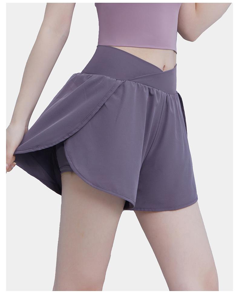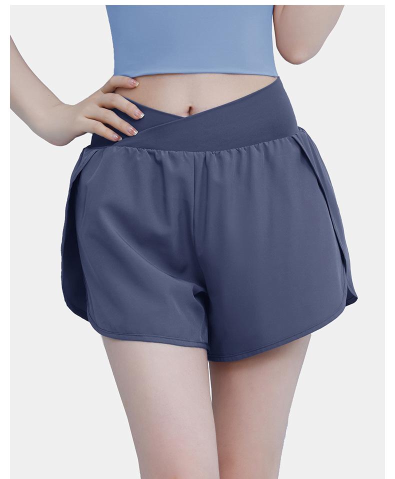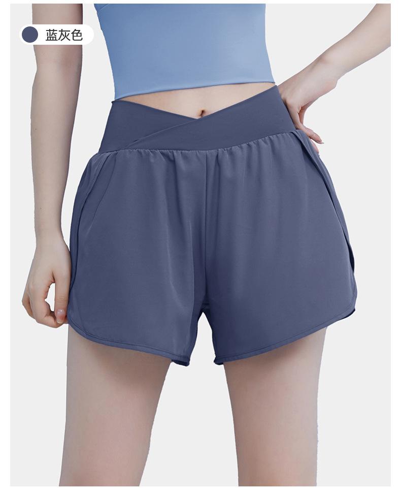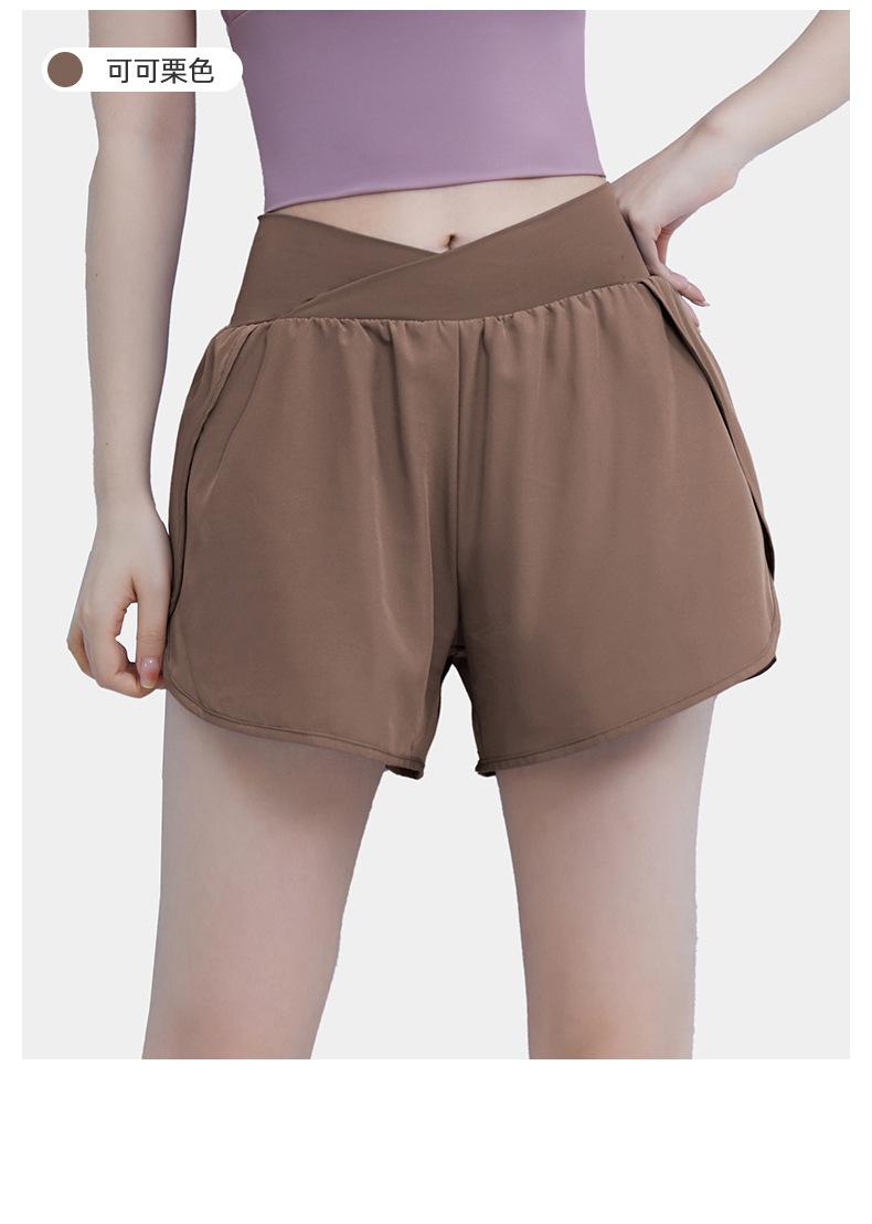 Pantalones cortos deportivos de verano de cintura alta para correr, yoga, dos piezas, sueltos, de secado rápido, para gimnasio y anti-running.