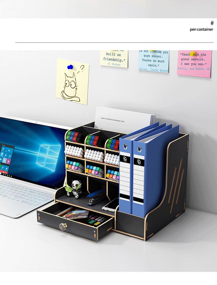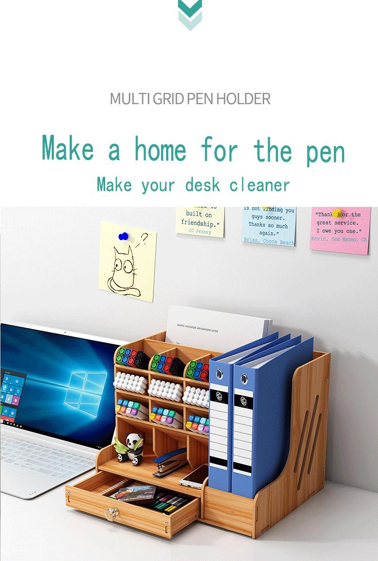 Caja de almacenamiento de escritorio para archivos de oficina, caja de acabado de libros de papel A4, soporte para bolígrafos de papelería oblicua multifuncional, estante de almacenamiento