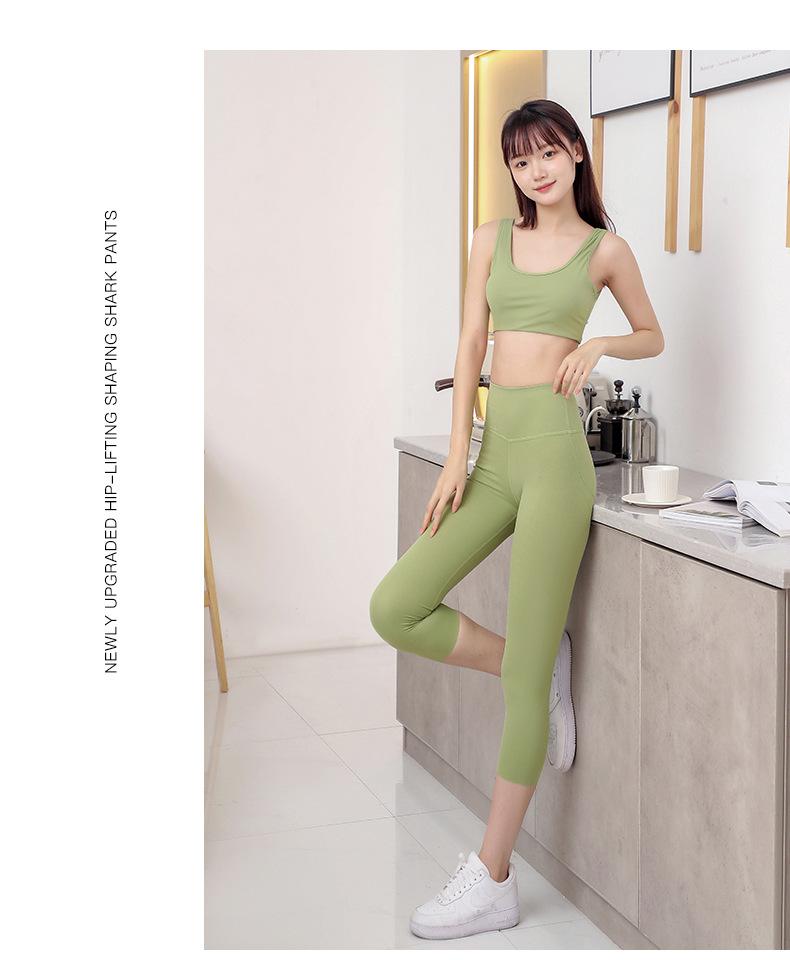 Ropa de yoga adelgazante para levantamiento de cadera, pantalones cortos transpirables y ajustados para mujer, para correr, fitness, deportes, traje 2