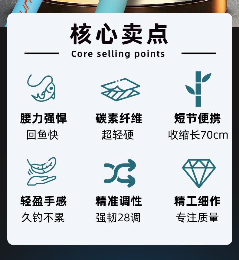 Nueva caña de pescar Carbon Creek de sección corta, caña de mano, caña de pescar ultraligera y súper dura de 28", apta para carpas con explosiones, equipo de pesca al por mayor.