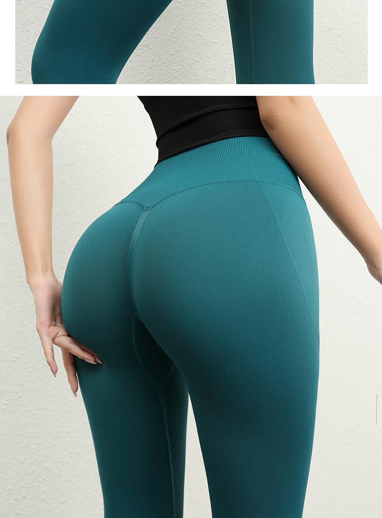 Pantalones deportivos de cintura alta para mujer, estilo europeo y americano, para levantar caderas, color melocotón, para entrenamiento de otoño e invierno.