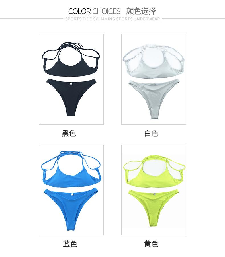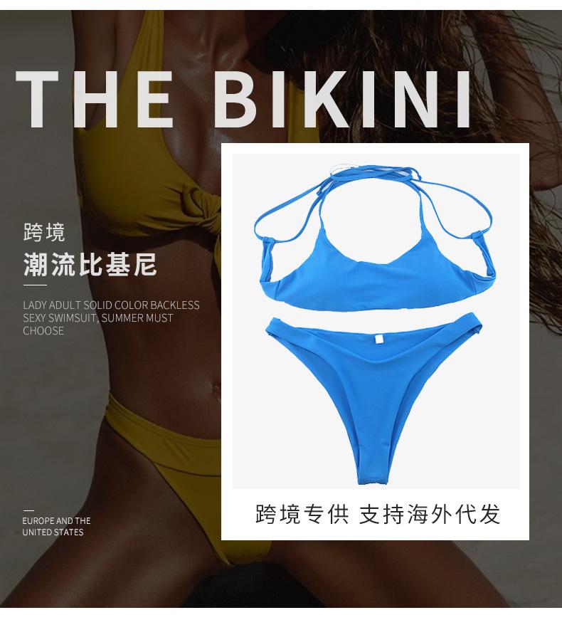 Traje de baño sexy con tirantes sin espalda de color sólido para damas adultas al por mayor, nuevo bikini dividido europeo y americano transfronterizo